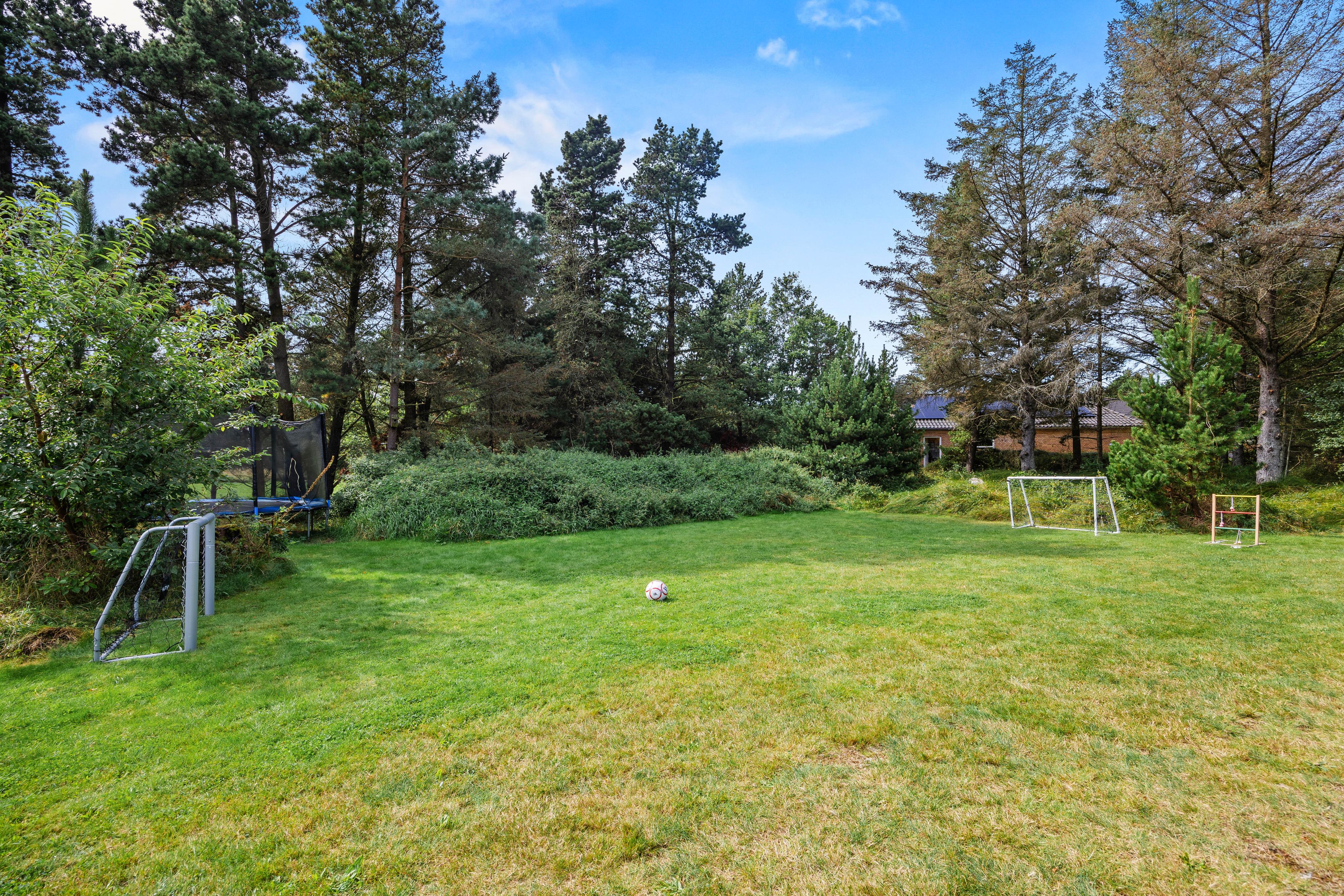 Der er også tænkt på de små feriegæster. På den velholdte naturgrund er der både trampolin, gyngestativ og sandkasse, så der er rig mulighed for at lege og være aktiv, mens mor og far daser på terrassen.