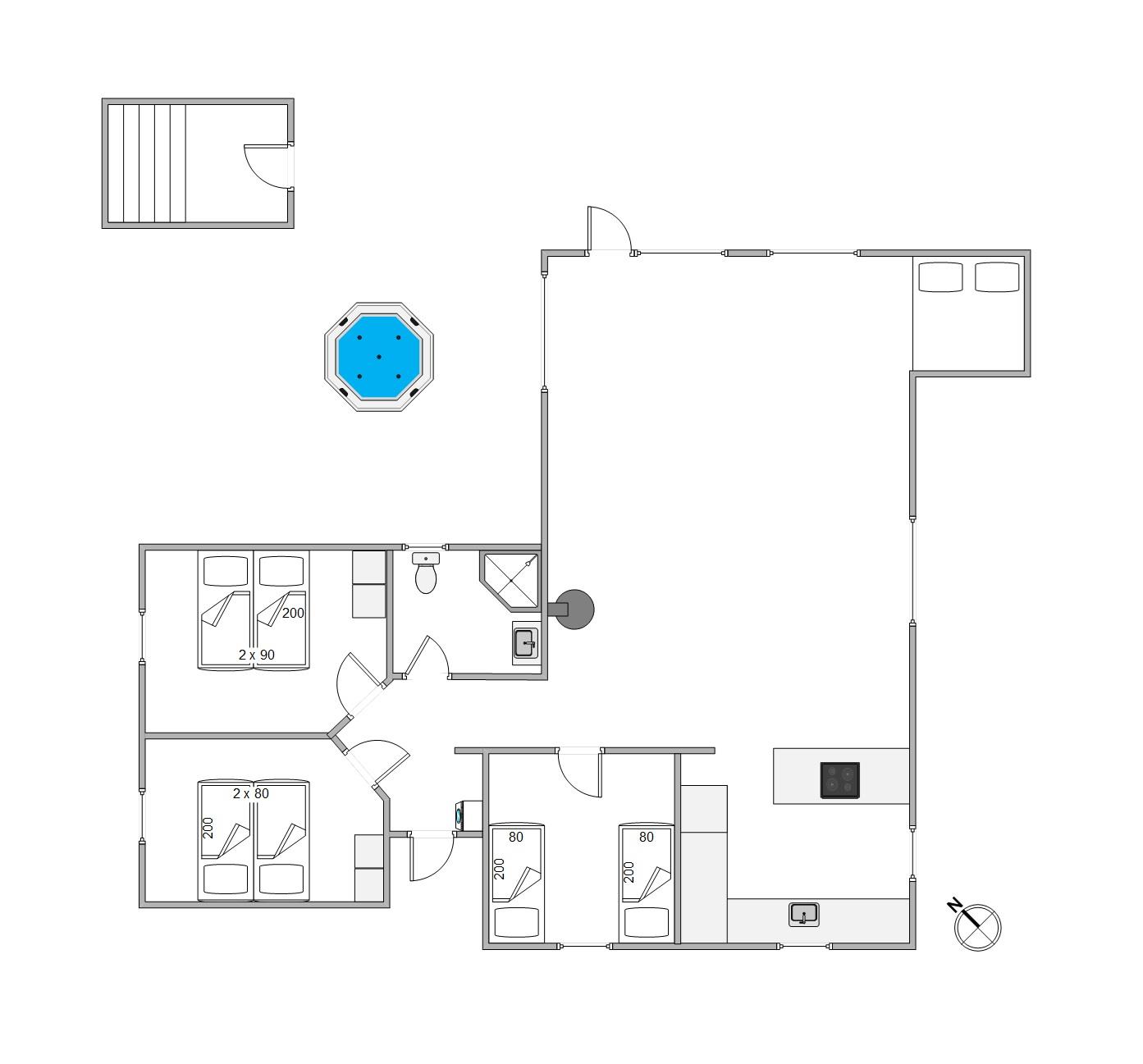 Bemærk venligst, at I fra marts 2026 desuden vil kunne nyde et dejligt, nyrenoveret udemiljø ved huset, blandt andet med en udespa og en udesauna samt en 25 m2 stor fritliggende, overdækket terrasse og en 170 m2 stor træterrasse. Her kan I blive blødt op og varmet igennem og hygge jer ved gasgrillen, måske efter en god gåtur på de fine strande i Blåvand. Indenfor vil huset være nymalet og have fået nye møbler.