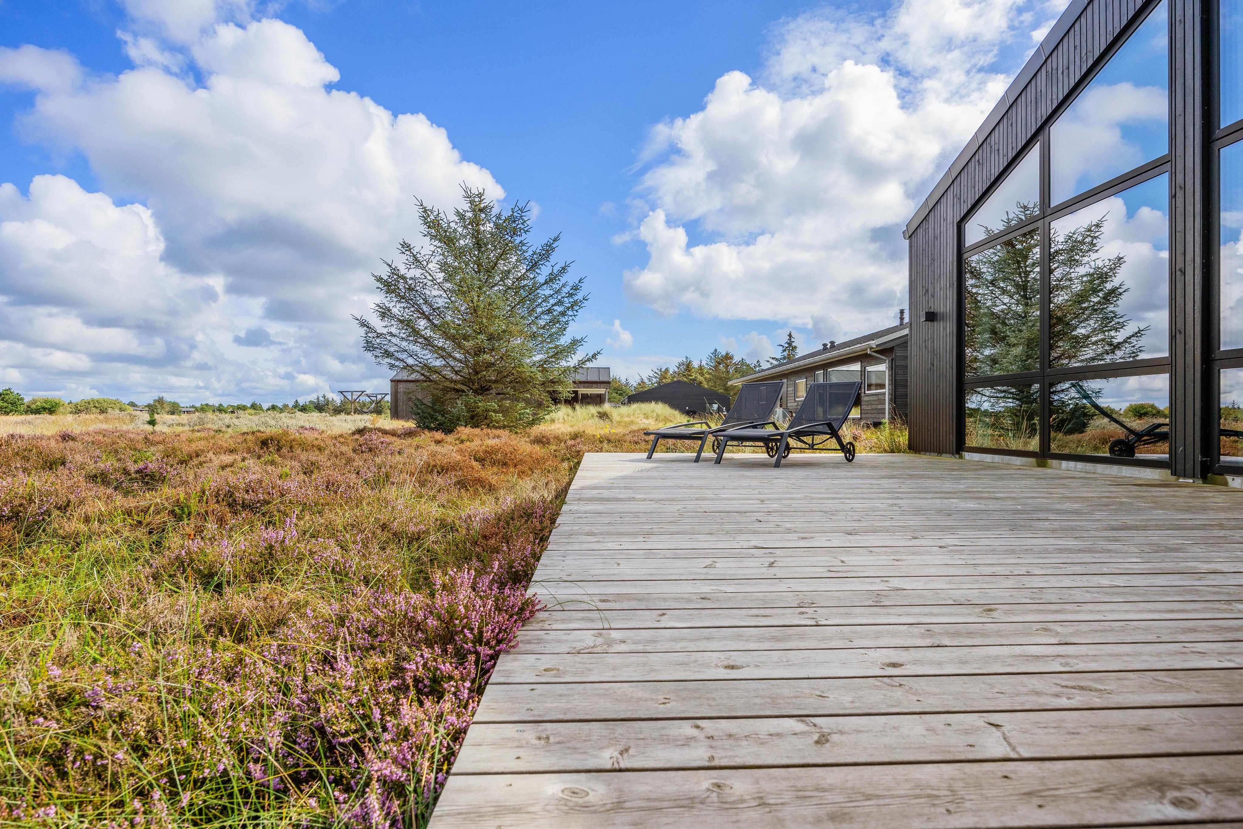I den nordlige del af Blåvand ligger dette fantastiske sommerhus til 8 personer. Det femstjernede aktivitetshus er opført i 2020 og emmer af luksus – med et væld af fede faciliteter såsom udendørs spabad, infrarød sauna og aktivitetsrum med billard og bordtennis. Fra feriematriklen er der en exceptionel udsigt til det uberørte hedelandskab.