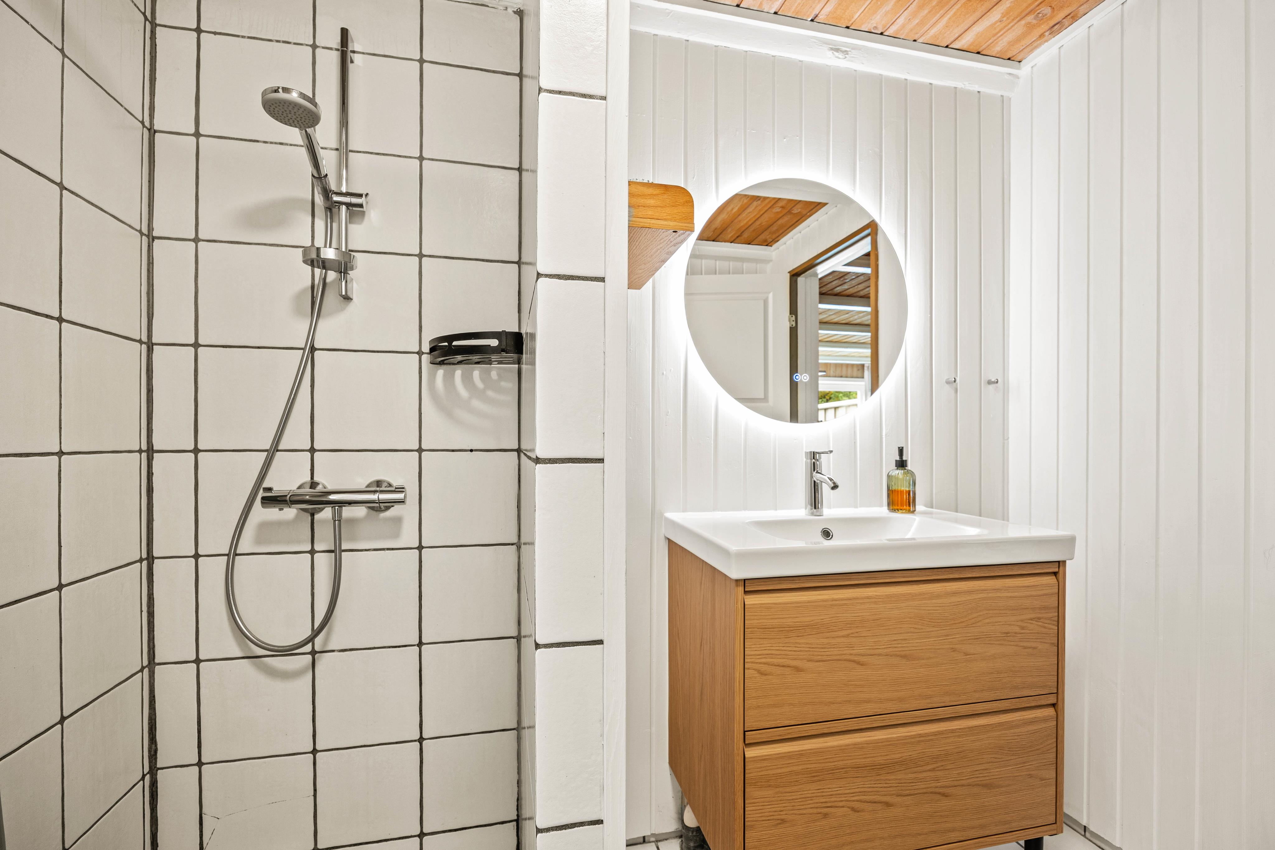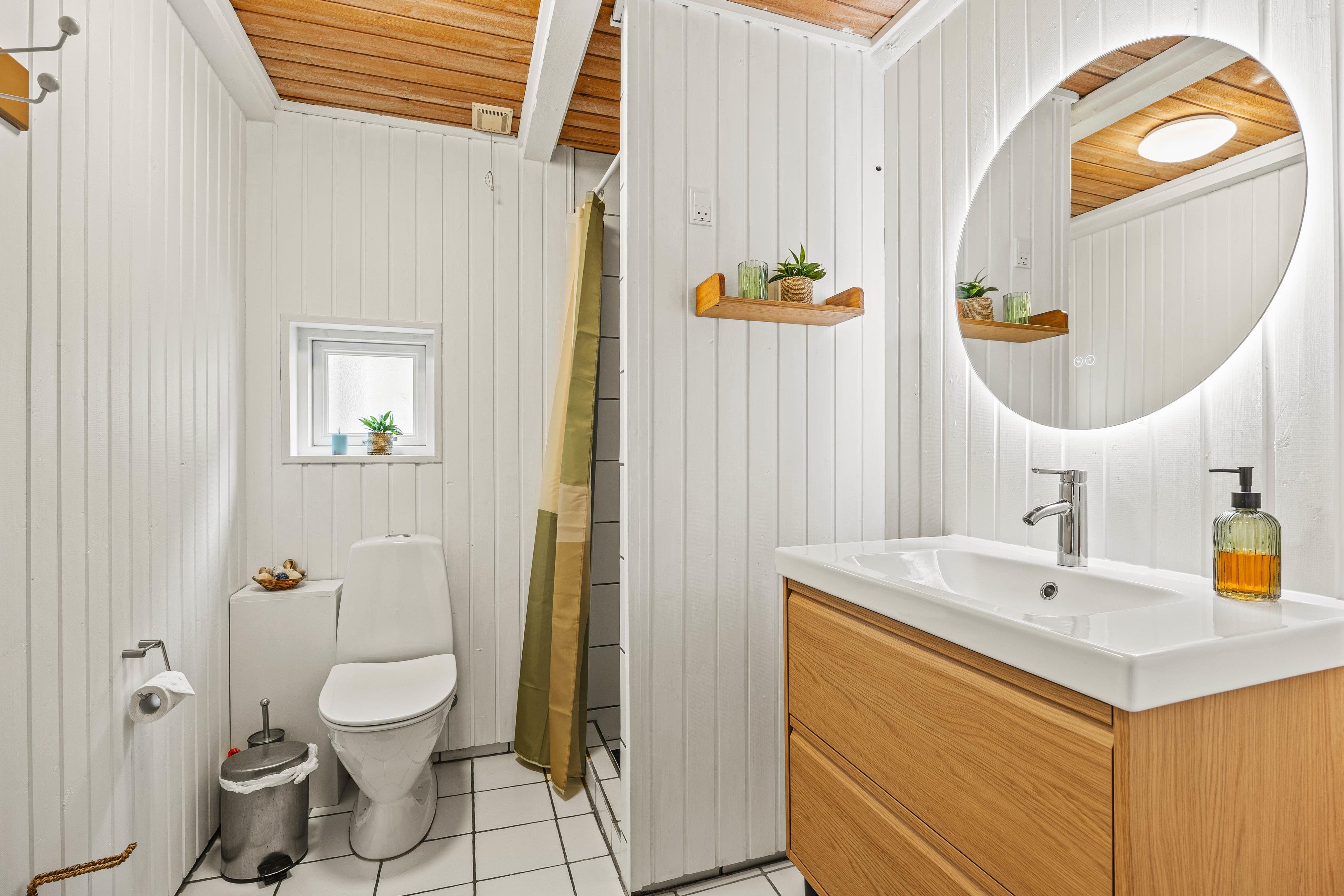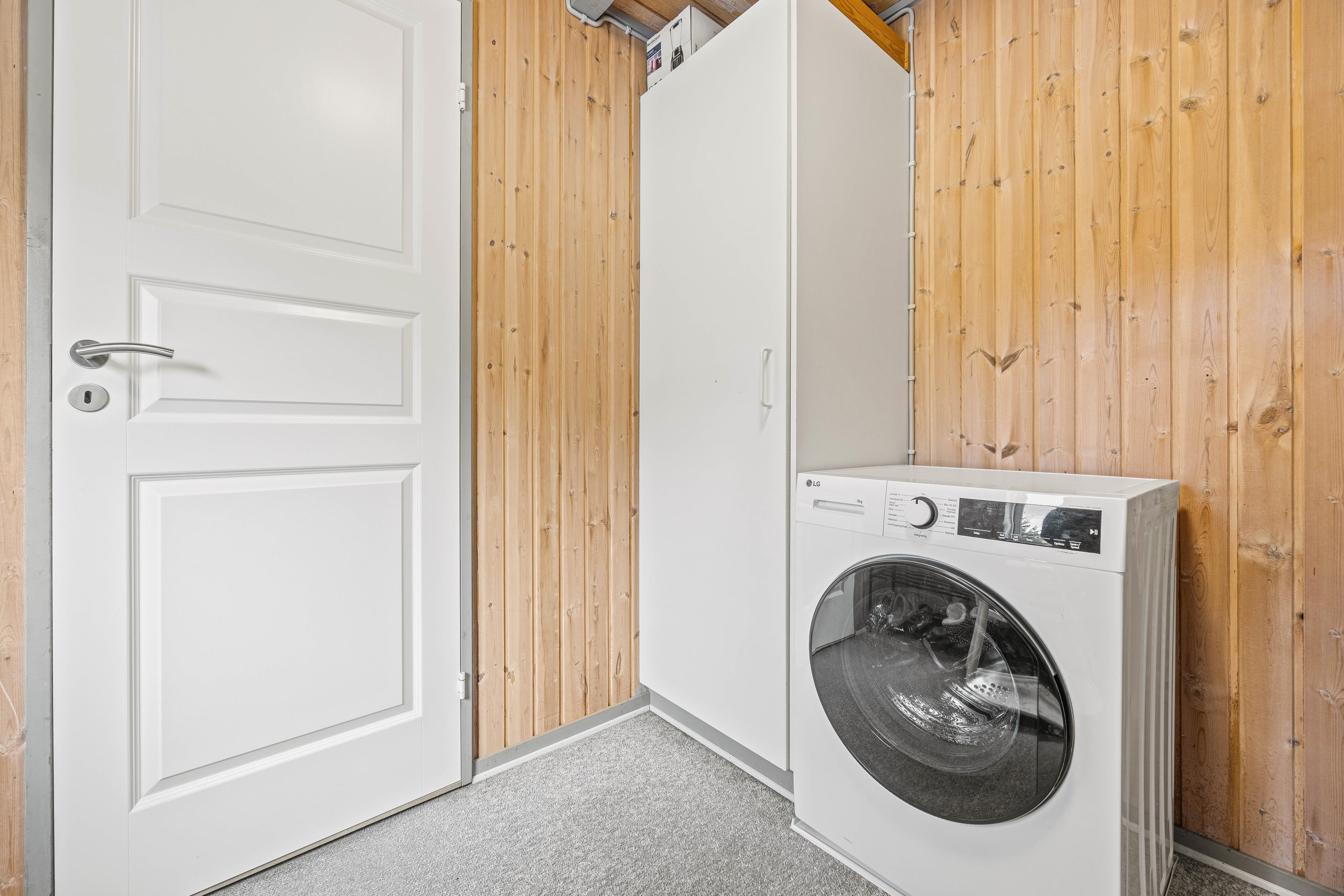 I feriehuset har I gode praktiske faciliteter med både opvaskemaskine, vaskemaskine og tørretumbler, der letter det praktiske husarbejde for jer, så I kan bruge endnu mere hyggelig ferietid sammen. Desuden bliver sommerhuset opvarmet af en energivenlig varmepumpe.