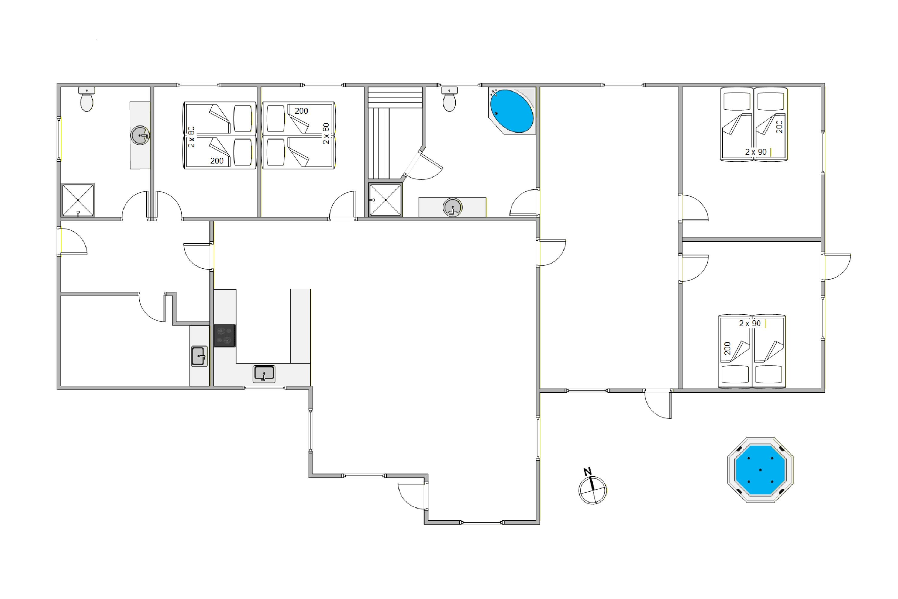 Huset er stort og virkelig hyggeligt. Stue-køkkenkombinationen er virkelig vellykket, sammen men alligevel på en måde adskilt. Nogle genstande/møbler er allerede meget slidte, men alt er til stede. Man føler sig uforstyrret, selvom naboerne ikke er langt væk. Vores højdepunkt var helt klart det udendørs spabad, hvor vi brugte meget tid.