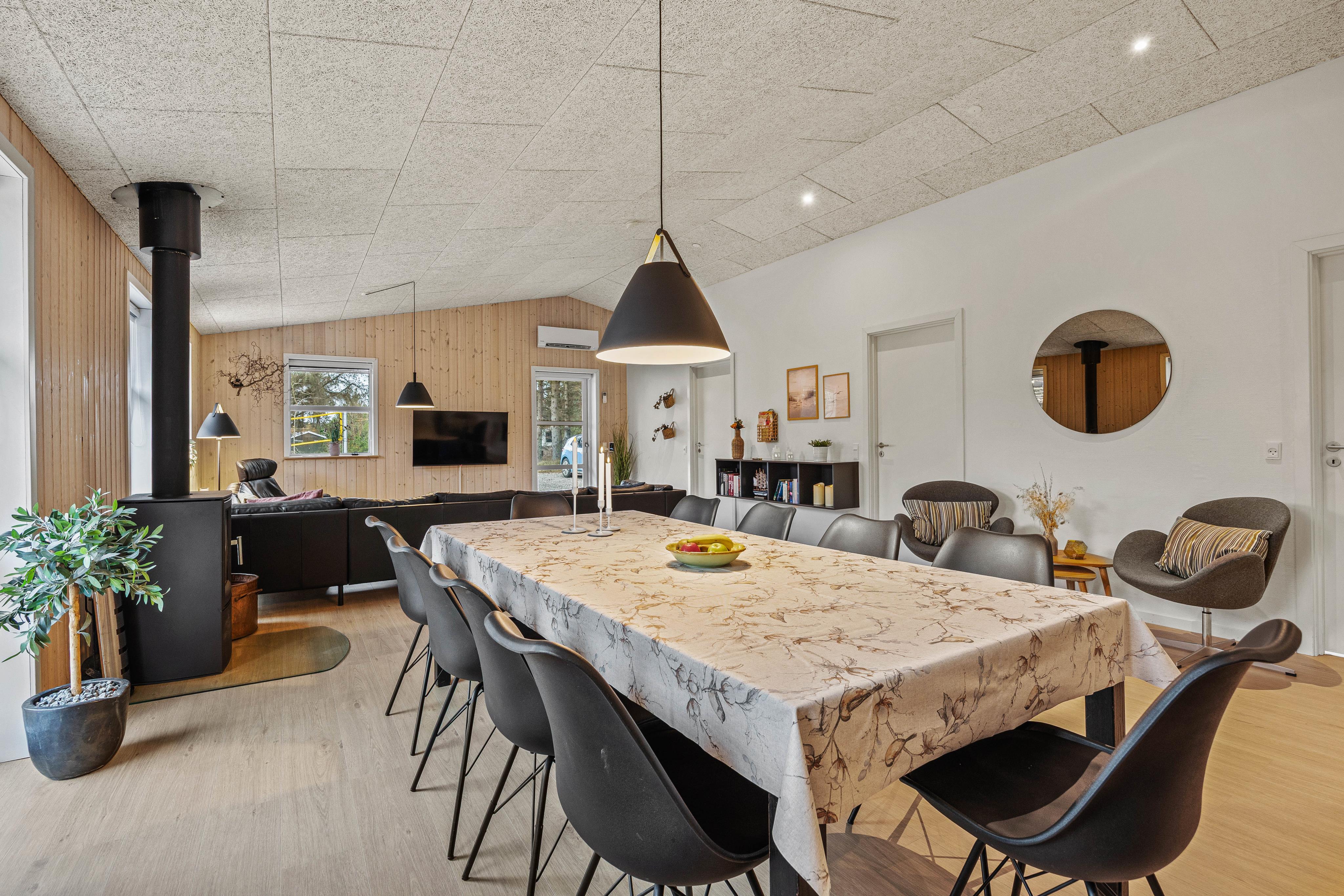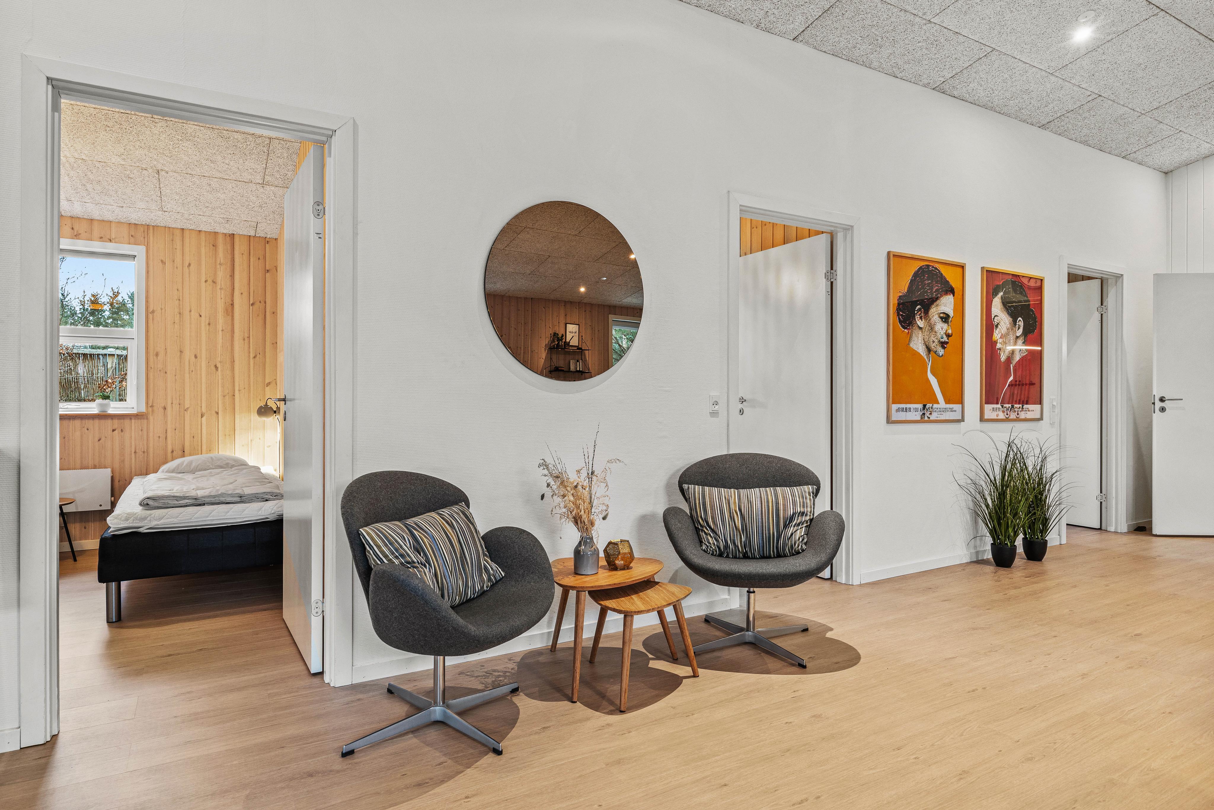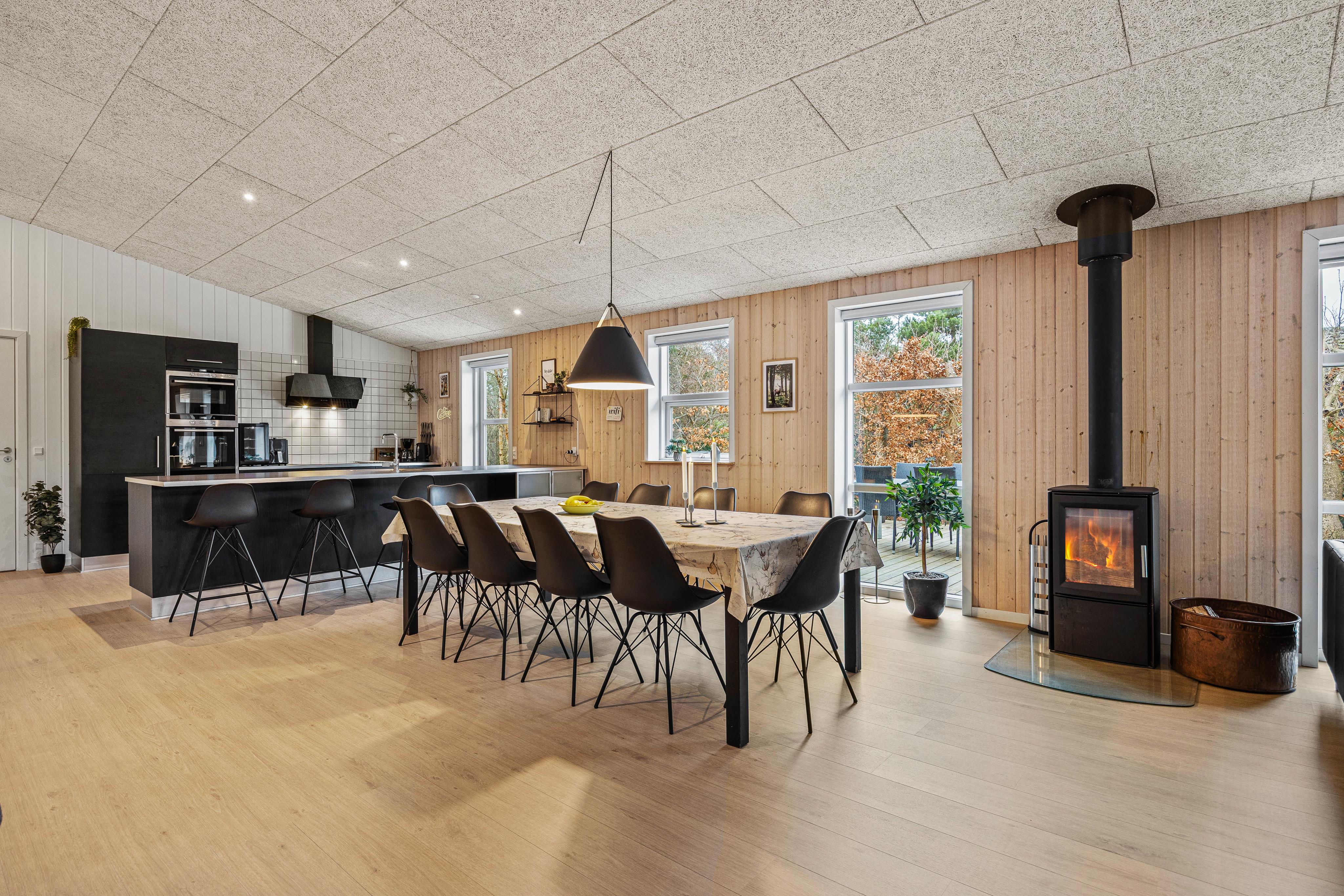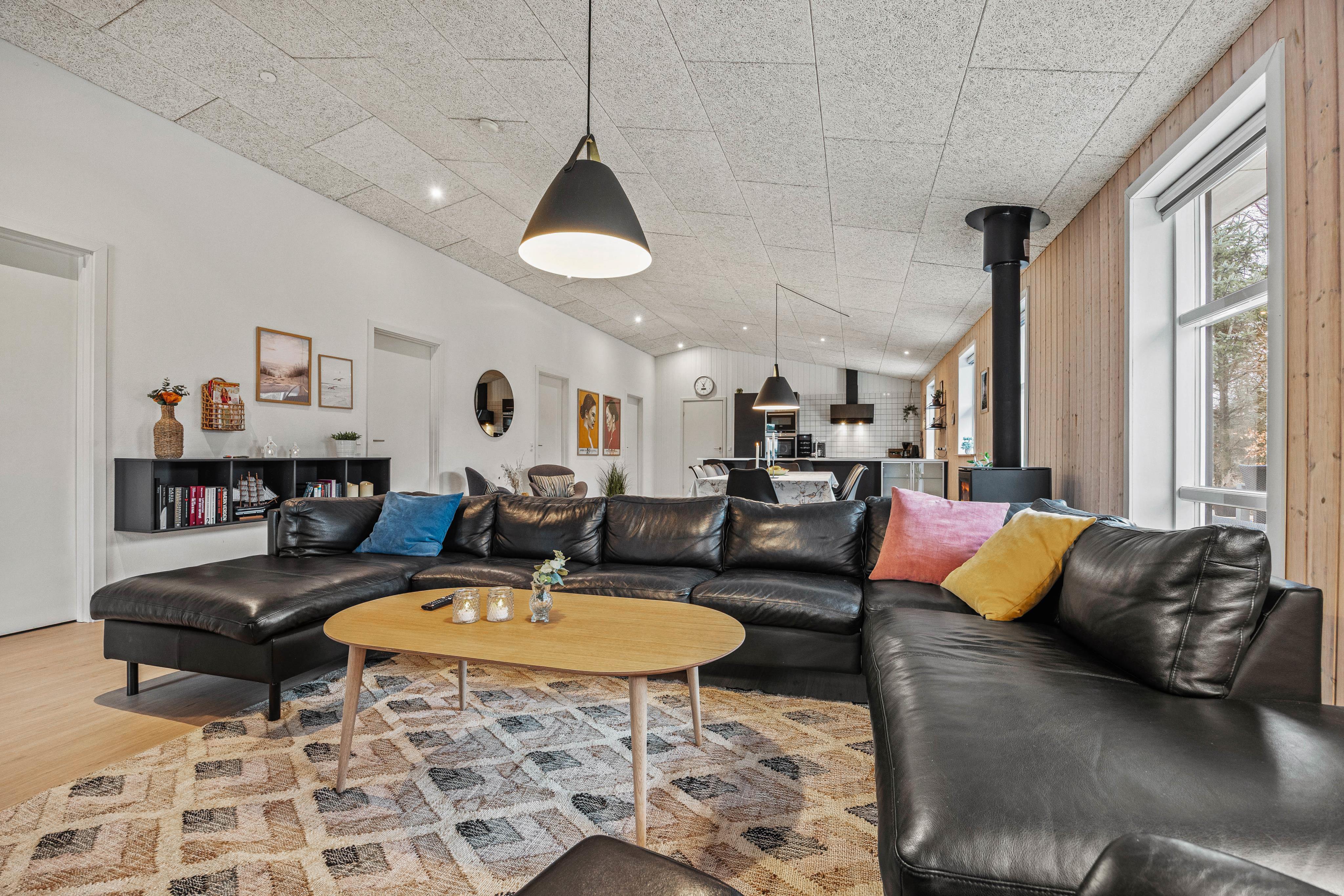 Allerede når I træder indenfor, mærker I den varme og indbydende stemning. De lyse omgivelser og den hyggelige indretning skaber den perfekte ramme om afslappende feriedage. Saml jer i stuen til en god film på fladskærms-tv’et, mens brændeovnen knitrer og spreder ægte sommerhusstemning.