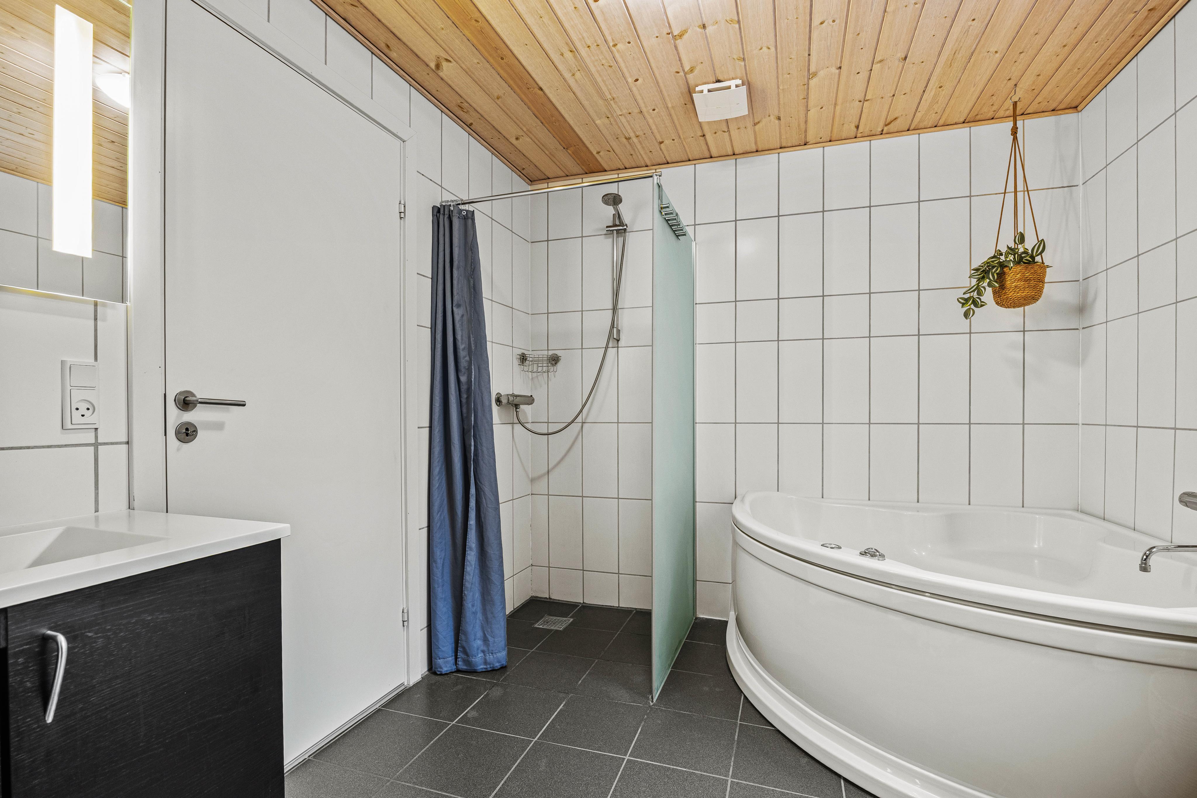 Sommerhuset byder på 2 badeværelser – begge med gulvvarme – og masser af mulighed for selvforkælelse. Nyd de masserende bobler i spabadet eller læn jer tilbage i saunaens rolige varme. Her er der virkelig mulighed for at koble af og lade batterierne op.