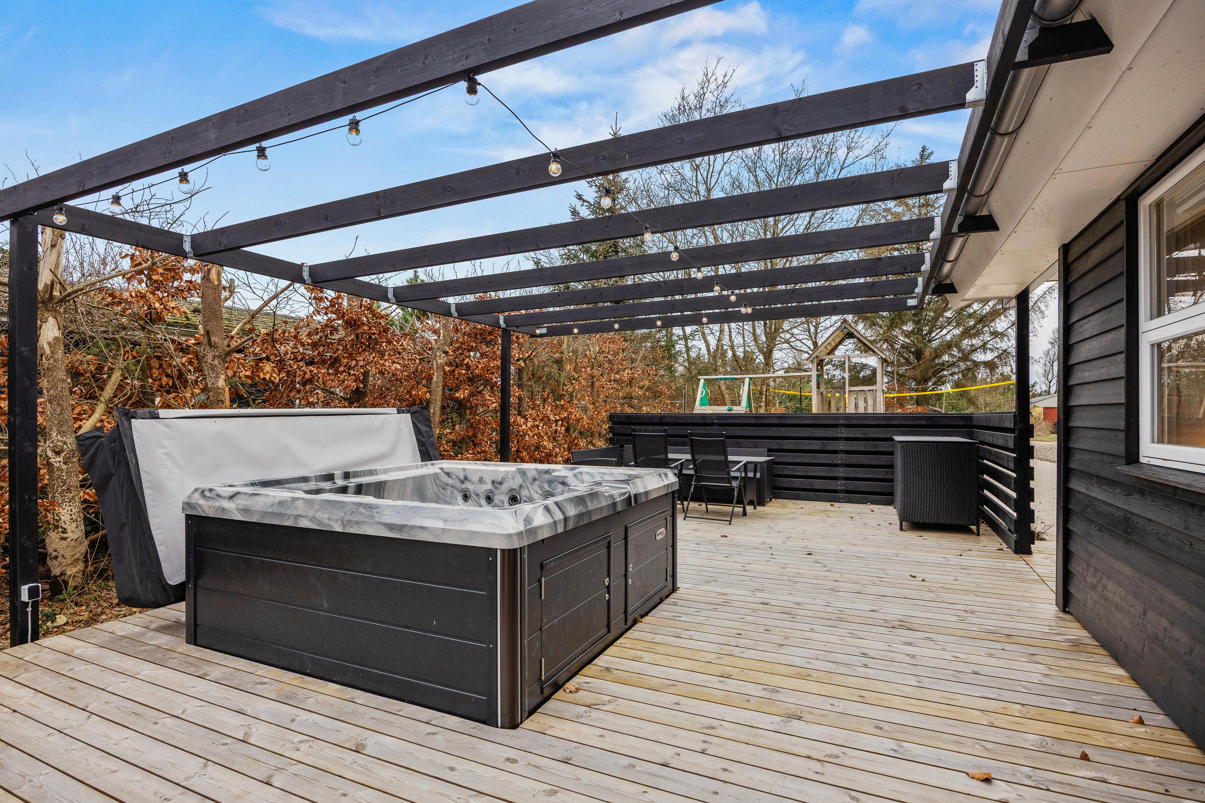 I 2025 har sommerhuset fået en ny, stor terrasse og et indbydende udeområde, hvor dagene kan nydes fuldt ud. Slå jer ned i liggestole og havemøbler, mens børnene leger i haven. Her finder I også en lækker udespa (åben hele året), udebruser med varmt vand (kan benyttes fra 1. april til 31. oktober), beachvolley, sandkasse, boldbane samt legestativ med gynge og rutschebane.