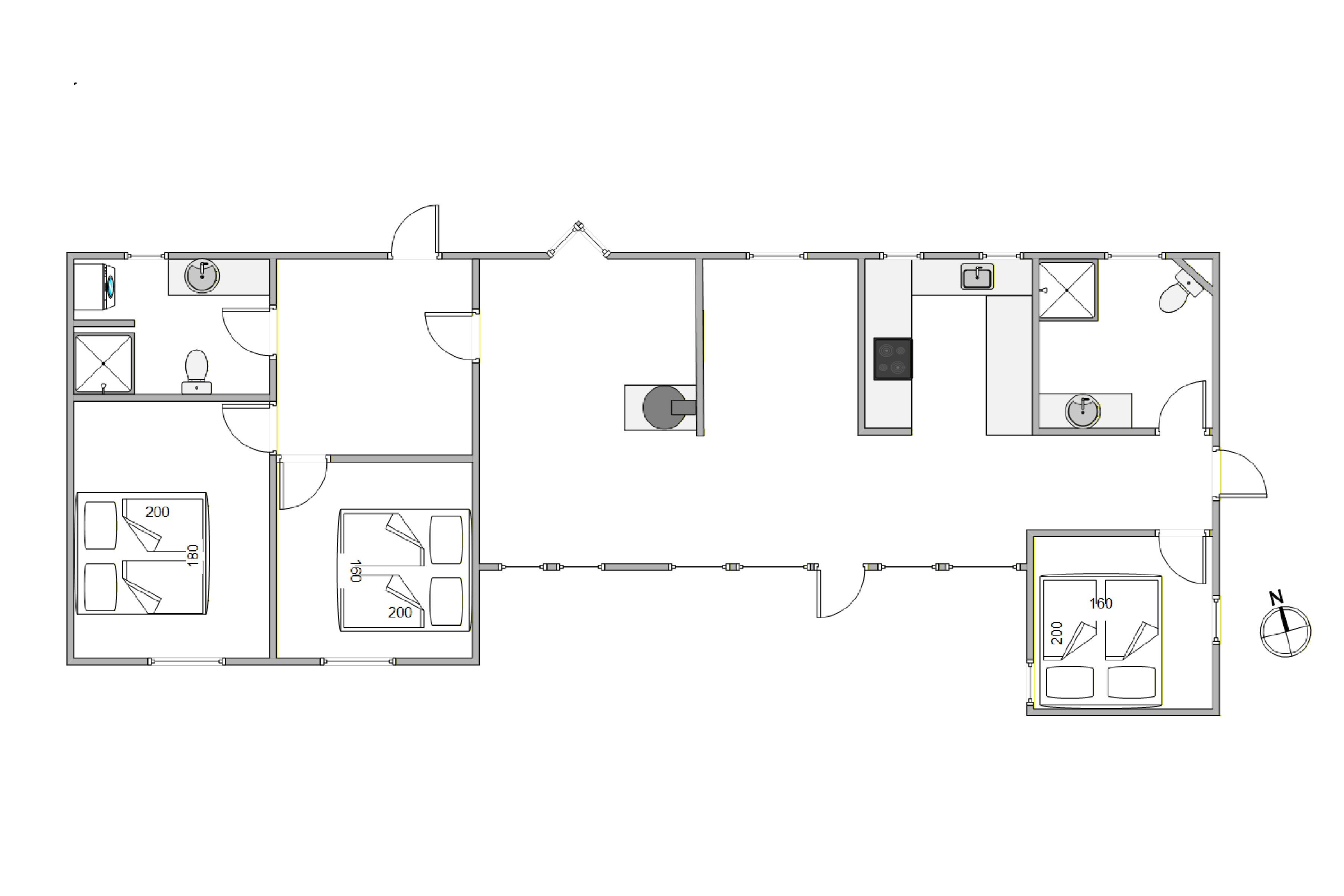 Takket være hele 2 badeværelser i feriehuset skal I ikke bekymre jer om kø til badeværelset fra morgenstunden. Begge badeværelser er desuden udstyret med gulvvarme, så I slipper for at fryse tæerne.