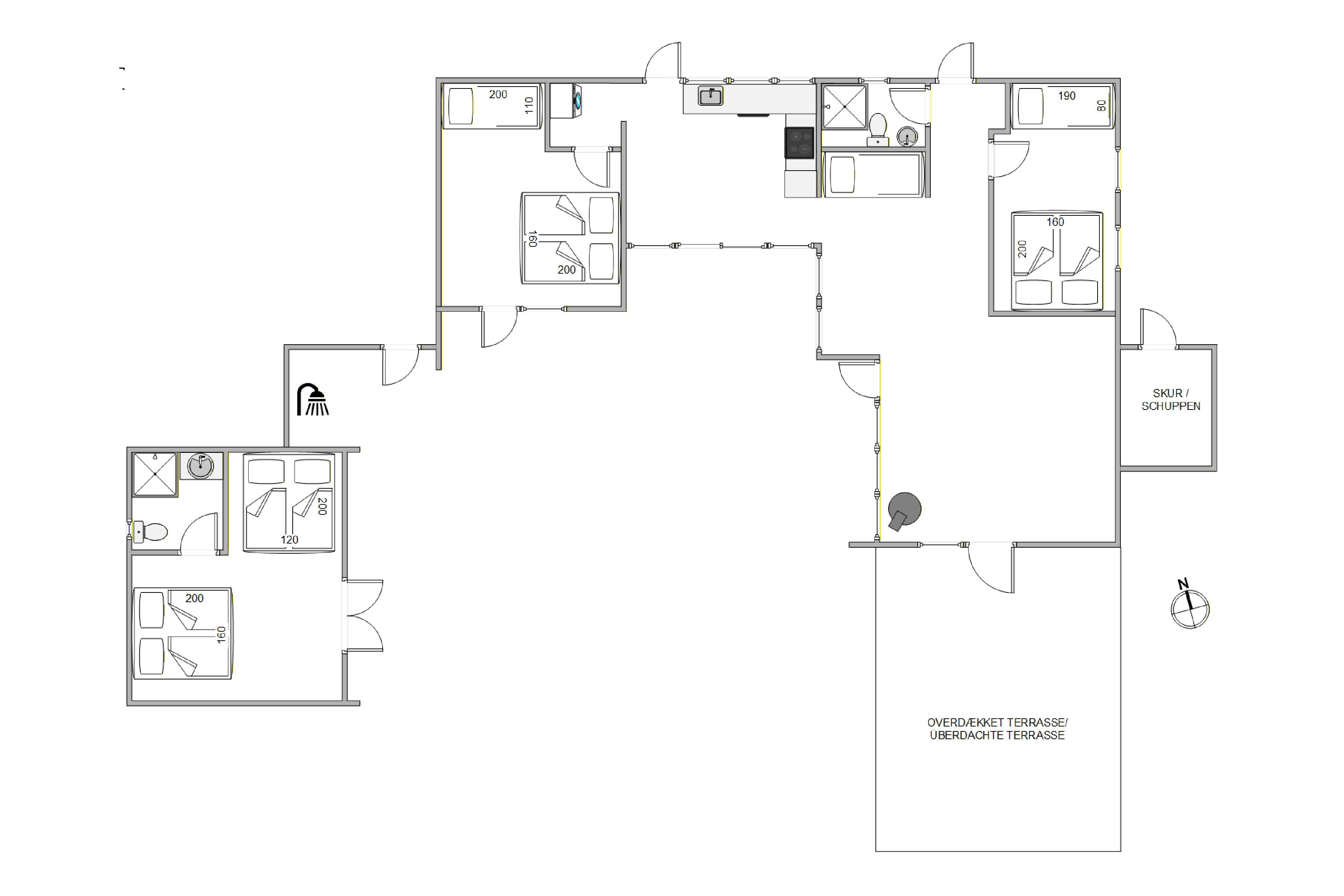 Feriehuset har i alt 7 sengepladser fordelt i 3 soverum. Den ene befinder sig i anekset med adgang fra terrassen.