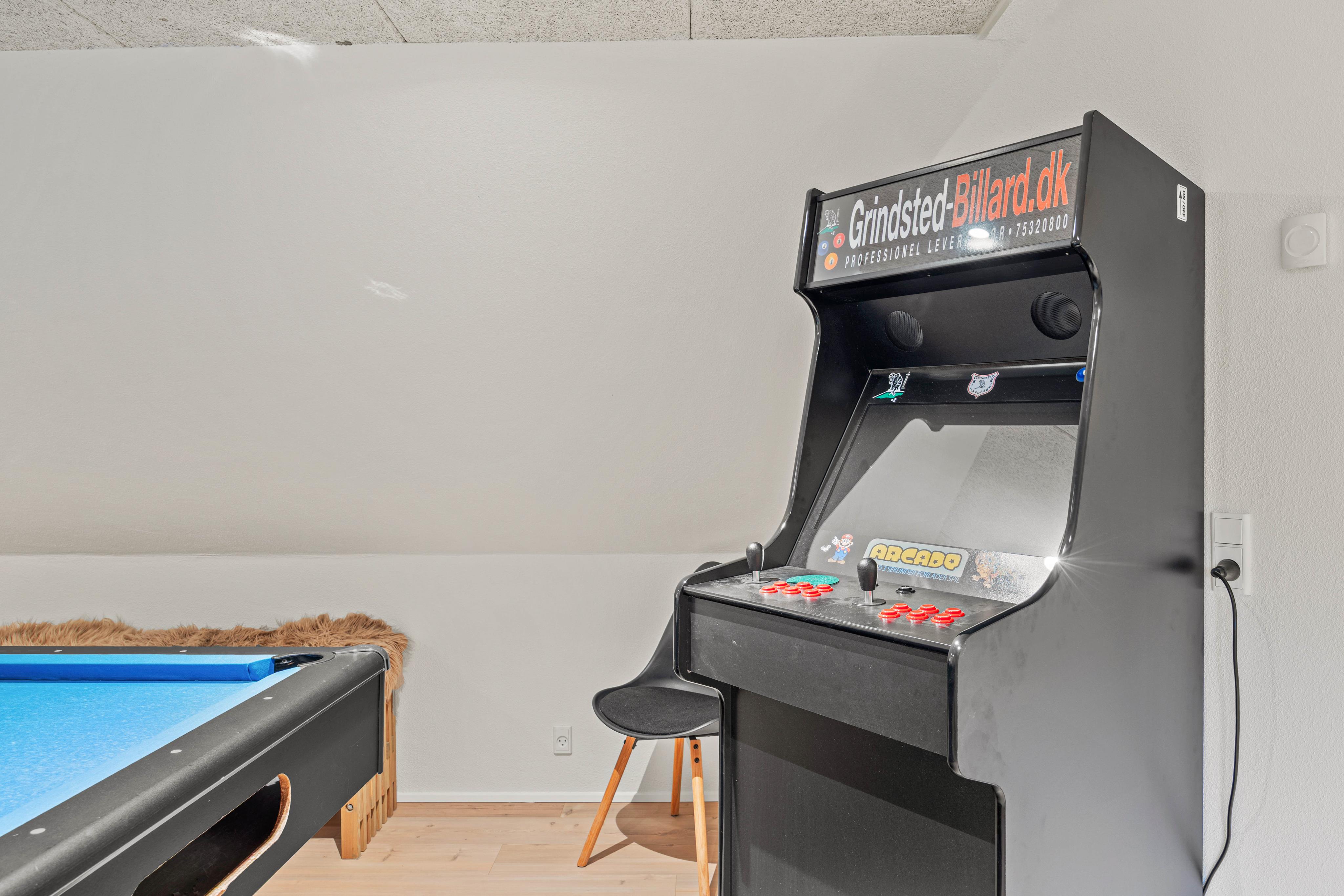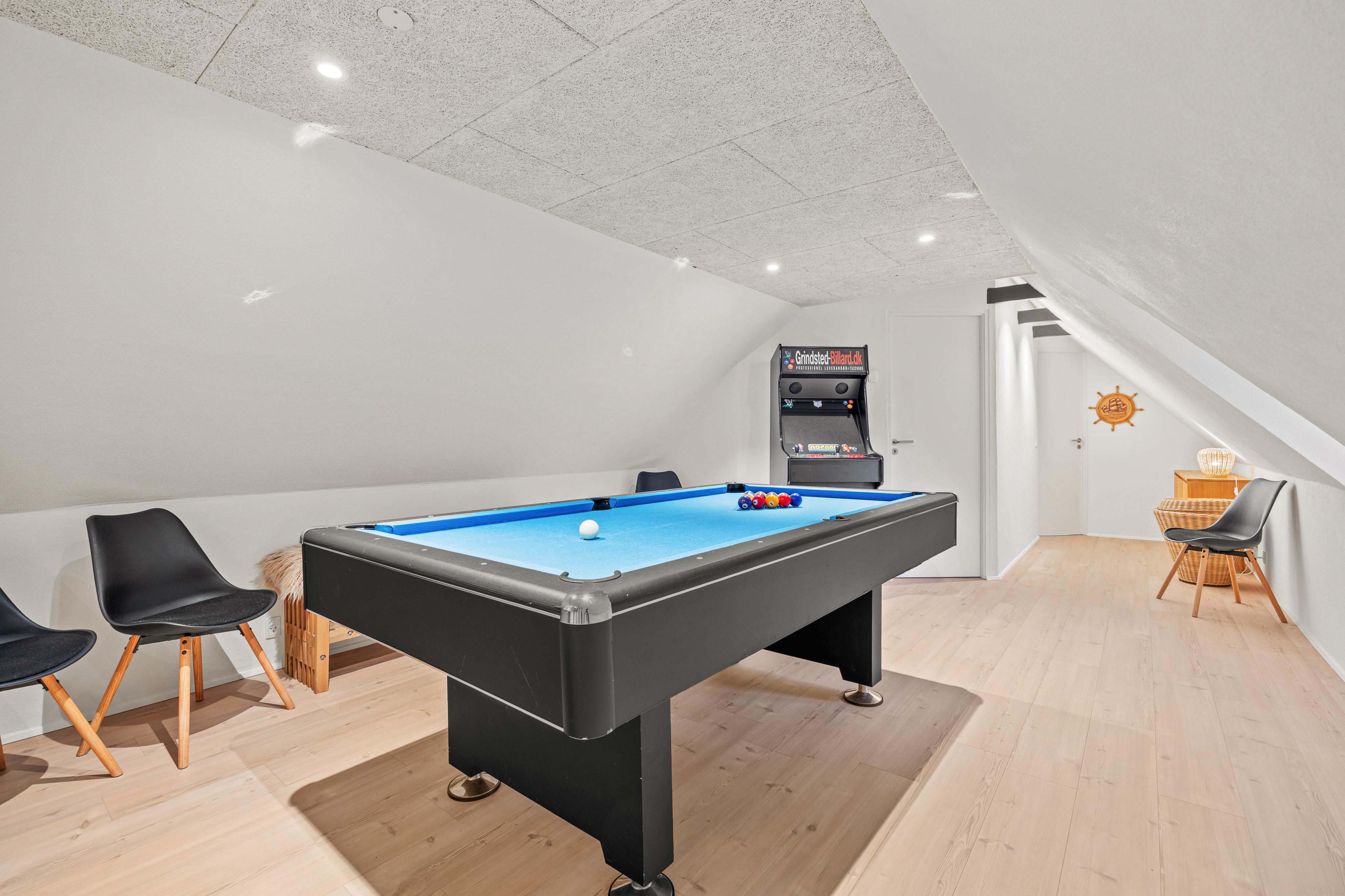 Huset er moderne og vidunderligt og rummet er meget godt valgt. Man må sige, at huset er noget lydt, men det er skønt at høre når børnene har det sjovt. Poolrummet har en stor størrelse og ligesom resten af huset er alting rent. Billardbordet på overetagen er selvfølgelig klasse og med skråninger altid en udfordring. Vi havde bestemt vores sjov. Terrassen har en dejlig størrelse med mange sidde- og liggemuligheder. Trampolinen og fodboldmålene var super godt modtaget hos børnene.