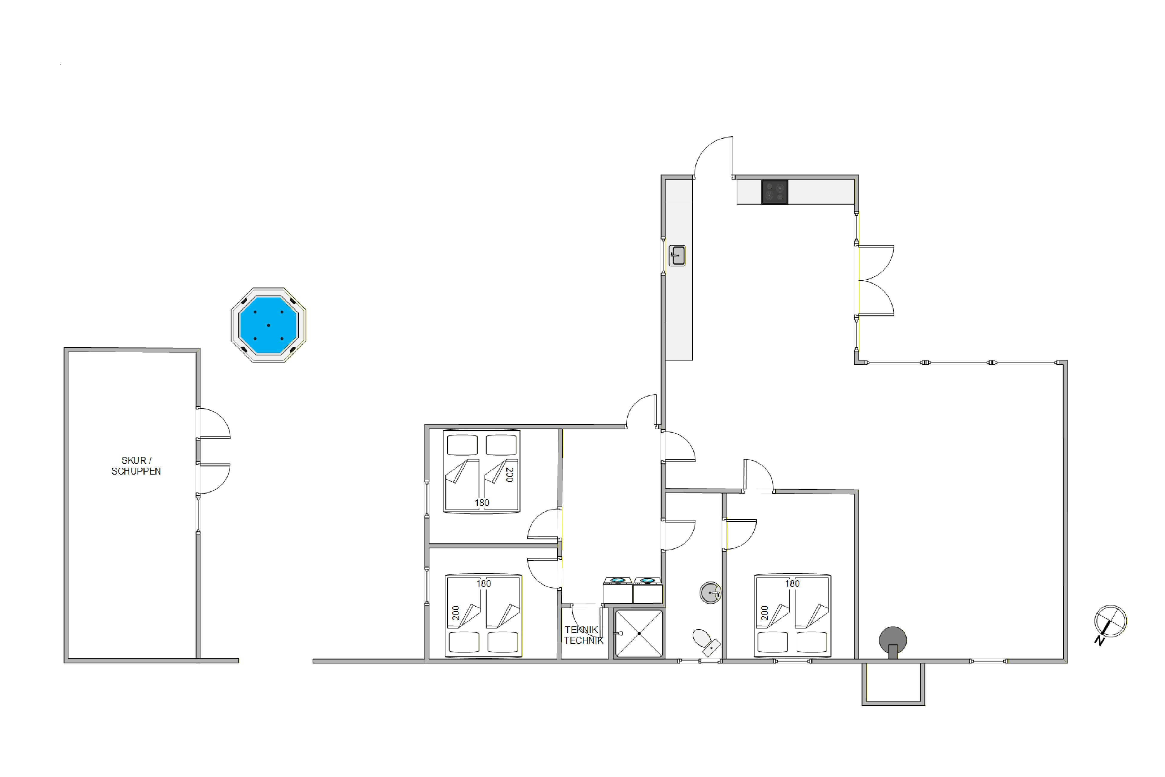 Et virkelig veludstyret, nyrenoveret sommerhus med en stor whirlpool på terrassen. Alt er nyt, alle møbler er super opstillet, selv knivene var skarpe.