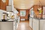 Det praktiske køkken, spisepladsen og stuen er i åben forbindelse med hinanden, så I kan forberede aftensmaden, mens børnene leger i stuen og dermed stadig er tæt på. Efter middagen kan I gøre jer det behageligt i stuen og se en film over en gang hjemmelavede popcorn, mens I luner jer på brændeovnen.