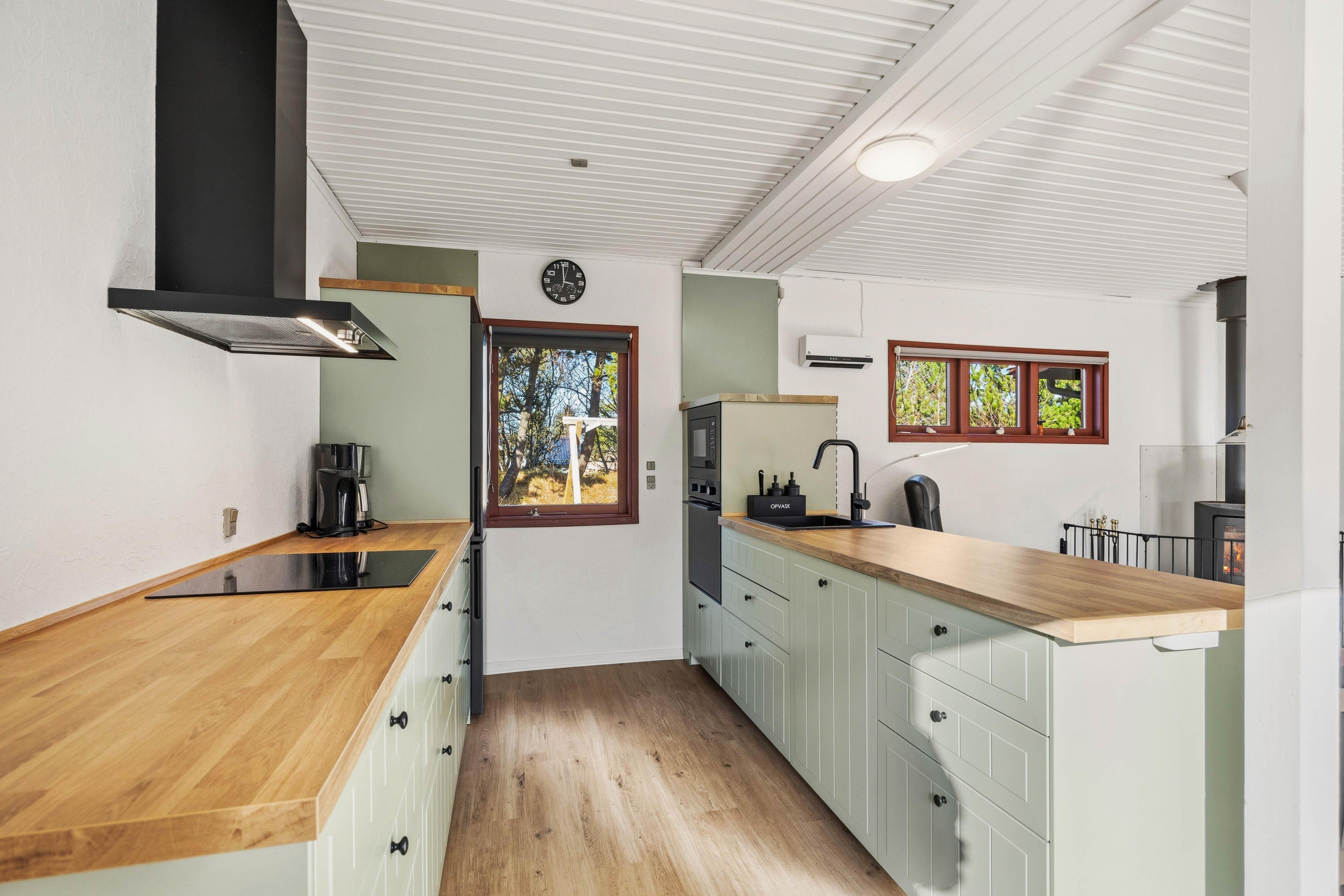 Når man kommer ind i dette feriehus, føler man sig med det samme fuldstændig godt tilpas. Huset har en smuk opdeling, så man også nemt kan trække sig tilbage. I huset finder man alt, hvad man har brug for, køkkenet er fuldt udstyret, i stuen er der spil og tegneredskaber til de små. Alt i alt et smukt hus til at nyde sin Danmark-ferie.