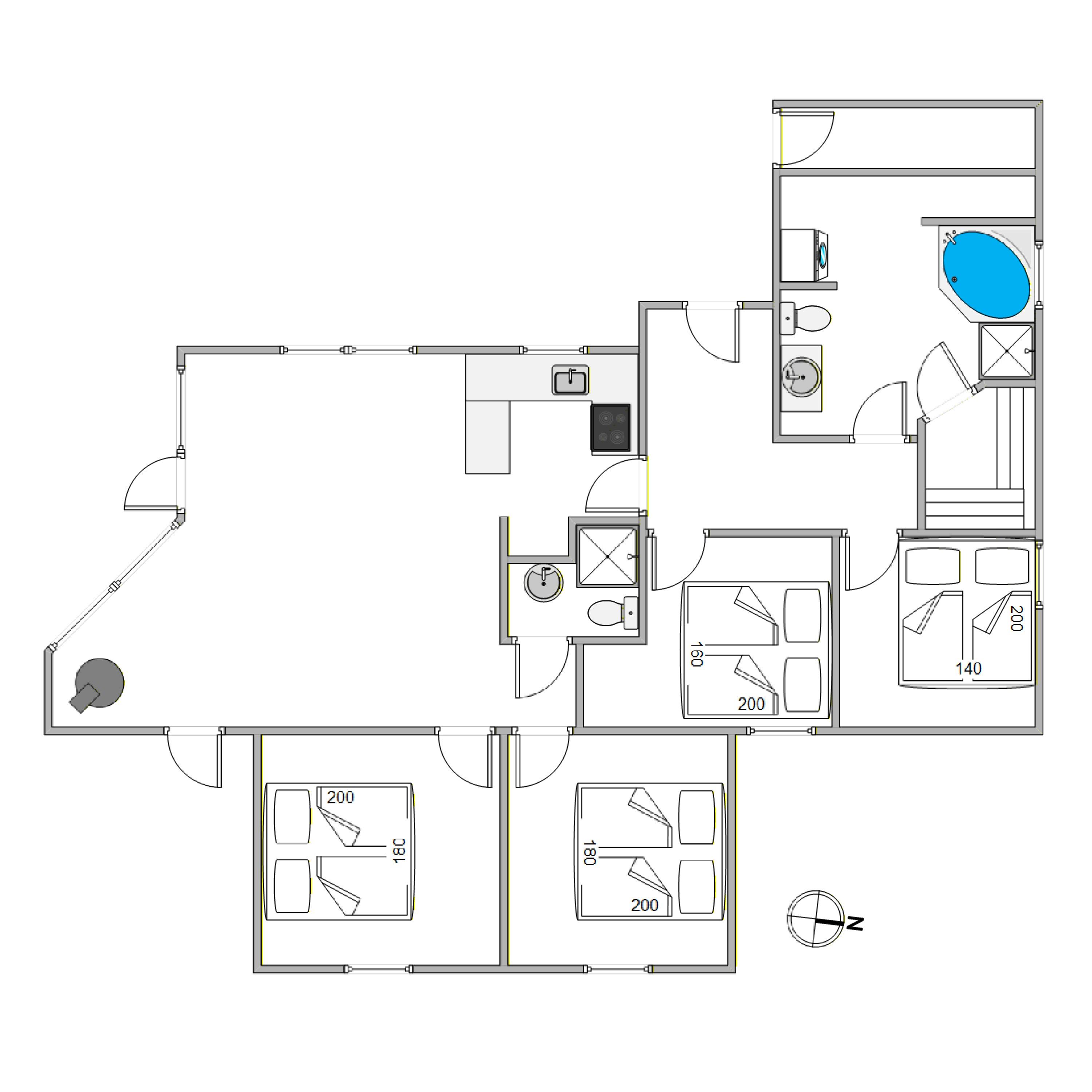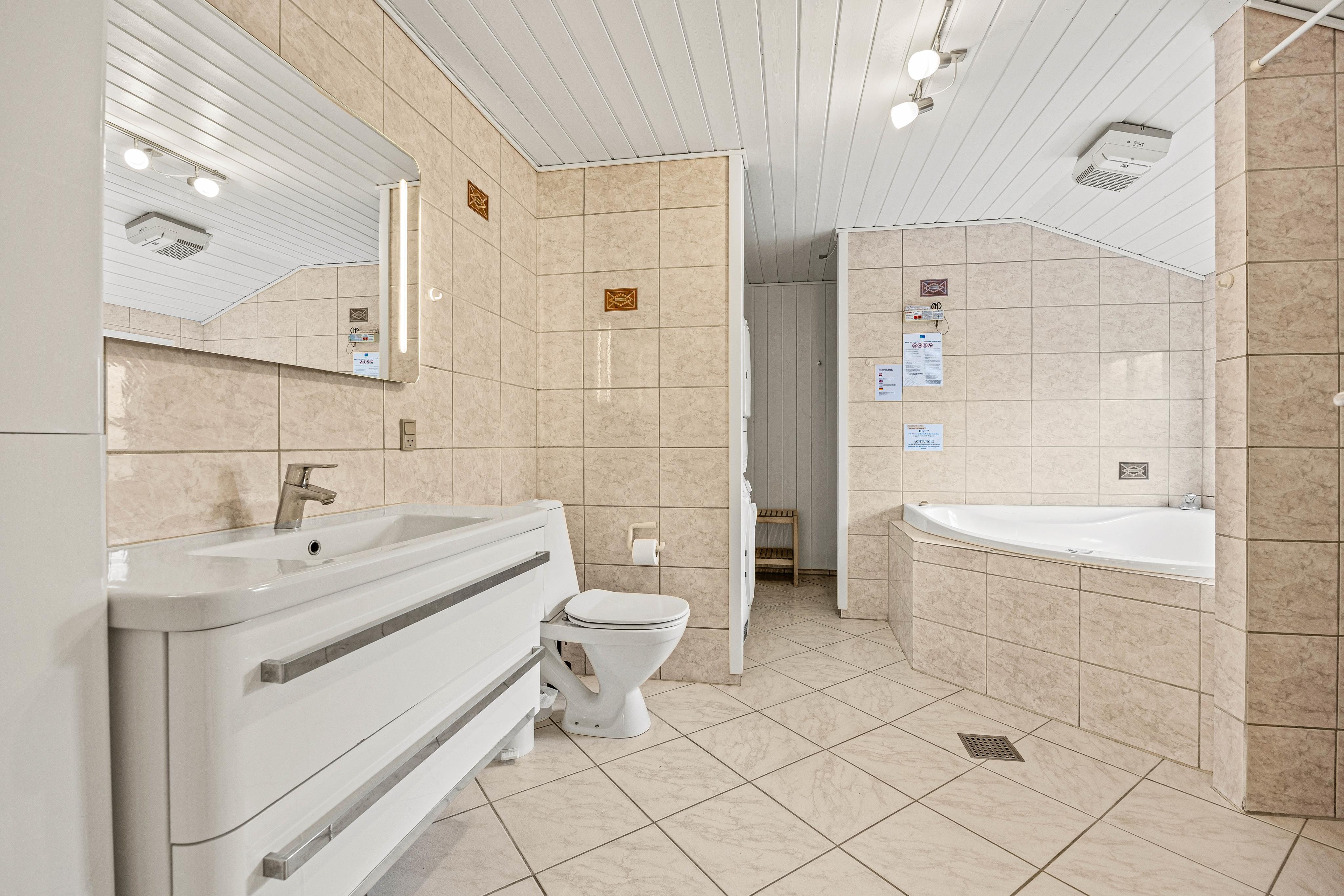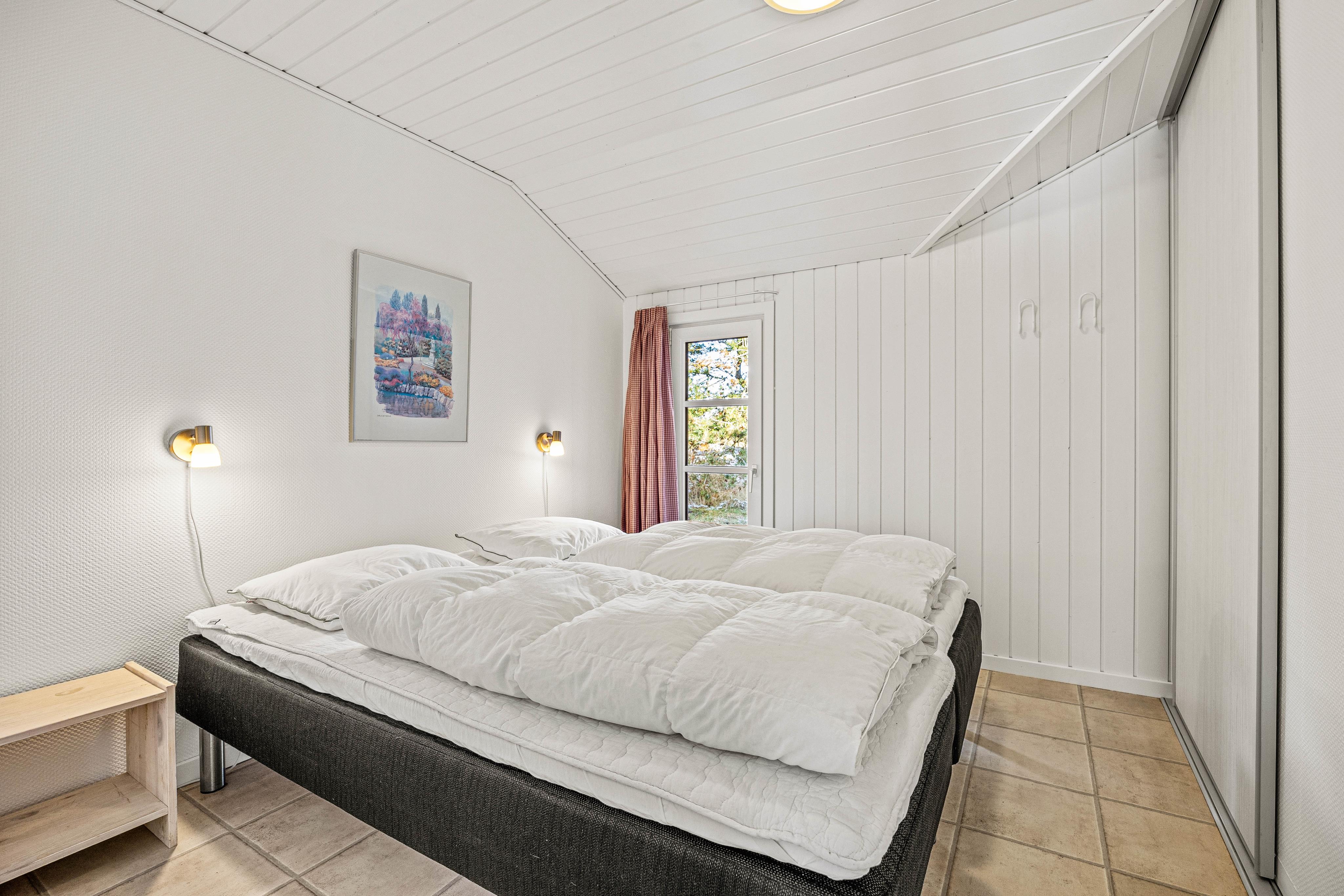 Feriehuset har 4 soveværelser; tre med dobbeltseng og et med enkeltsenge. Her kan alle hvile ud til lyden af havet og være klar til næste dags oplevelser. Der er to badeværelser med brus – det ene er nærmest en stor wellness afdeling med lækker 2 personers spa og sauna. Der er desuden både vaskemaskine og tørretumbler til jeres rådighed.