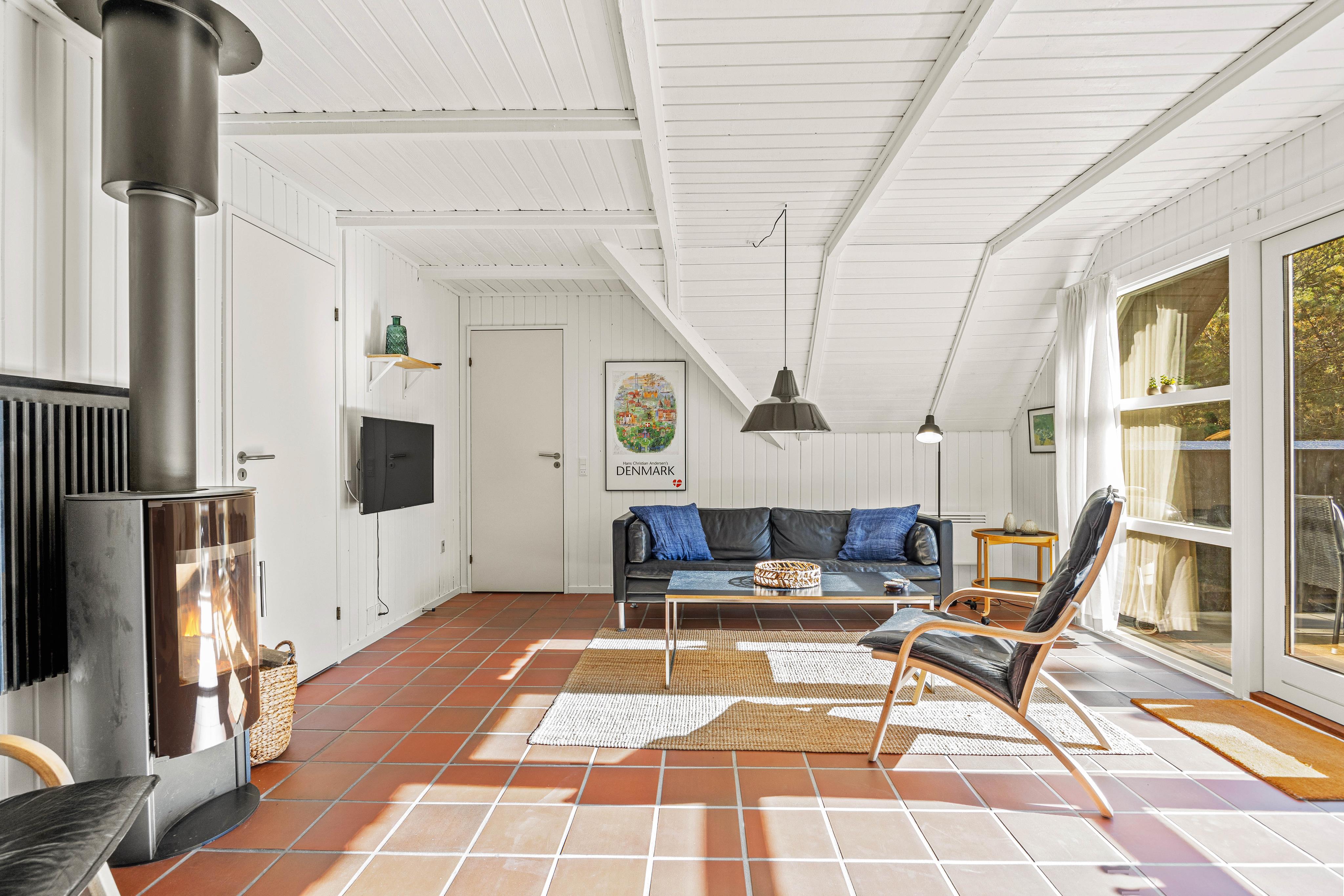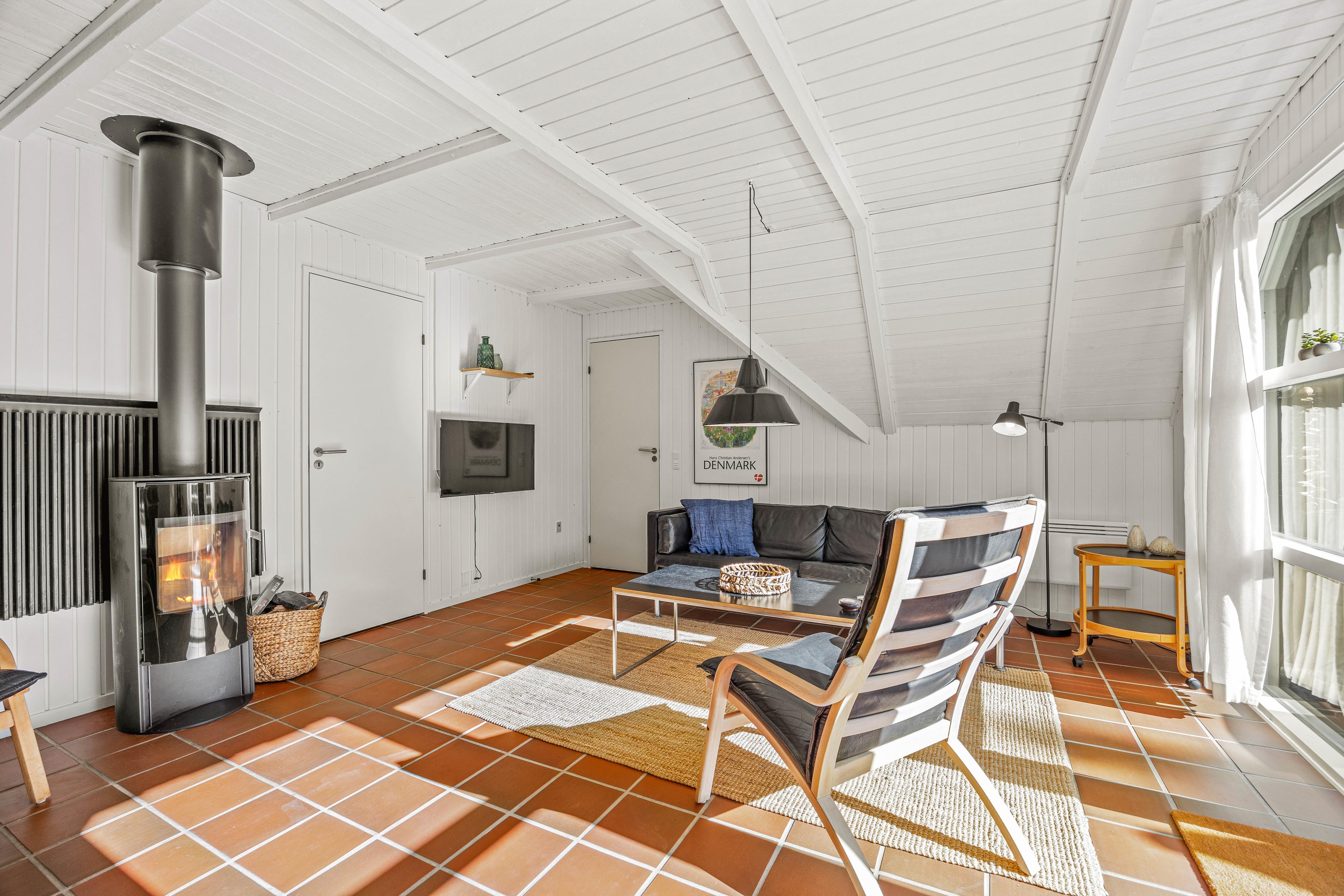 Brændeovnen står centralt placeret i huset og spreder varme og hygge på kolde dage i god kombination med den energibesparende luft-til-luft-varmepumpe, som sørger for et godt indeklima året rundt. Læs en god bog i en af stolene og kom helt ned i gear på Vestermarken 2B eller få gode samtaler henover sofabordet, måske med planlægning af de næste dages ferieaktiviteter.