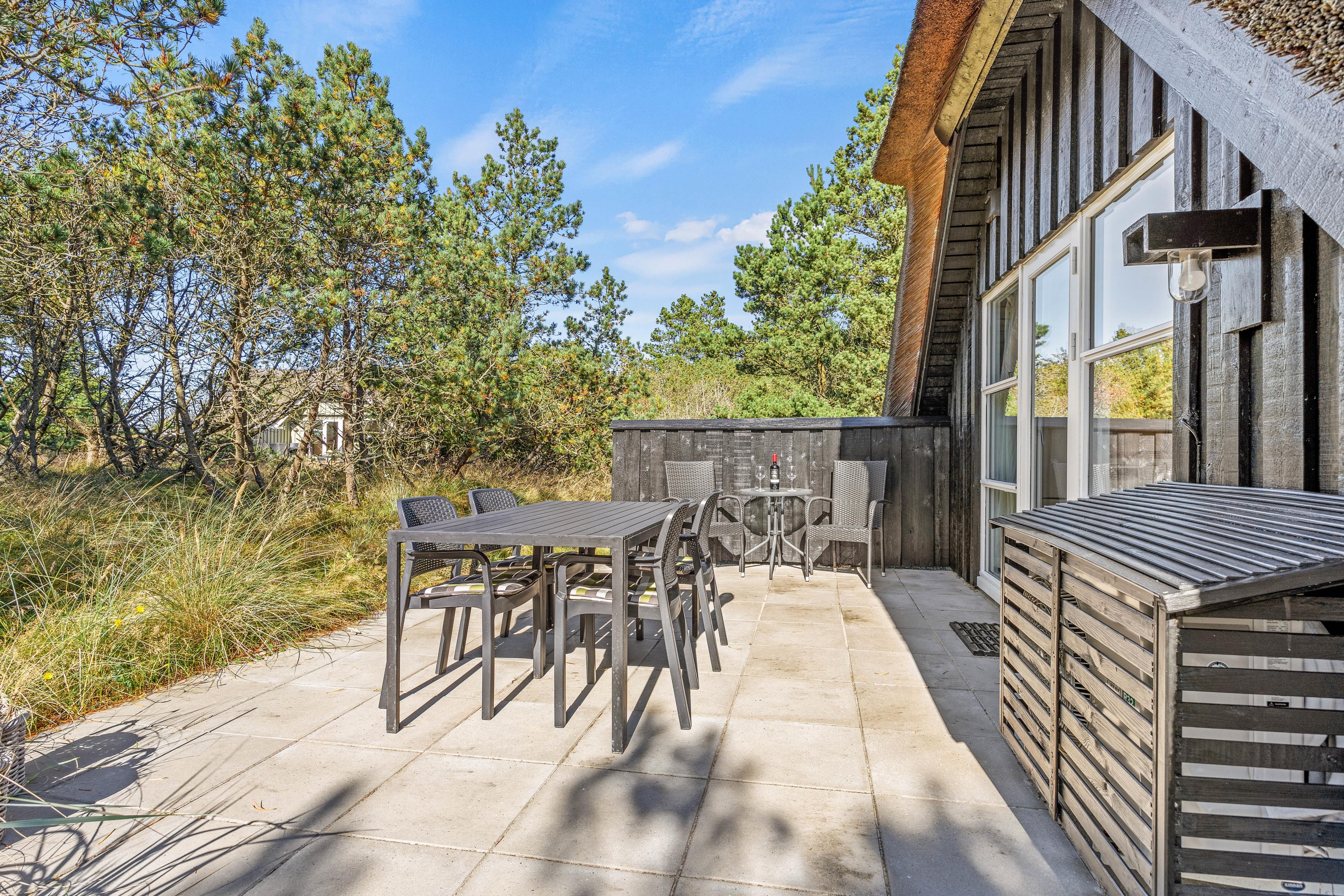 Sommerhuset har desuden en åben samt en afskærmet terrasse, så I selv kan vælge, om I ønsker at nyde solens stråler eller foretrækker skygge. Tilbered lækre måltider på grillen og nyd dem udenfor, omgivet af den fascinerende natur på den store grund. Diget på grunden giver læ for vinden på terrassen, så her kan I sidde, også selvom der blæser en frisk, vestjysk vind.