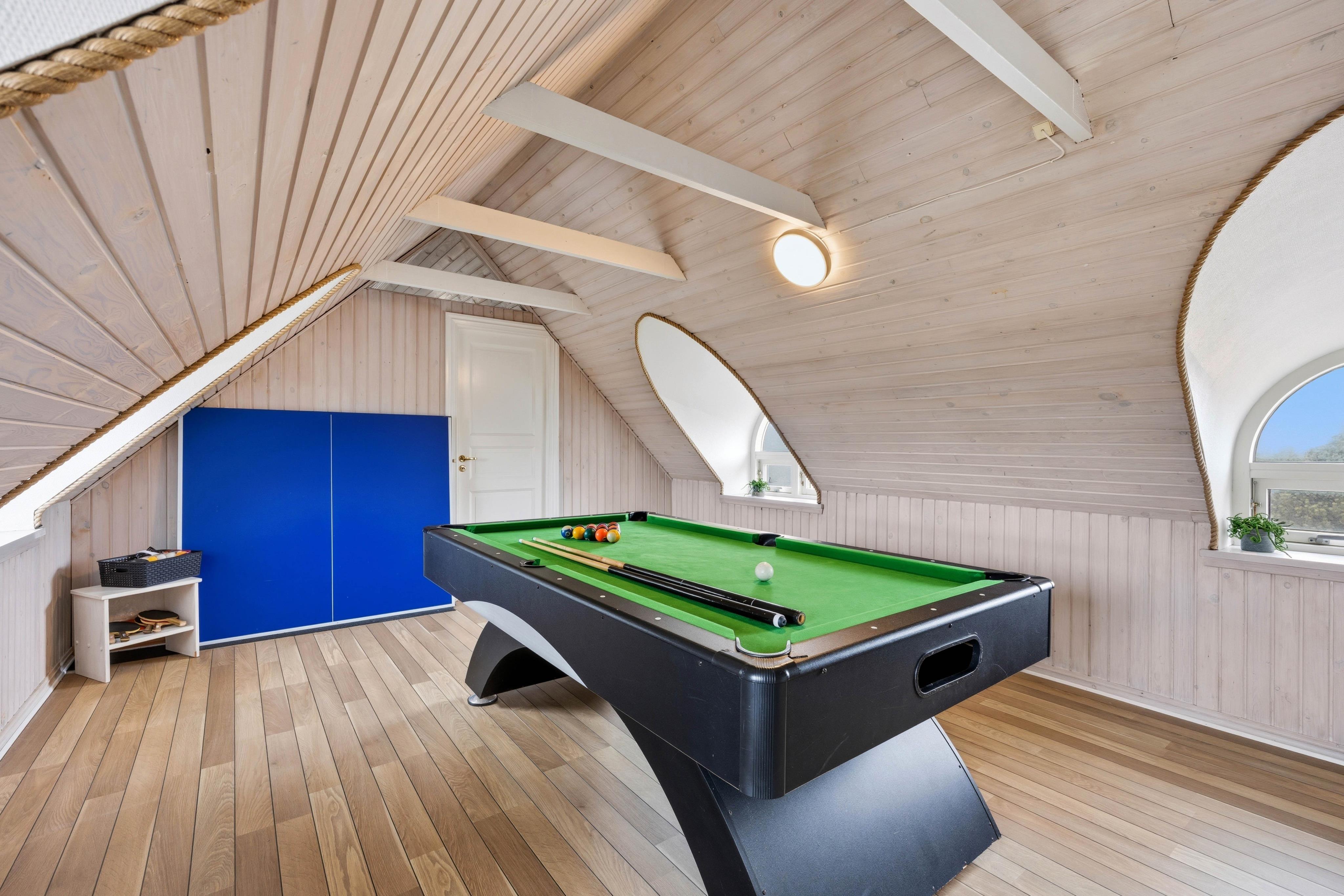 Intet ophold uden lidt sjov og underholdning - og det er præcis, hvad du får i dette sommerhus i Blåvand. Tag en dukkert i den private swimmingpool på 25 kvadratmeter eller forkæl dig selv med en tur i saunaen. Er du i det konkurrencelystne hjørne, kan du spille både pool og bordtennis.
