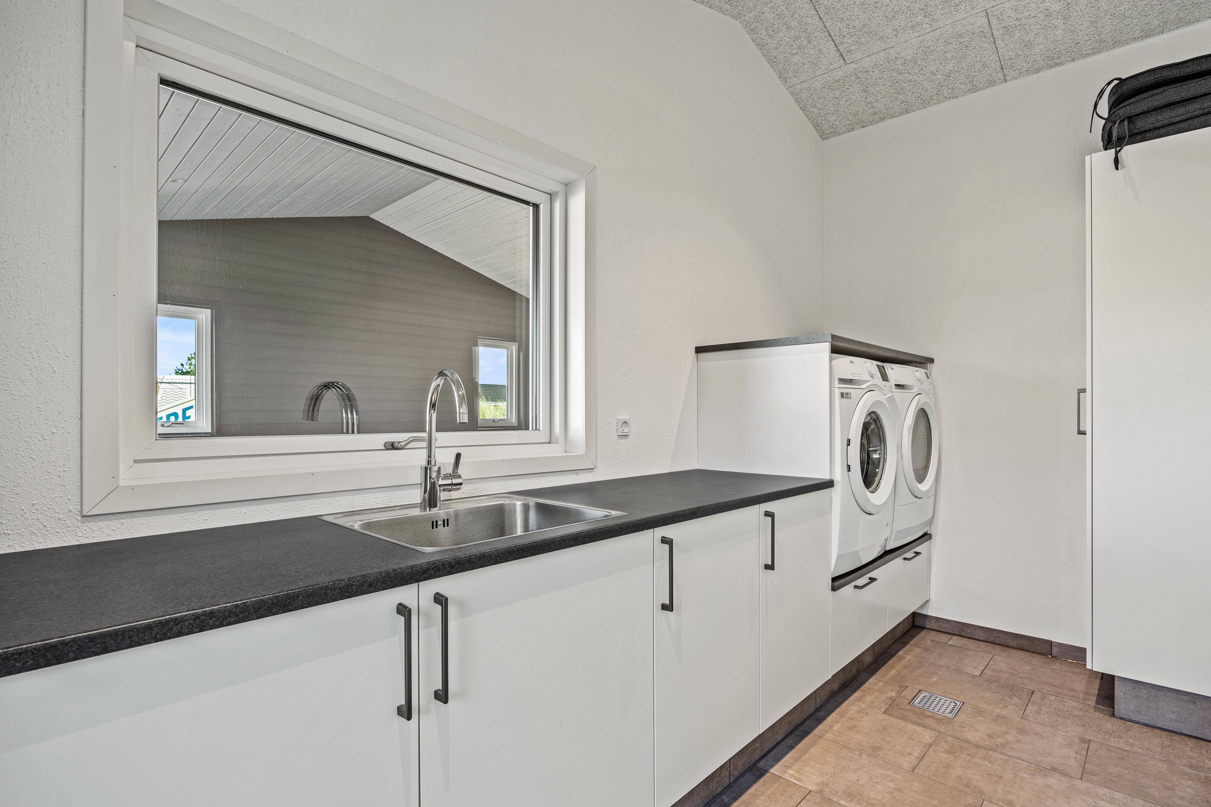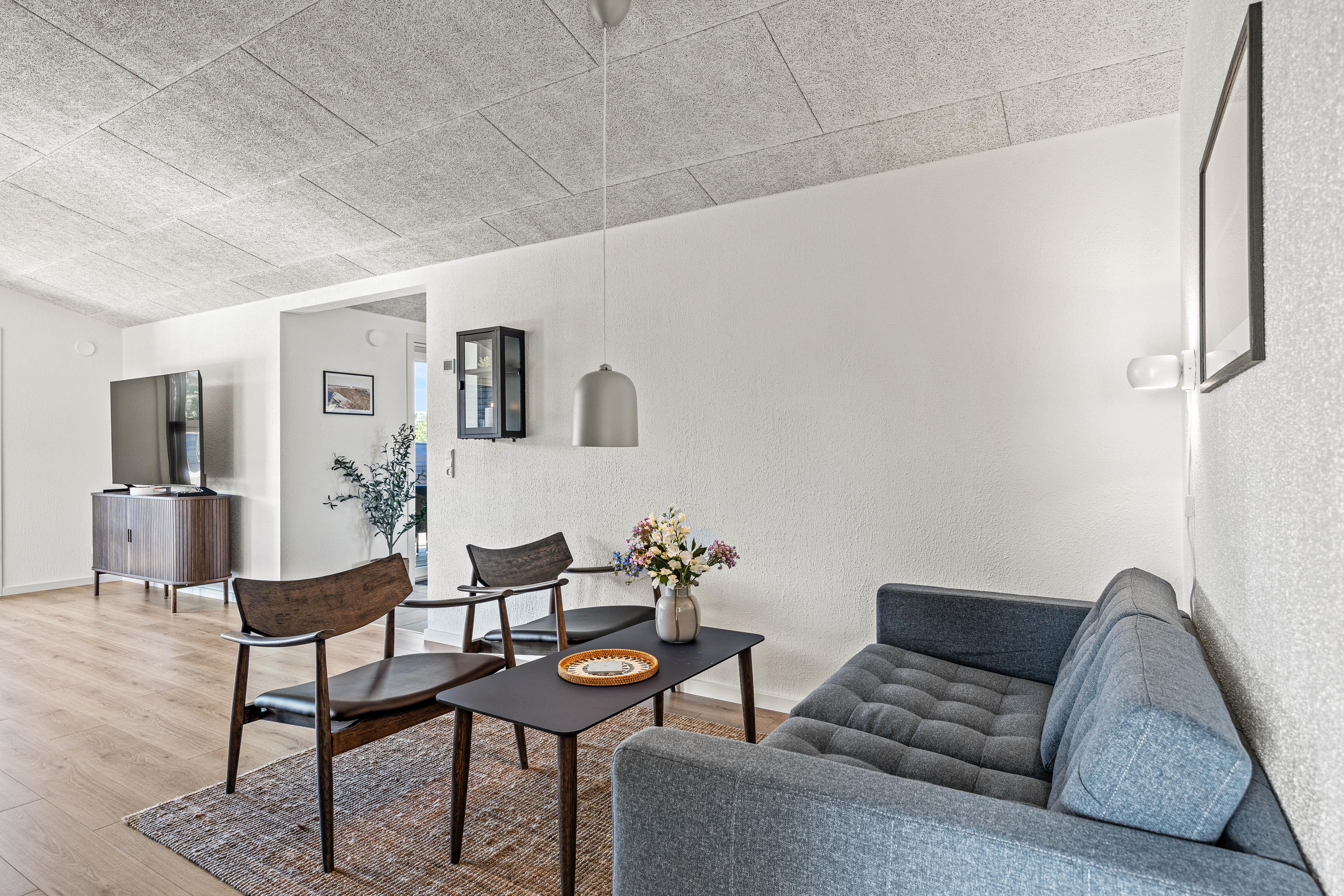 Køkkenet, med en 90-liters fryser og en praktisk opvaskemaskine, er perfekt til at tilberede delikate måltider med familien. Den komfortable opholdsstue med gulvvarme byder på hyggelige stunder, mens avanceret teknologi, som en effektiv luft-vand-varmepumpe, sikrer en miljøvenlig oplevelse og et godt indeklima uanset årstiden.