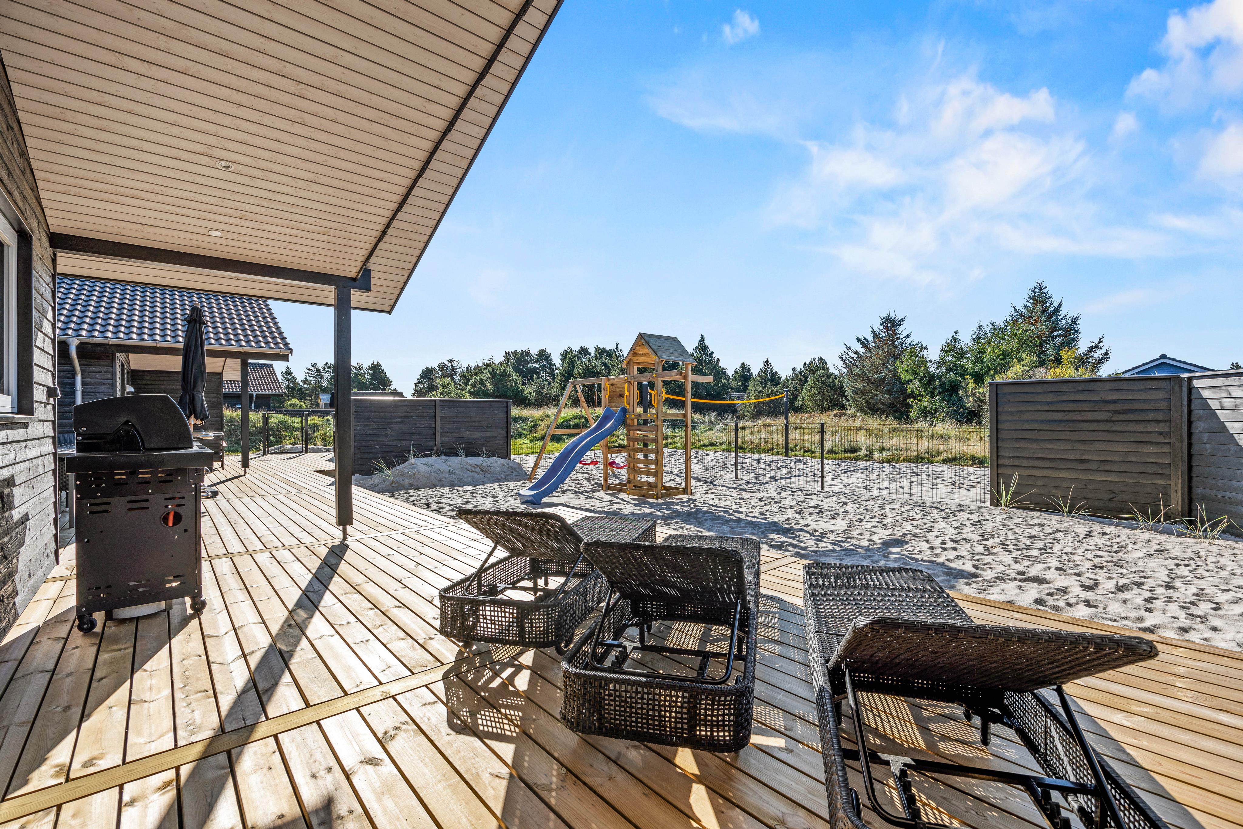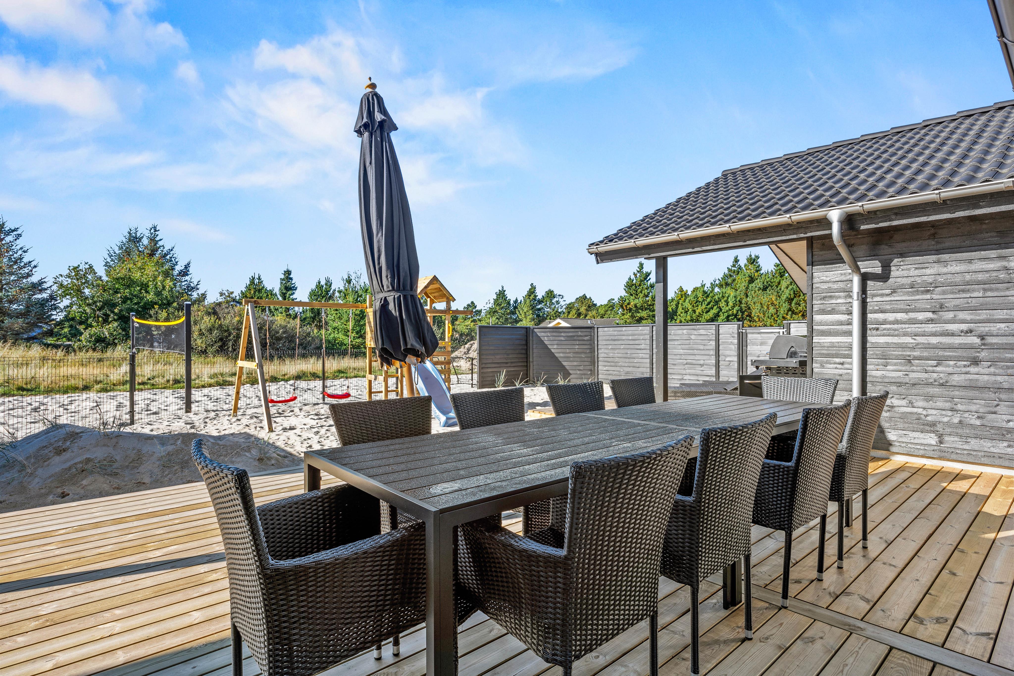 Bare 1500 meter fra den betagende strand og indkøbsmuligheder har denne feriebolig i Blåvand den perfekte placering til spændende udflugter. Efter en dag fuld af aktiviteter kan du smide dig i de komfortable havemøbler og nyde roen på den idylliske klitgrund – måske i selskab med dine firbenede venner, da op til tre hunde er velkomne på den indhegnede grund.
