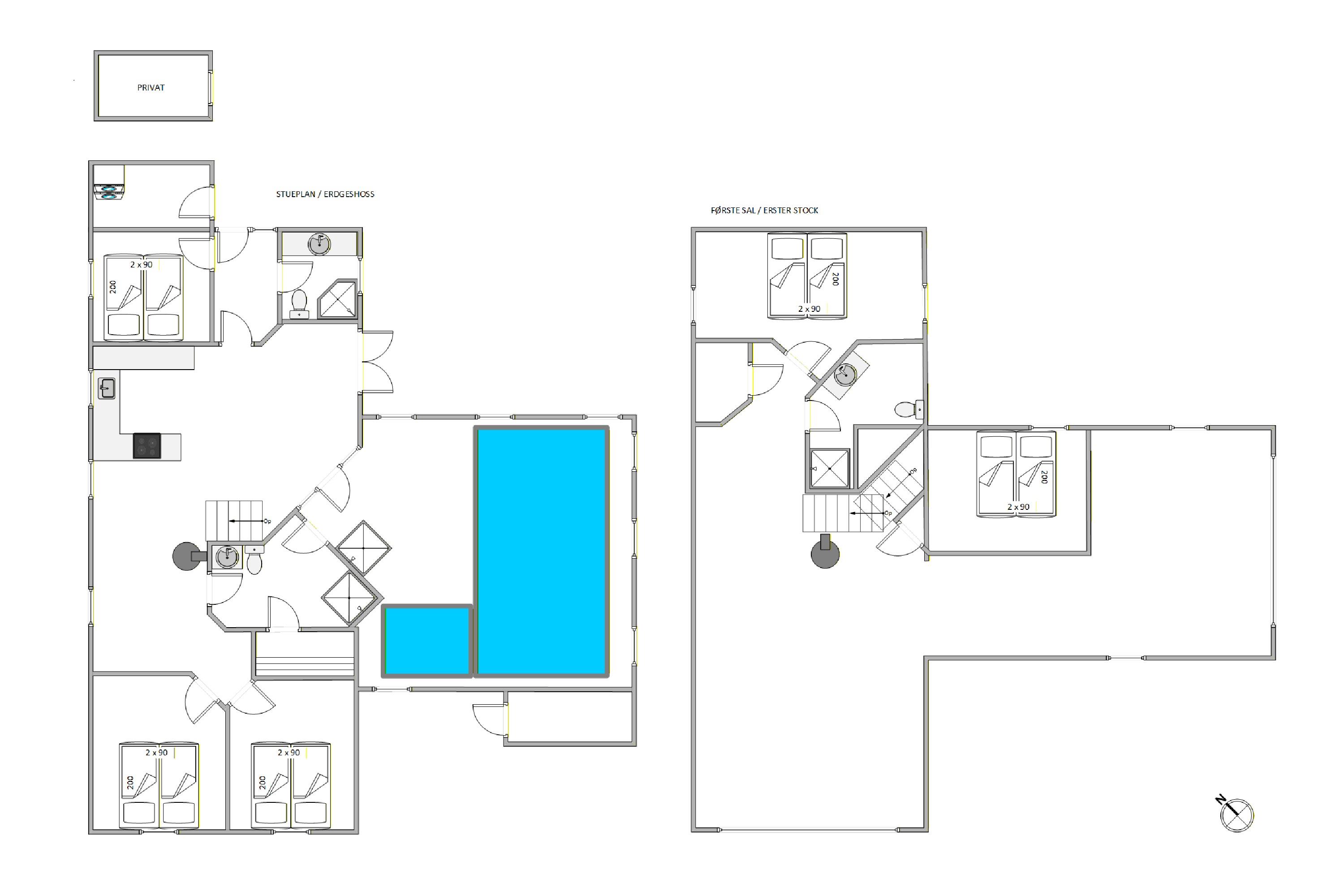 Det bedste i huset er dog den skønne 21 kvadratmeter store, indendørs swimmingpool, der indbyder til såvel sjove stunder som motion. Efter en rask svømmetur kan du slappe af i det udendørs spabad eller tage et forfriskende brusebad i den udendørs bruser, før du tager til den nærliggende strand kun 50 meter væk. Udebruseren kan benyttes fra 1. april til 31. oktober.