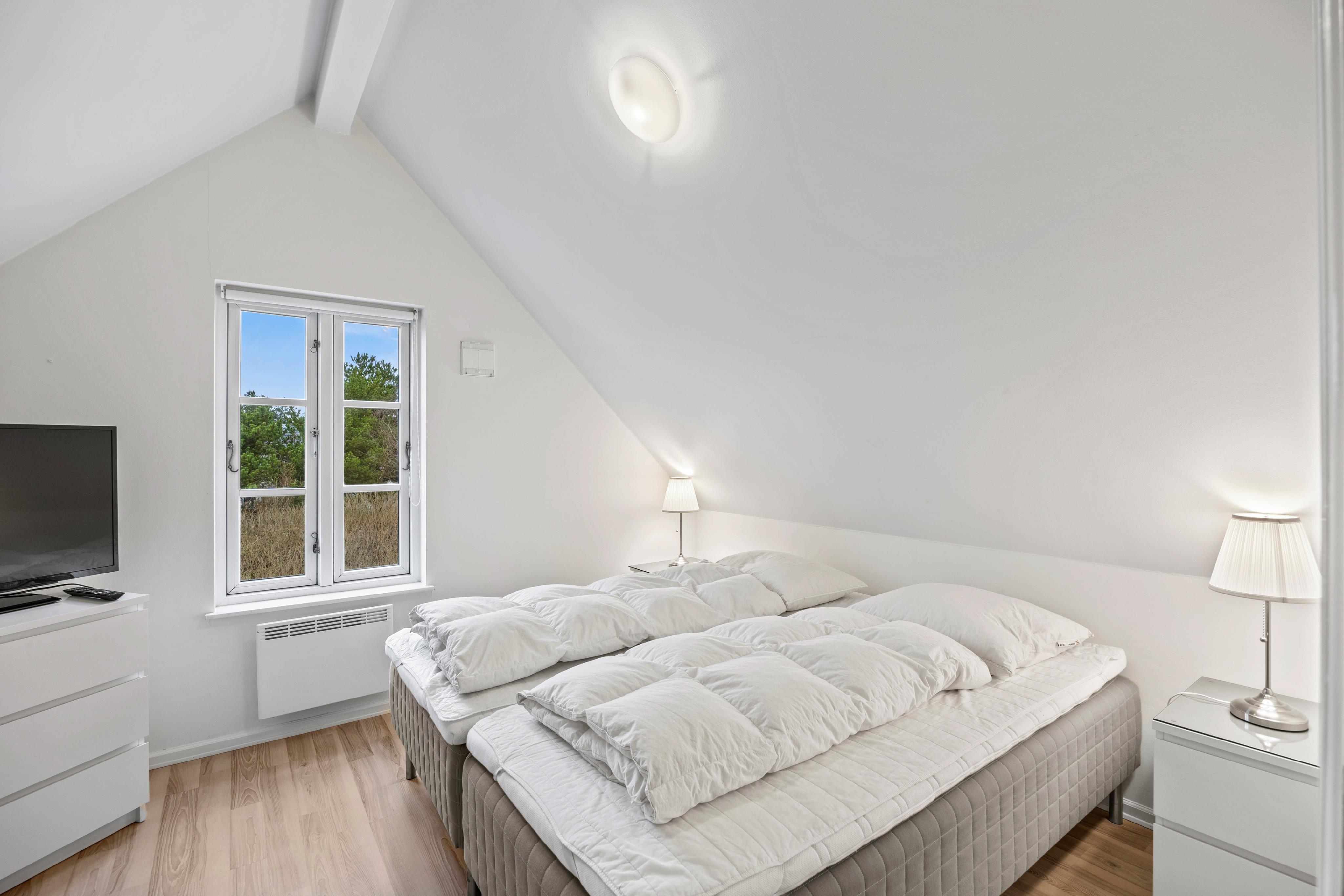 Ved dagens afslutning kan I finde ro og hvile i dobbeltsengene i de 3 enkelt, men smagfuldt indrettede soverum, hvoraf 2 ligger på 1. sal, og næste dag sørger gulvvarmen på badeværelset for, at I ikke fryser om fødderne, når I skal friskes op til nye ferieoplevelser. Her kan I også, måske efter en lang, god gåtur på den nærliggende strand, blive varmet godt igennem i saunaen.