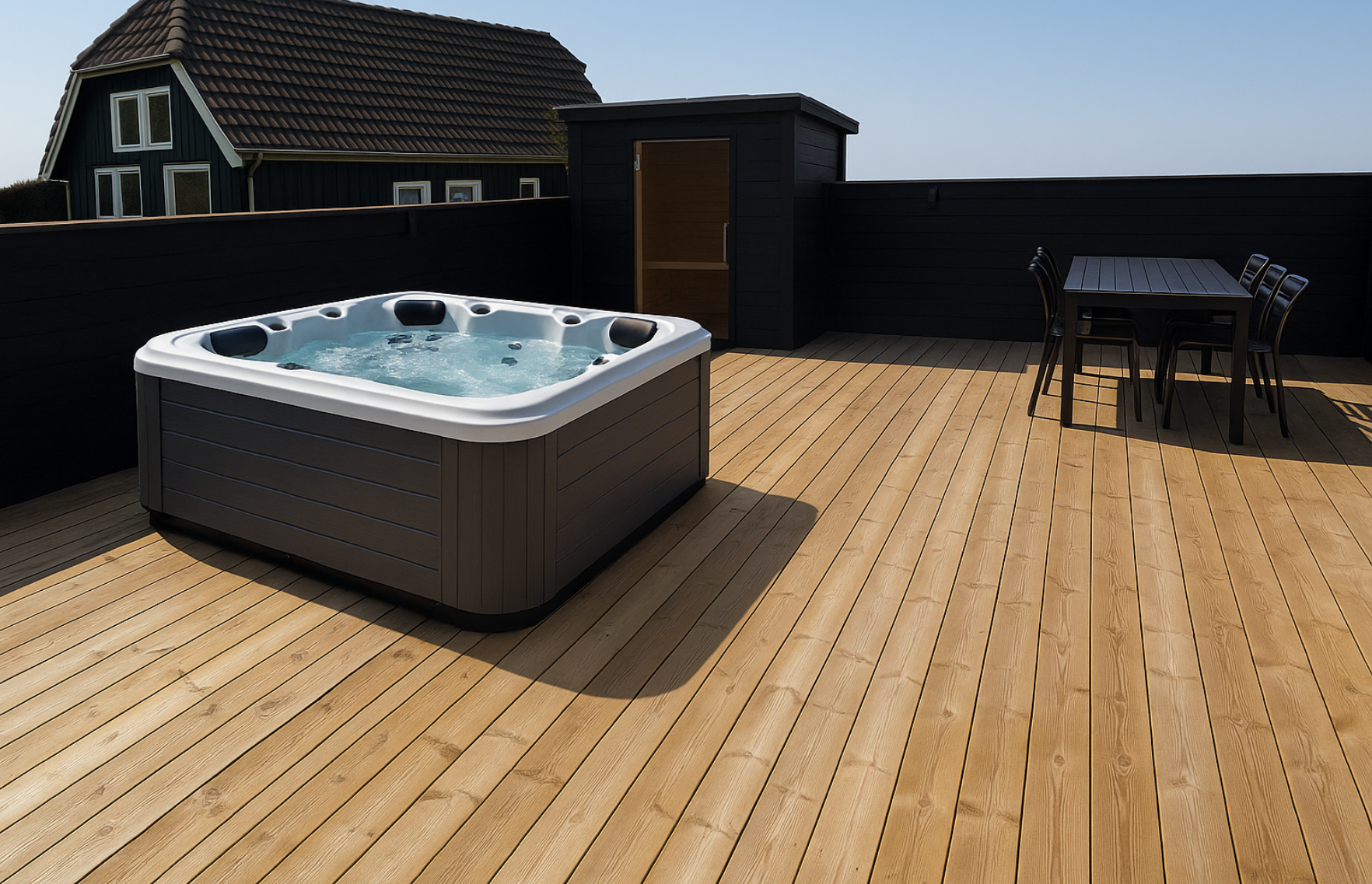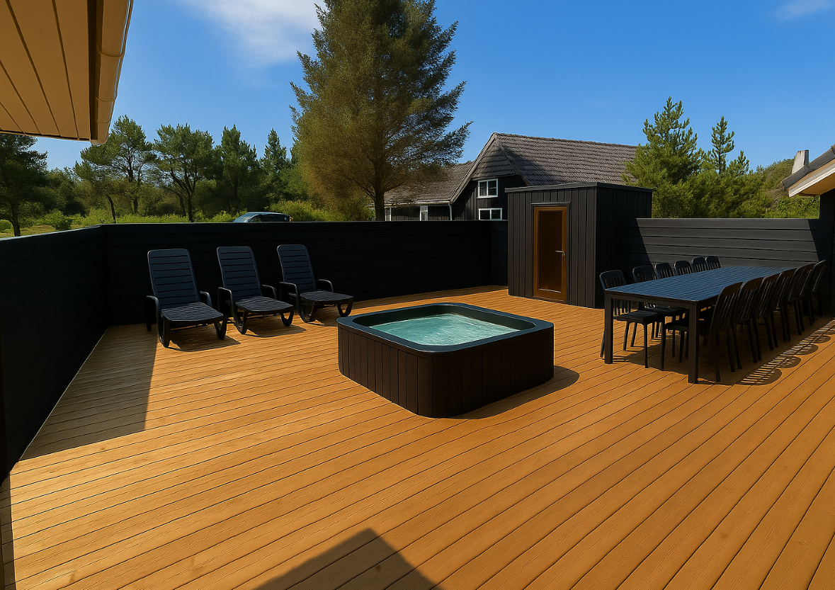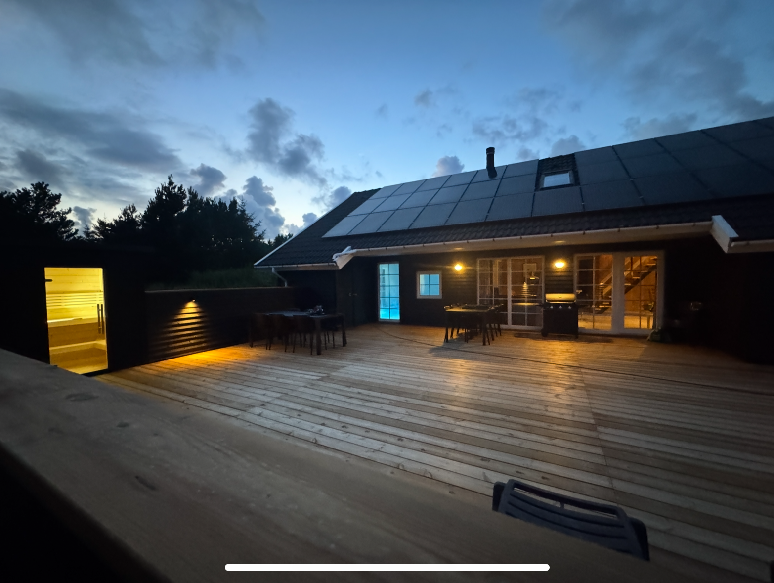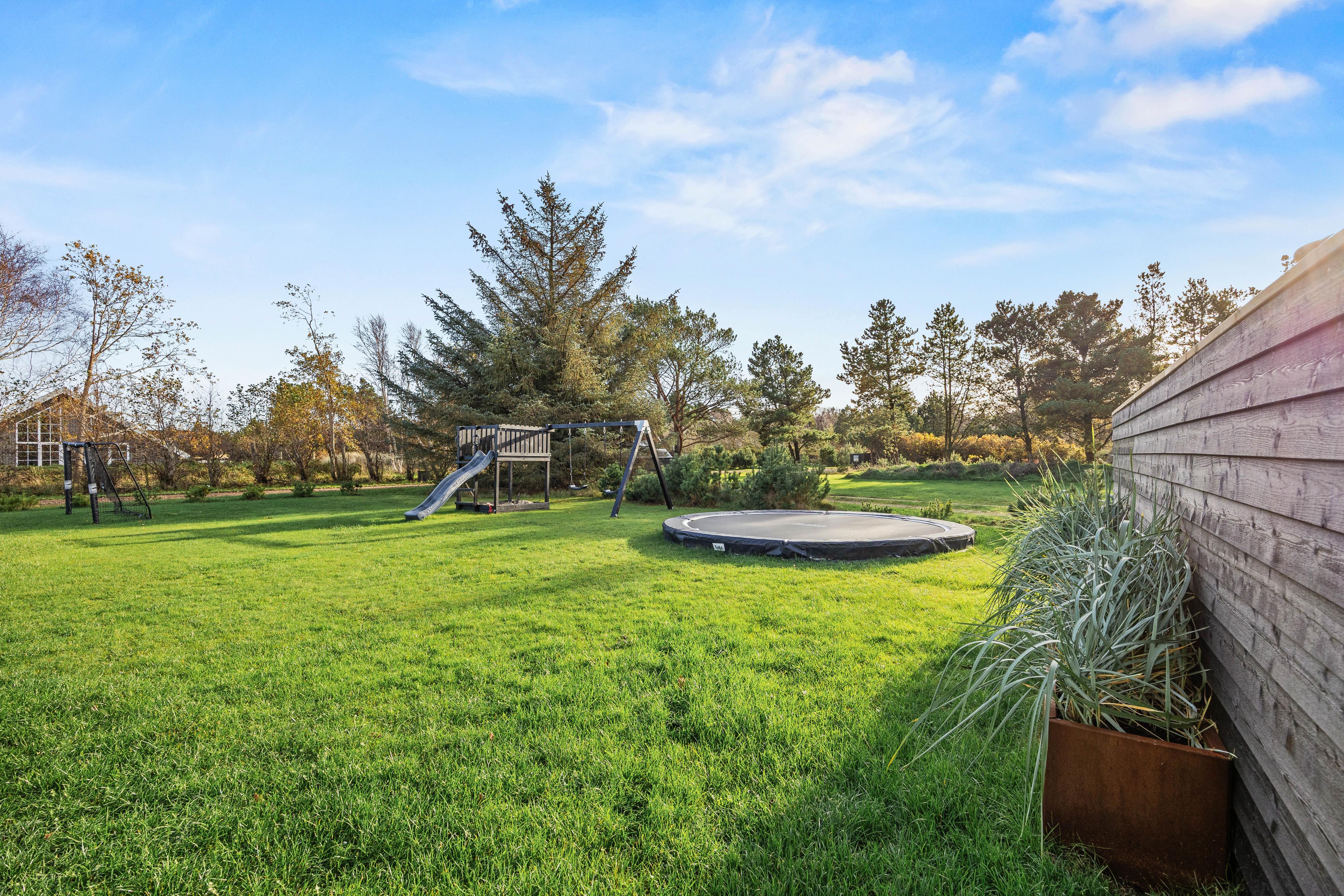 Husets highlight er den 19 kvadratmeter store swimmingpool, der lover både sjov og afslapning. Dertil er der også en udendørs jacuzzi og en sauna, som giver mulighed for ren velvære. Børnene vil elske trampolinen, gyngen og sandkassen i haven og finde timevis af underholdning. De forskellige terrasser – herunder en overdækket og en lukket – giver jer mulighed for at nyde hyggelige grillmiddage med de tilgængelige havemøbler.