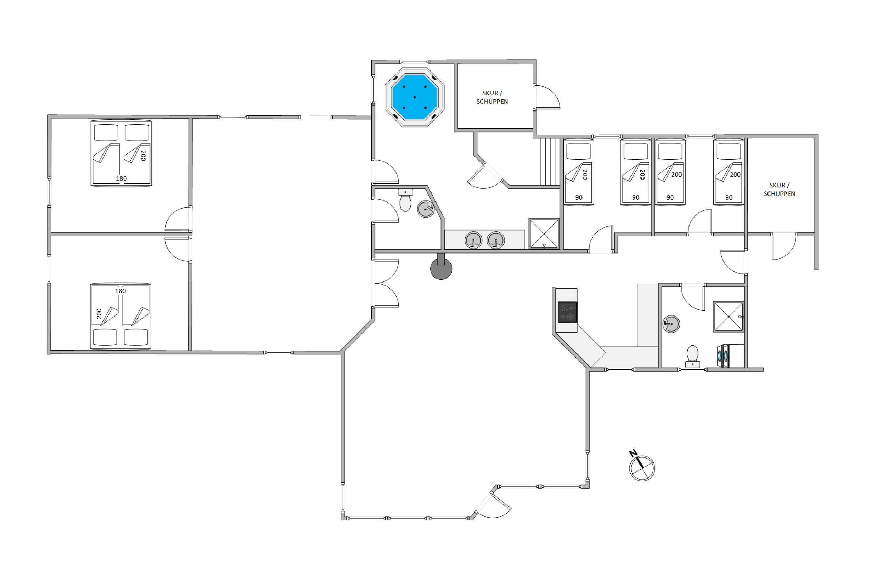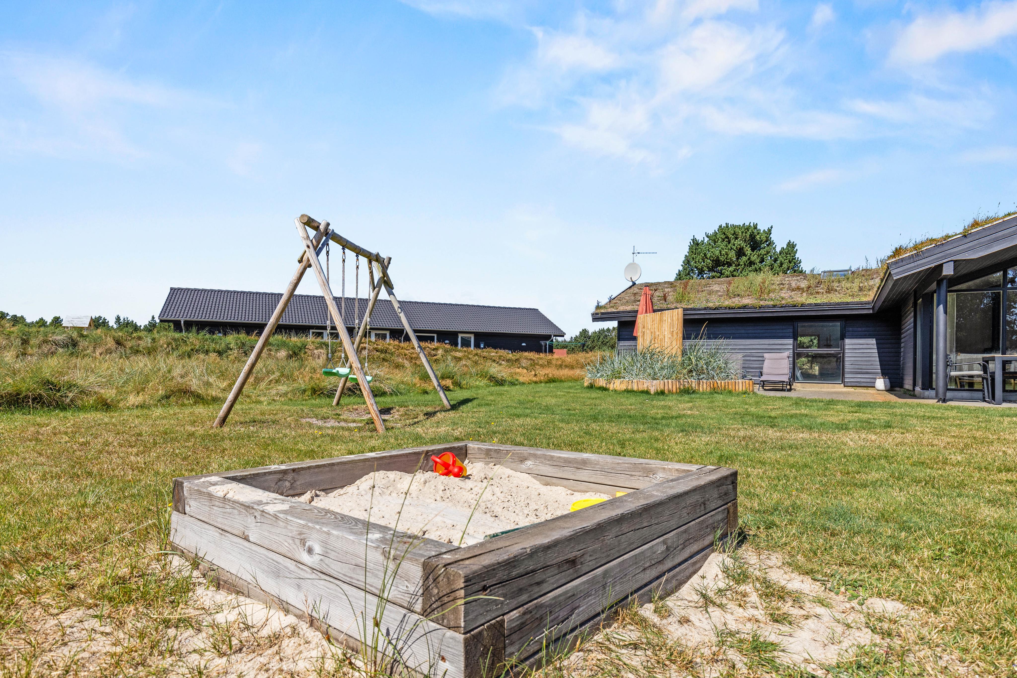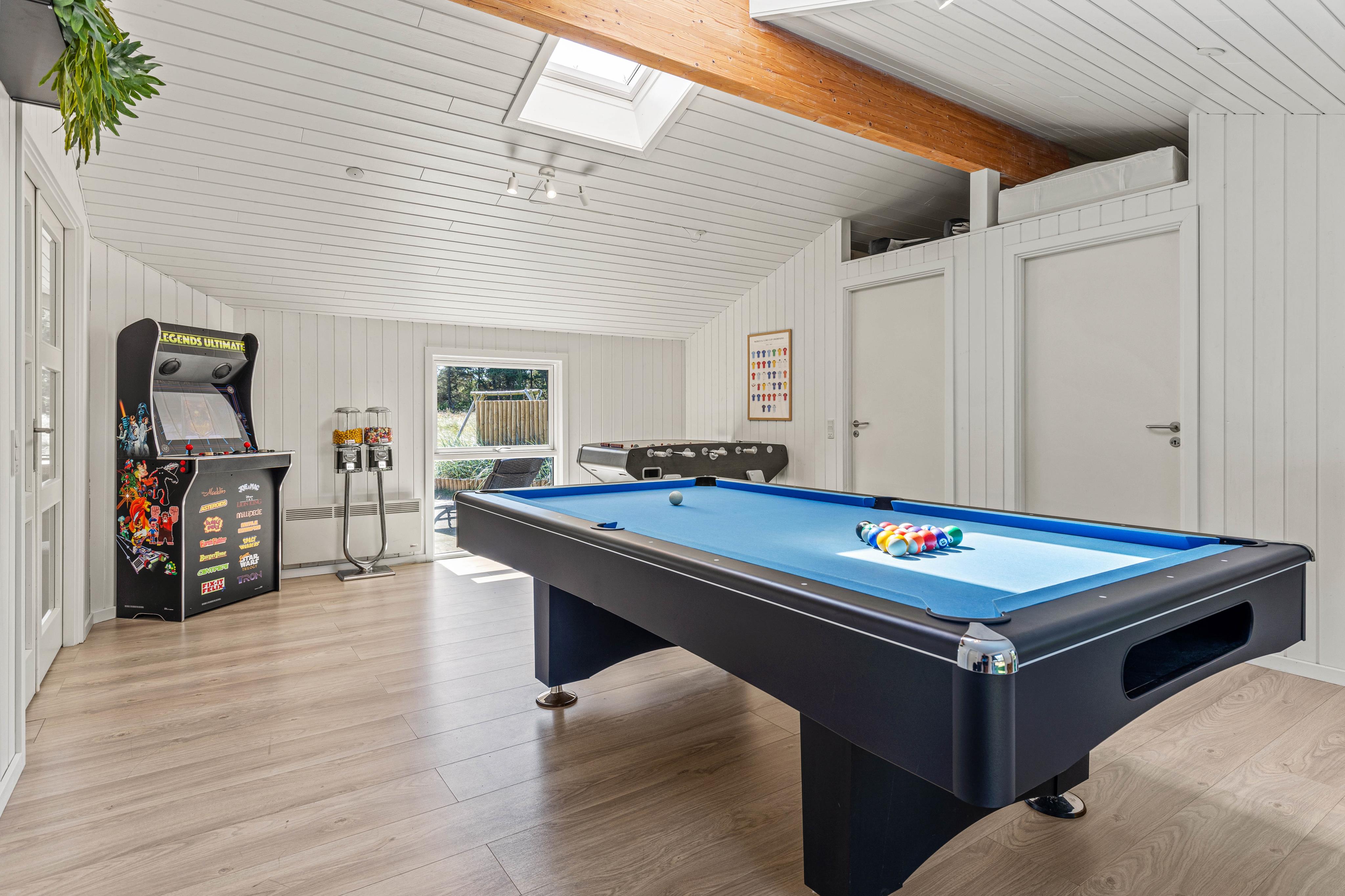 Sommerhuset tilbyder en bred vifte af faciliteter til både afslapning og aktivitet. Med både sauna og standspa er der rig mulighed for luksuriøs selvforkælelse efter en lang dag. For de mere energiske byder aktivitetsrummet på underholdning i form af poolbillard og bordfodbold. Børnene kan lege frit og fantasifuldt på den store, grønne plæne, hvor gynge, sandkasse og trampolin indbyder til timevis af leg og sjov. På den hyggelige, overdækkede terrasse kan I tænde op i grillen, lægge et par saftige bøffer på risten og nyde lange, stemningsfulde aftener under den åbne, blå himmel.