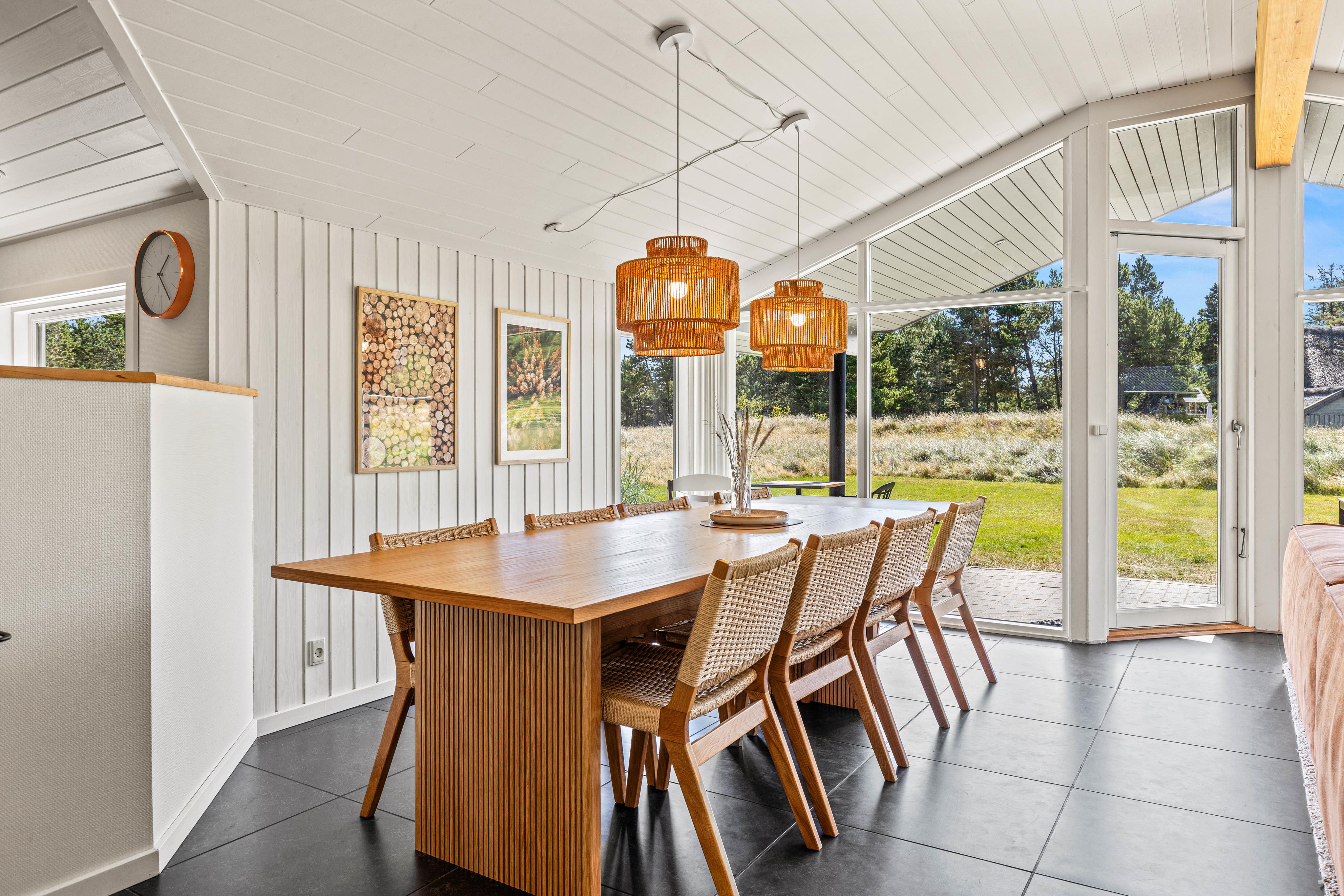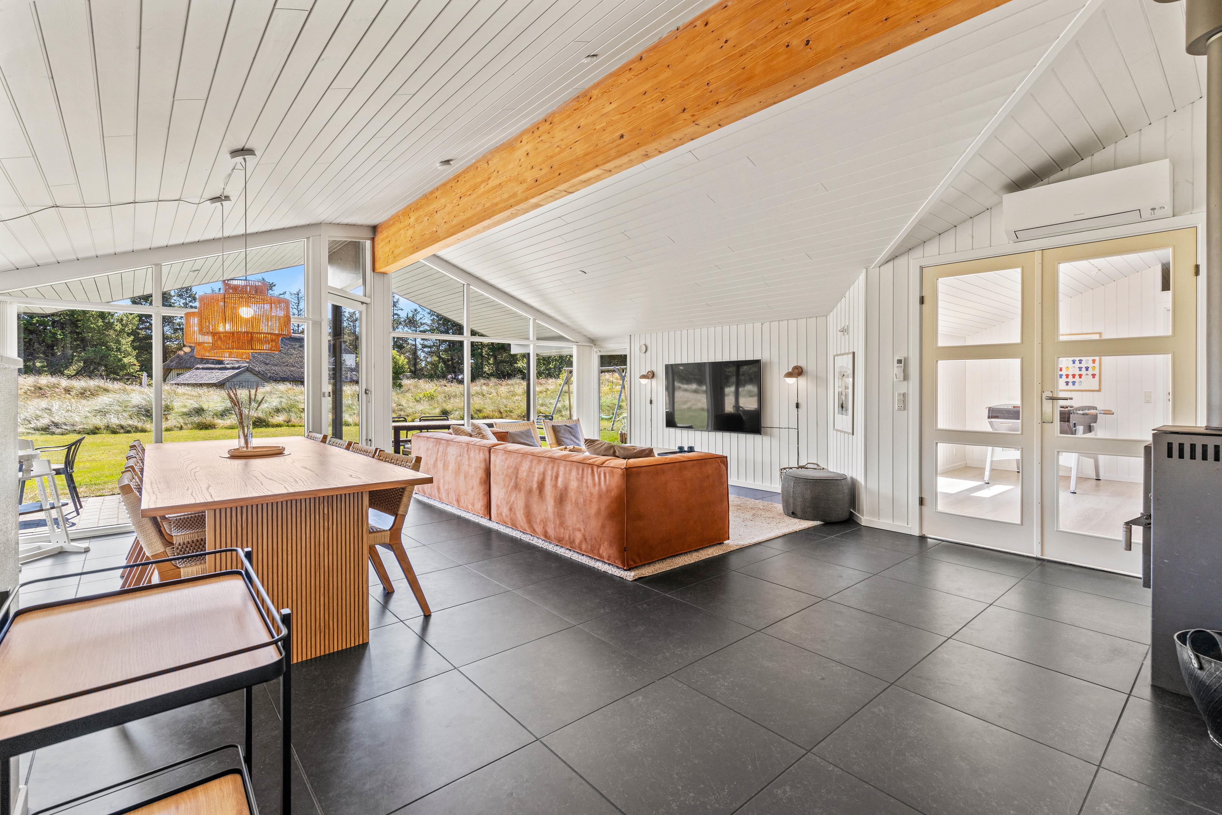 Søger I et ferieophold, hvor alle moderne bekvemmeligheder er tilgængelige, vil dette sommerhus i Blåvand tilfredsstille jeres ønsker. Feriehuset er udstyret med en brændeovn, der tilføjer hygge på kølige aftener, samt en luft til luft varmepumpe, der sikrer et behageligt indeklima. De fire soverum er fordelt med to dobbeltsenge og fire enkeltsenge, hvilket giver komfortabel soveplads til alle gæster. To badeværelser, det ene med gulvvarme, sikrer ingen kø i morgenstunden.