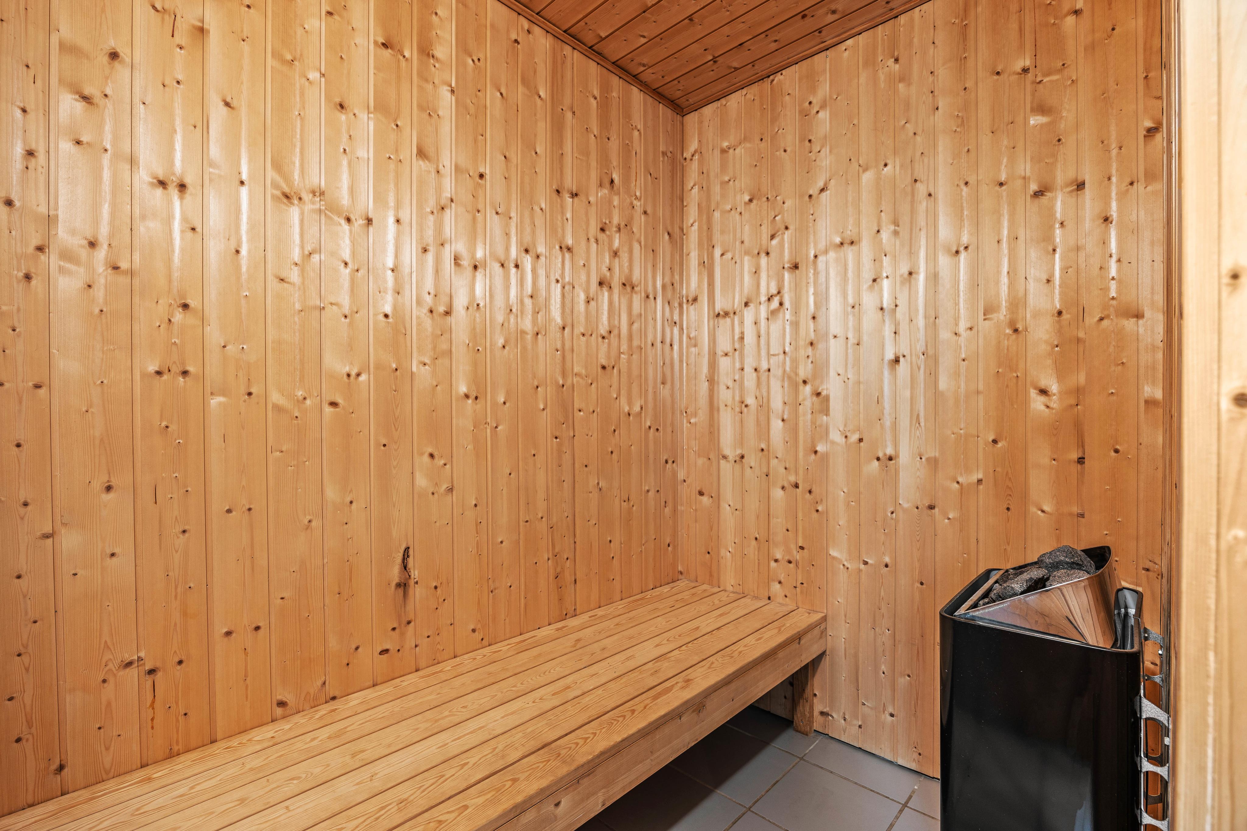 I det store badeværelse kan I desuden opleve dejlig wellness, idet det rummer både husets spa og sauna. Efter en dag fyldt med oplevelser ved stranden, der kun er ca. 1 km væk, står spaen og saunaen klar til at give jer afslapning på højeste niveau og varme jer igennem efter kolde gåture i det fri.