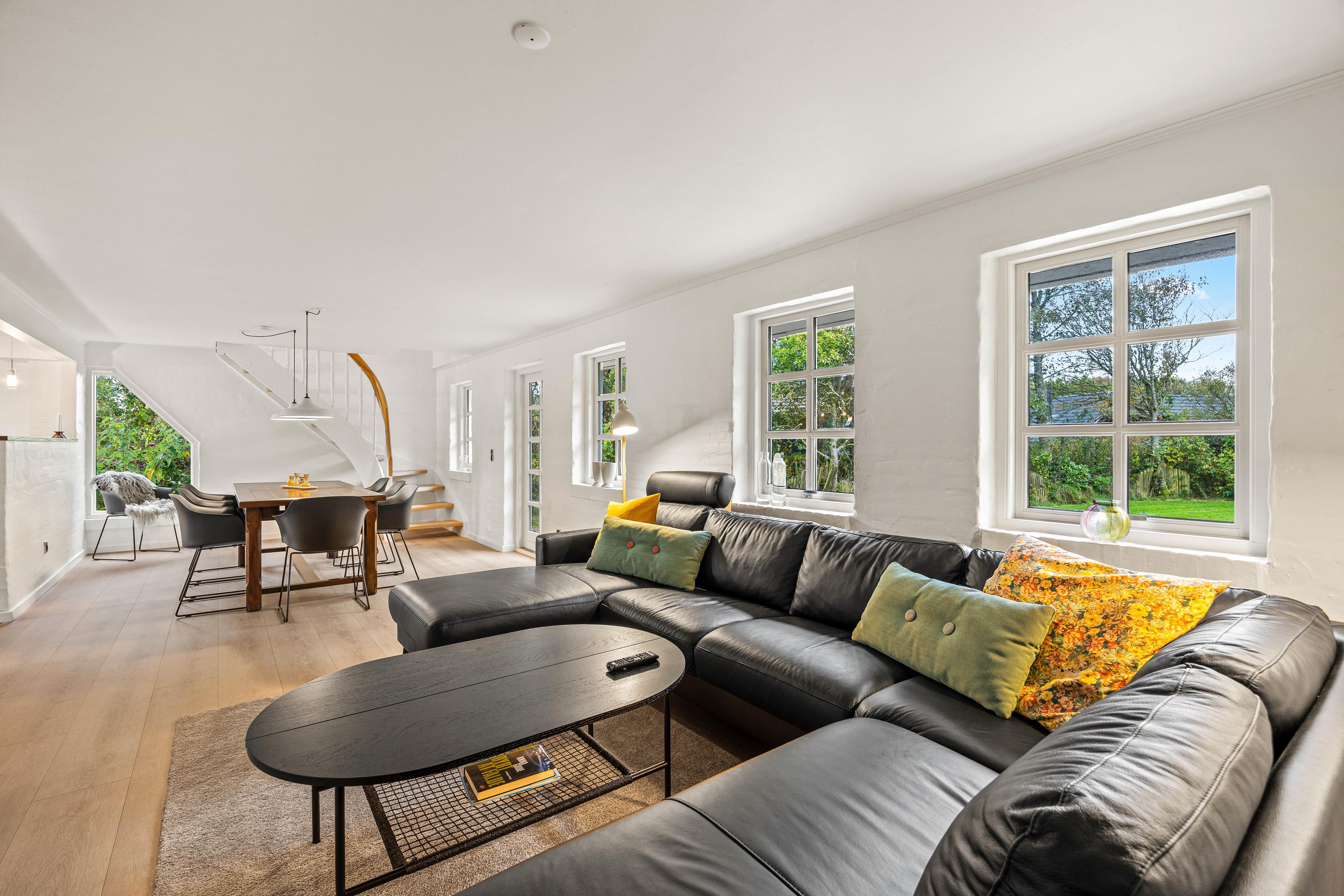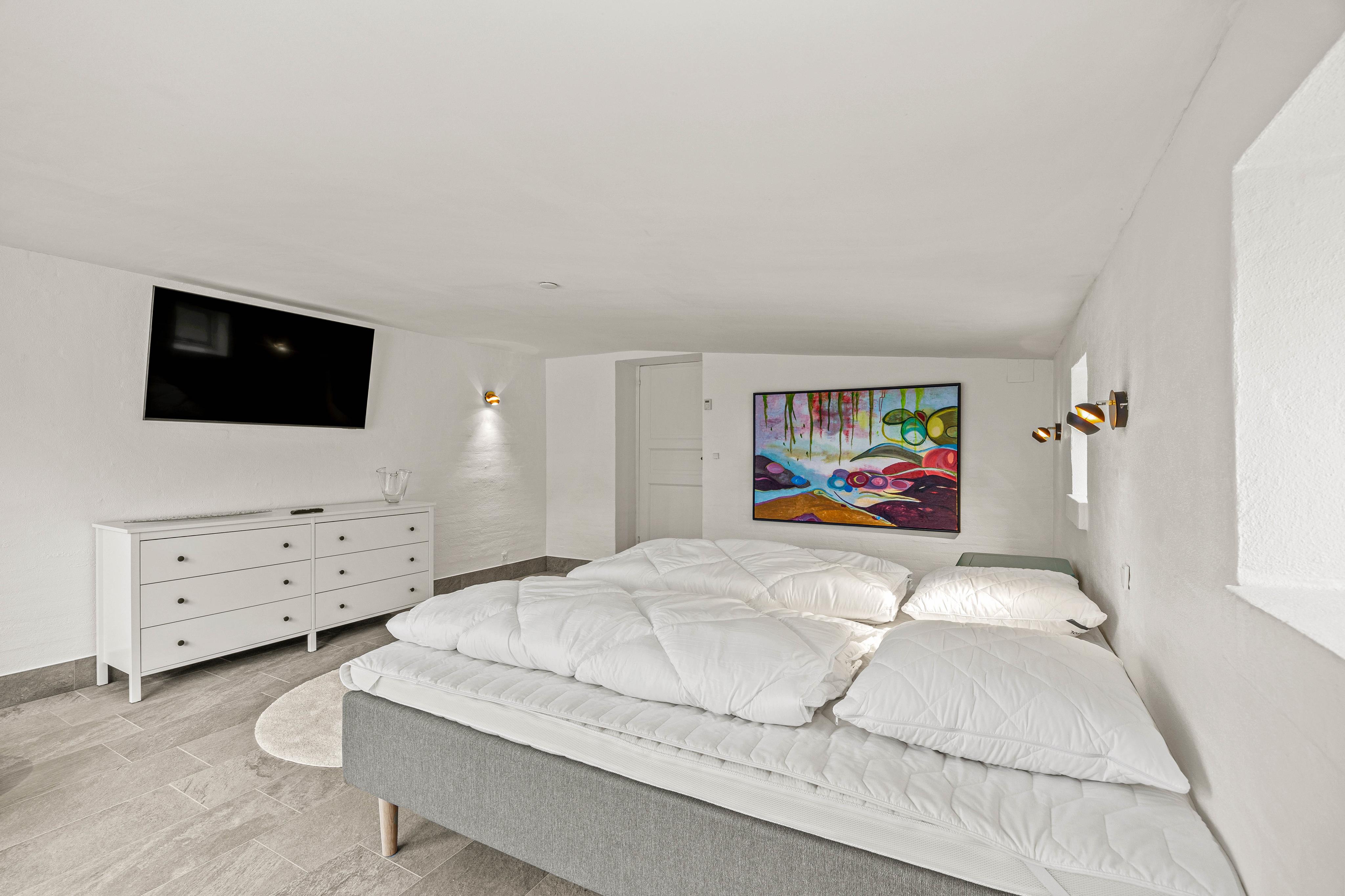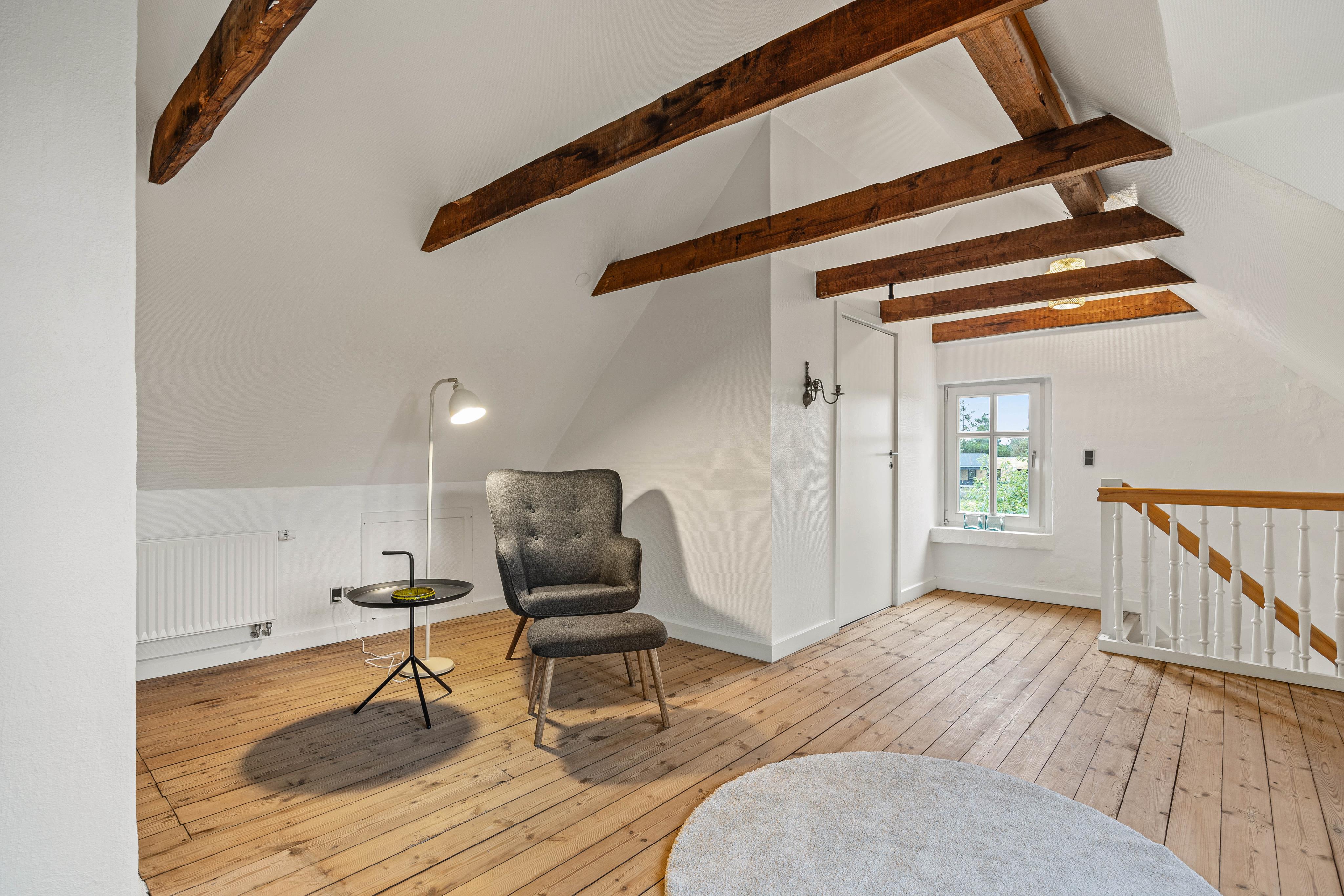 I stuen kan I slappe af over en god film eller med gode samtaler, og de 2 elegante badeværelser byder på gulvvarme til ekstra komfort. Når I er trætte efter spændende feriedage, venter jer 4 flotte, rummelige soveværelser med hver sin dobbeltseng, hvor I kan få ladet batterierne op til nye oplevelser. Et af soveværelserne ligger på 1. sal, som I når via den brugervenlige trappe, og som har fine, originale trægulve samt et gæstetoilet.