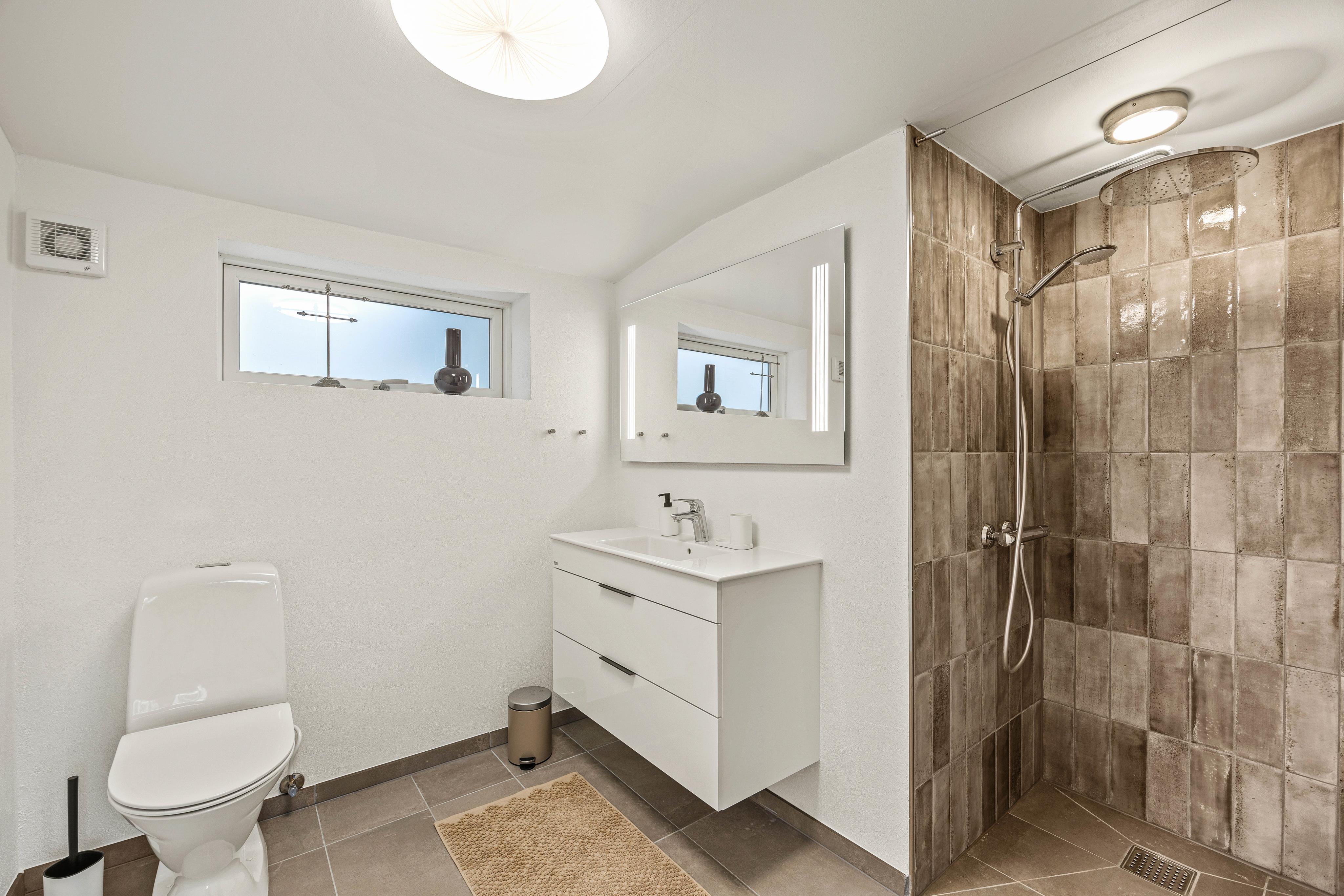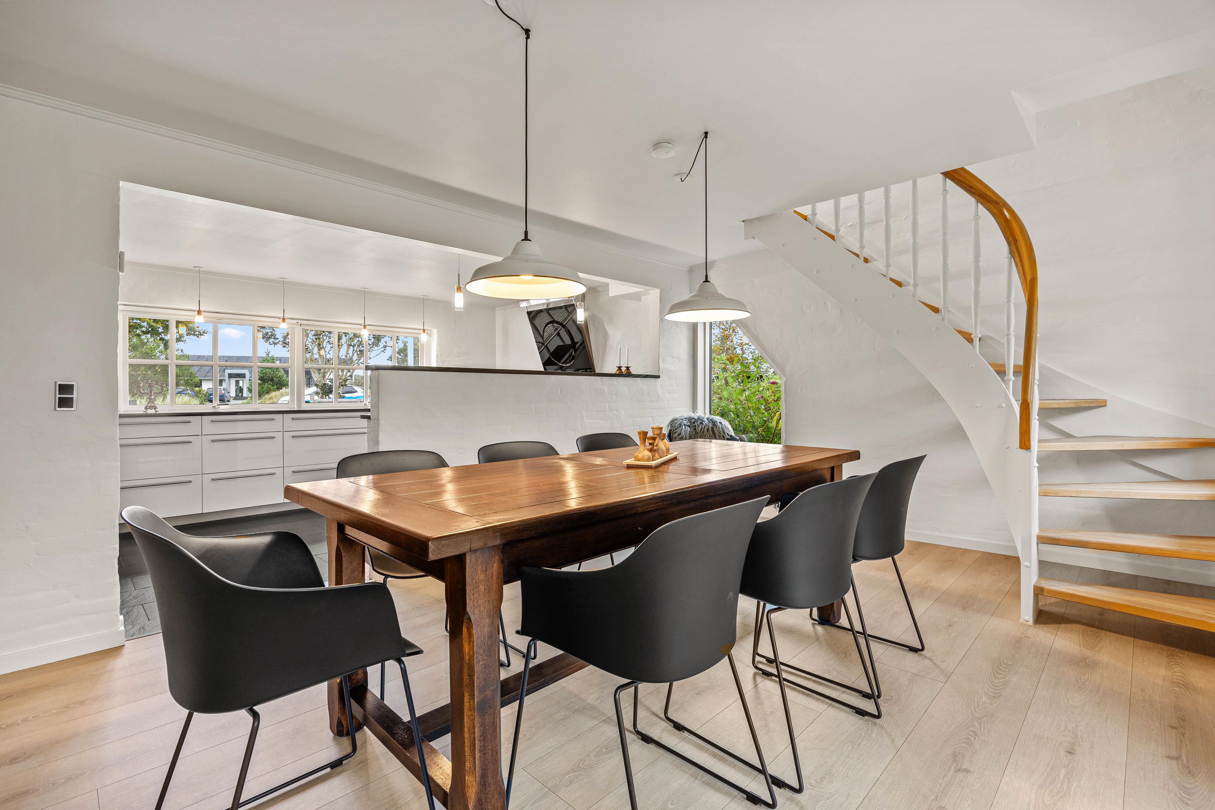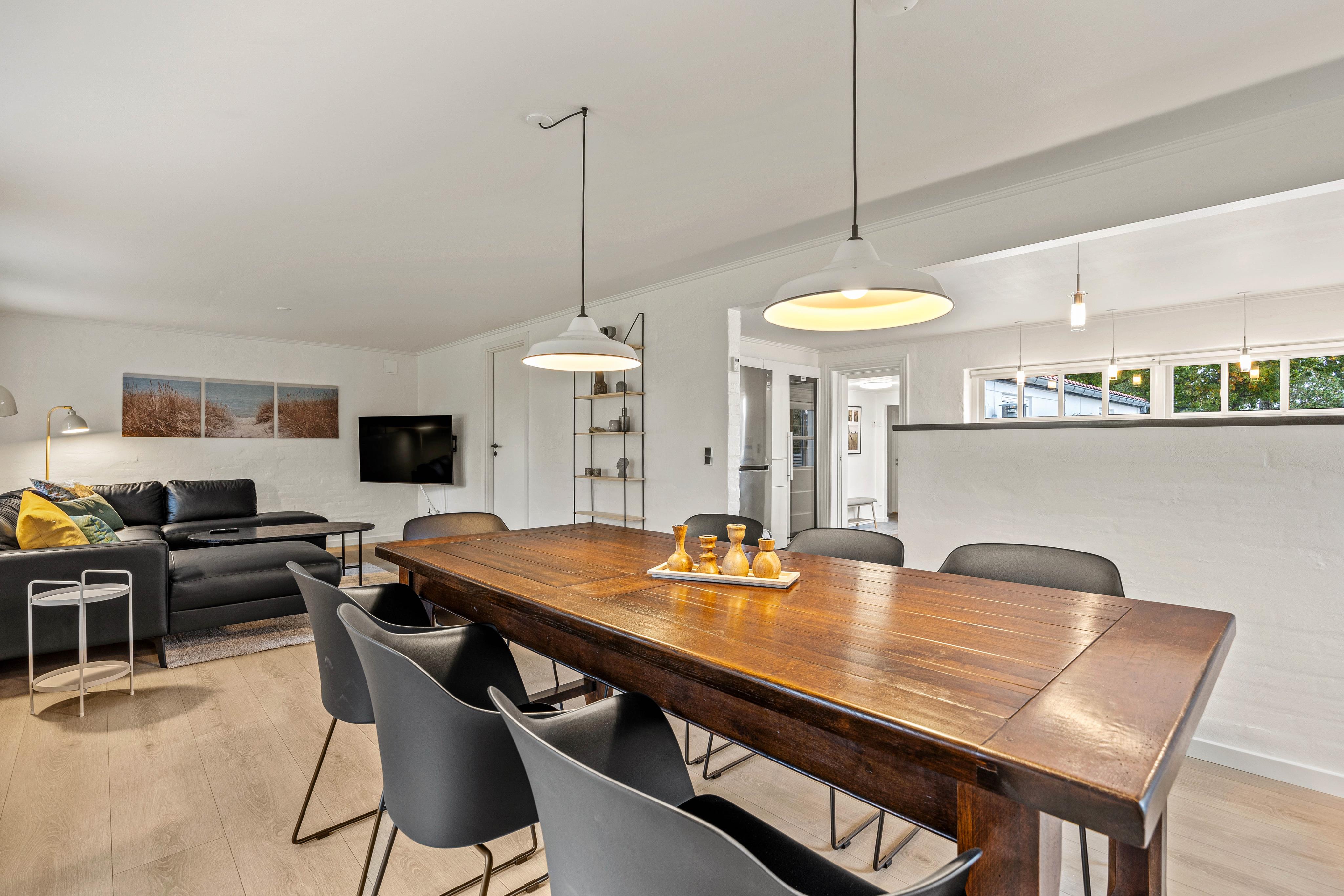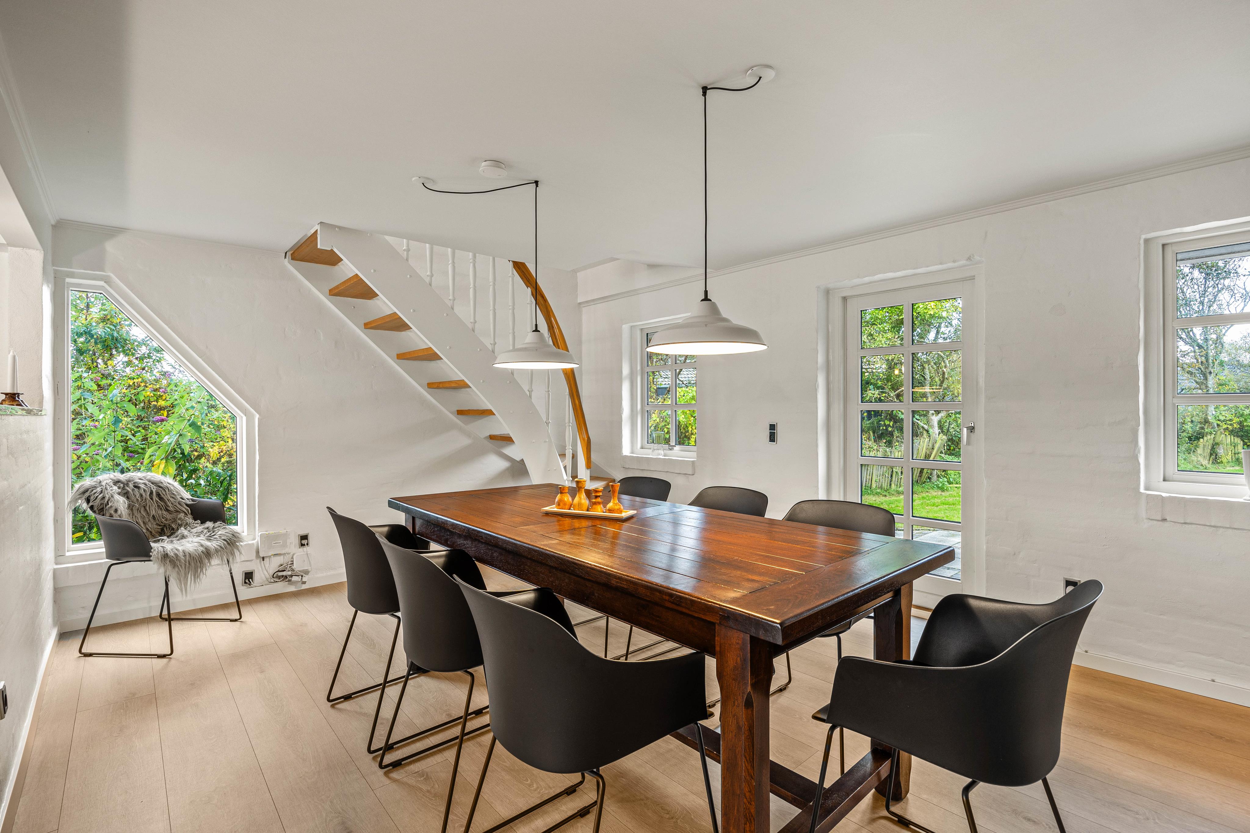 I stuen kan I slappe af over en god film eller med gode samtaler, og de 2 elegante badeværelser byder på gulvvarme til ekstra komfort. Når I er trætte efter spændende feriedage, venter jer 4 flotte, rummelige soveværelser med hver sin dobbeltseng, hvor I kan få ladet batterierne op til nye oplevelser. Et af soveværelserne ligger på 1. sal, som I når via den brugervenlige trappe, og som har fine, originale trægulve samt et gæstetoilet.