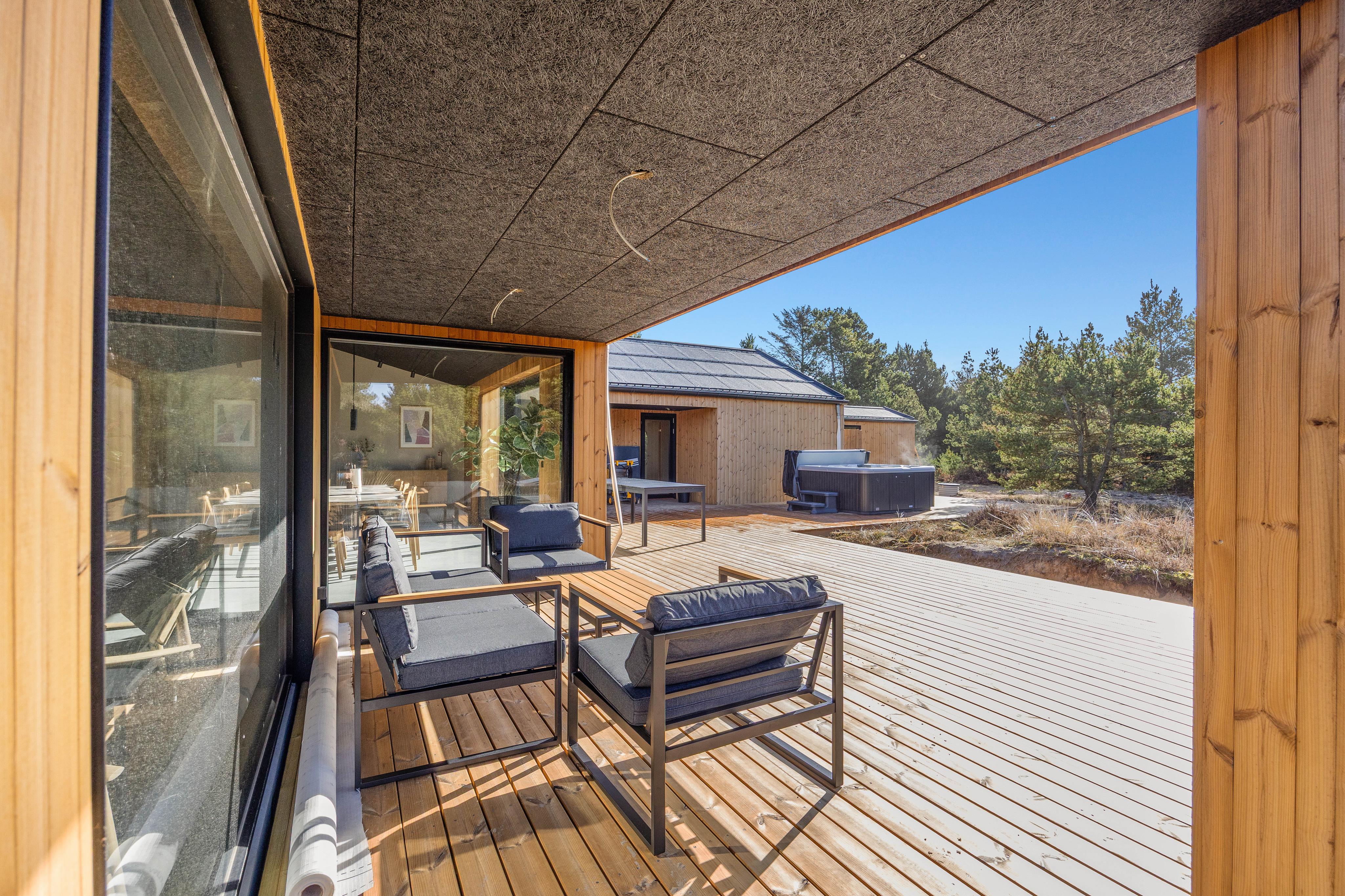 Den åbne terrasse med havemøbler indbyder til afslapning, mens den overdækkede terrasse er oplagt til hyggelige aftener udendørs. Nyd dagen med en lækker morgenmad på terrassen eller en aften med spil og samtaler ved solnedgang. Hvert hjørne af dette hus er indrettet med sans for detaljen og for at give jer en perfekt ferie.