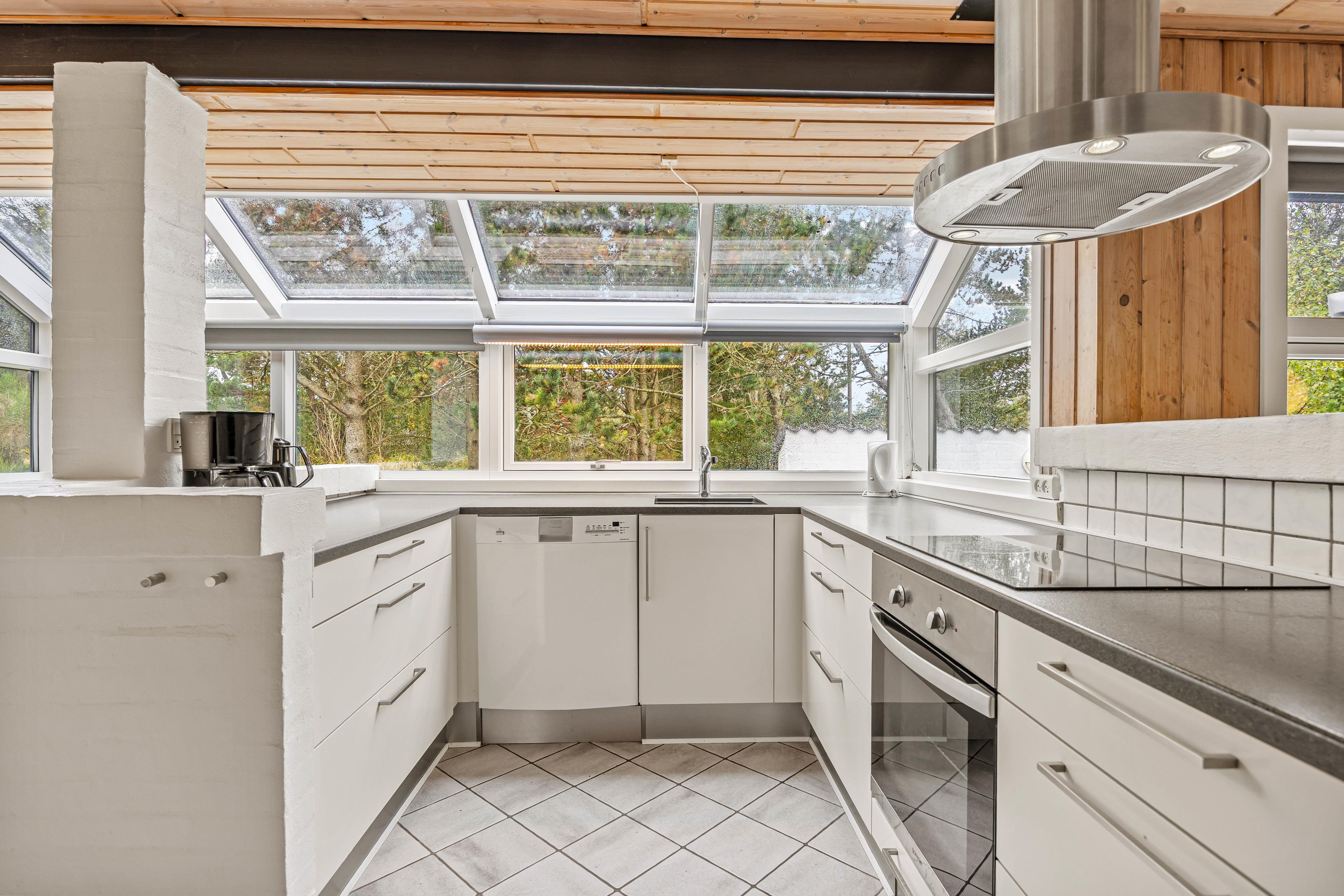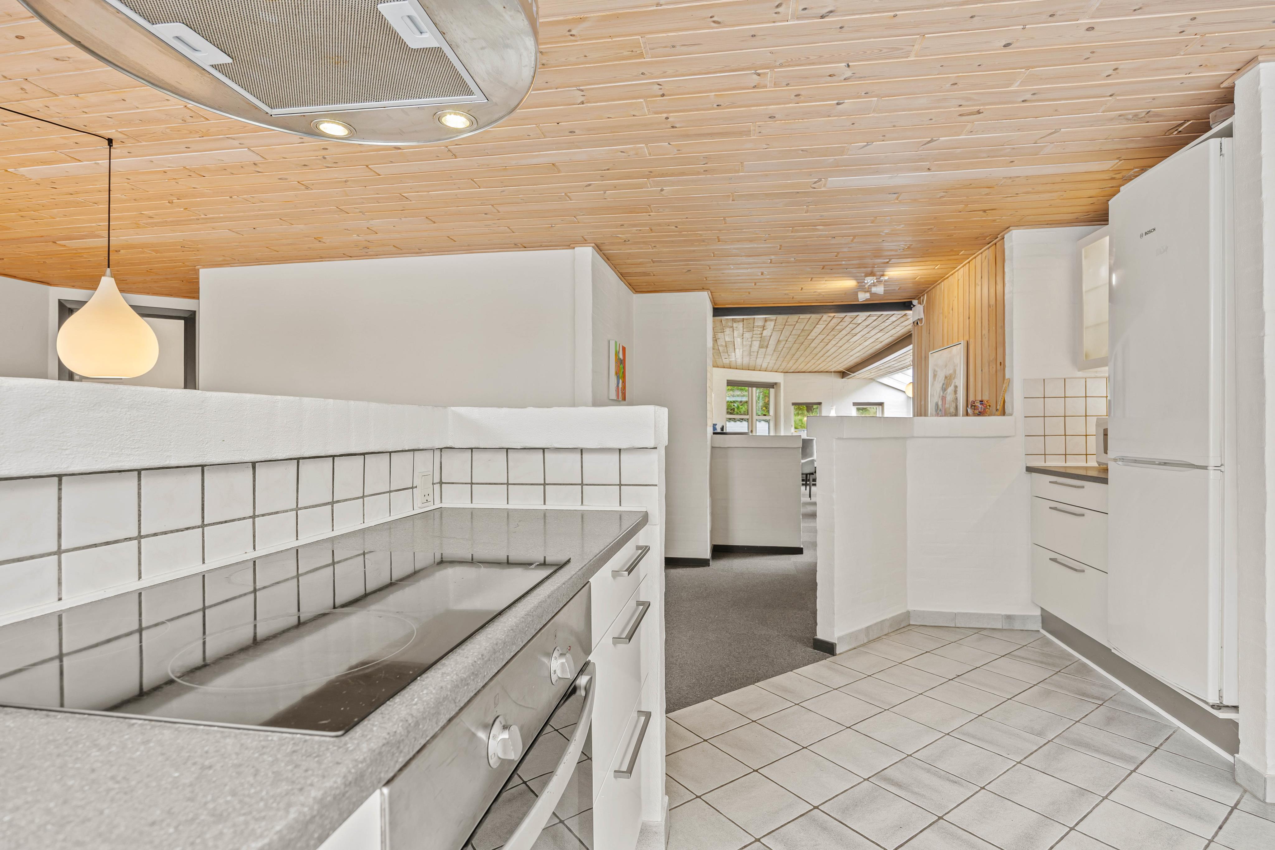 Husets moderne standard afspejles blandt andet i det veludstyrede køkken med opvaskemaskine, mikroovn og en separat 90 liters fryser, som gør jeres ophold mere ukompliceret og giver plads til større indkøb af forsyninger, som I kan klare kun 500 meter væk.