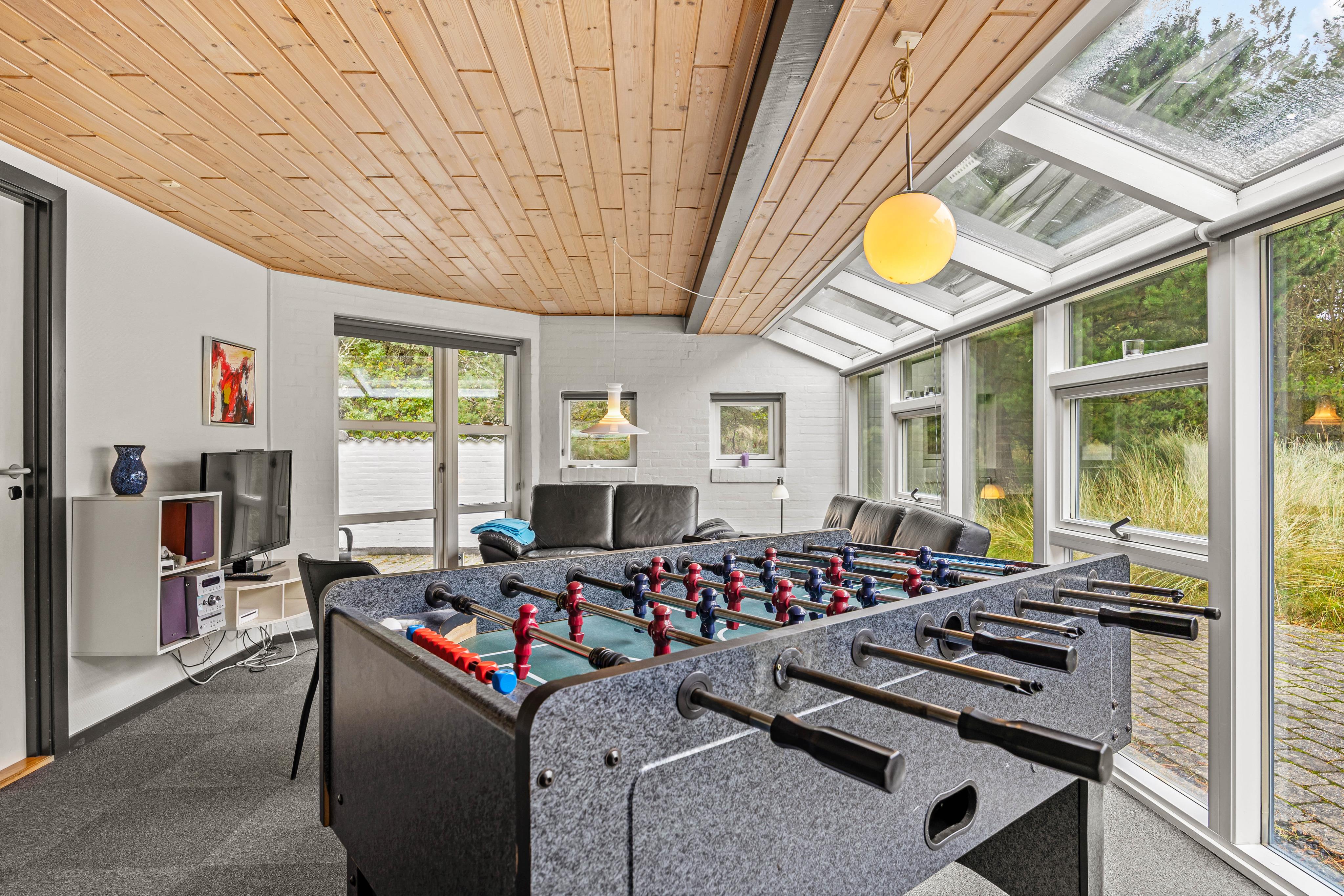 Sommerhuset i Blåvand er ikke kun et sted, hvor man kan slappe af, men er også perfekt beliggende til at opleve områdets naturskønhed. Kun 900 meter adskiller jer fra den smukke sandstrand, der indbyder til lange gåture og skønne badeoplevelser. På den åbne terrasse, der er udstyret med en gasgrill og komfortable havemøbler, kan I nyde den friske havbrise og afslutte dagen med et fælles måltid og et glas vin.