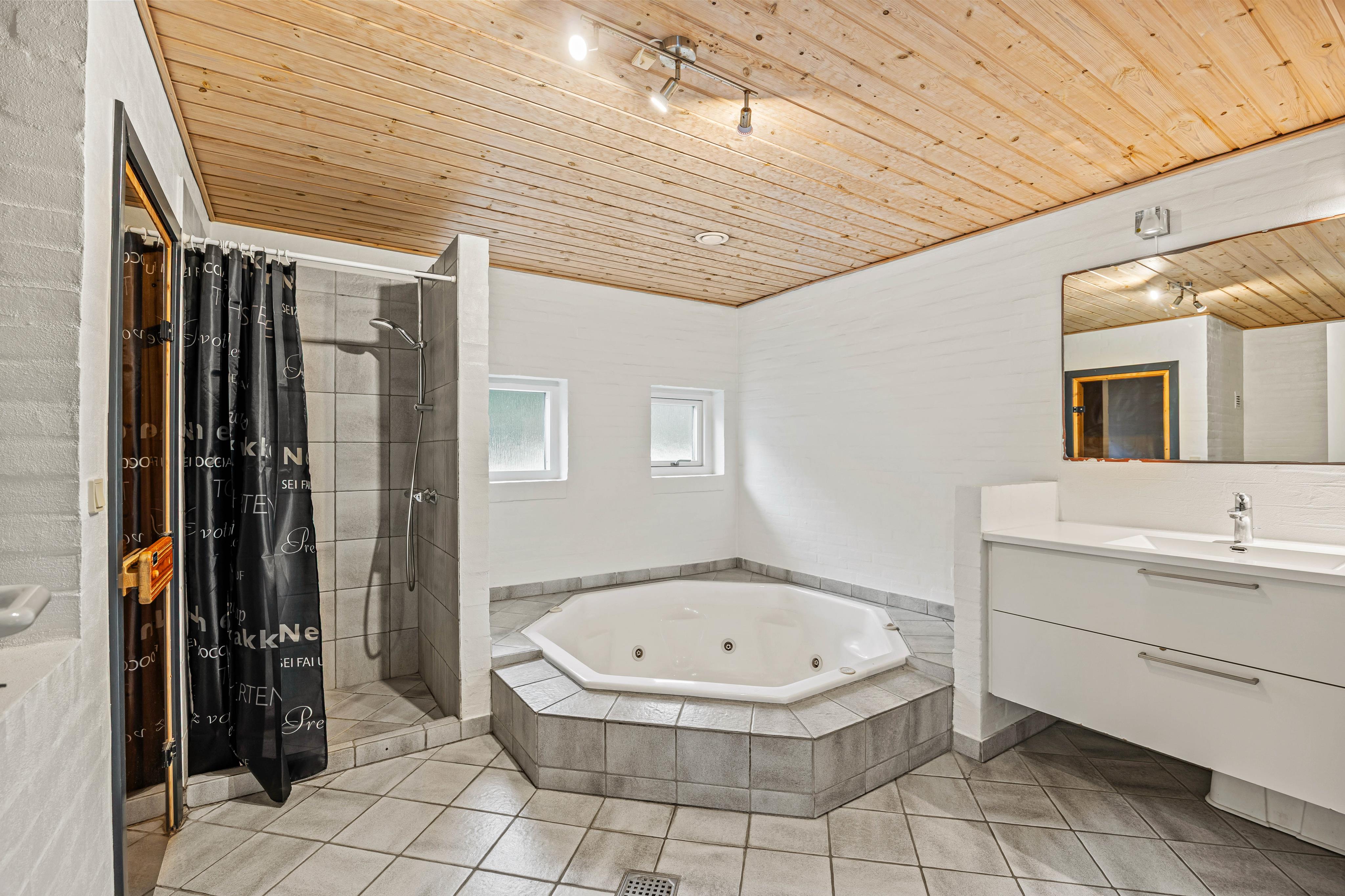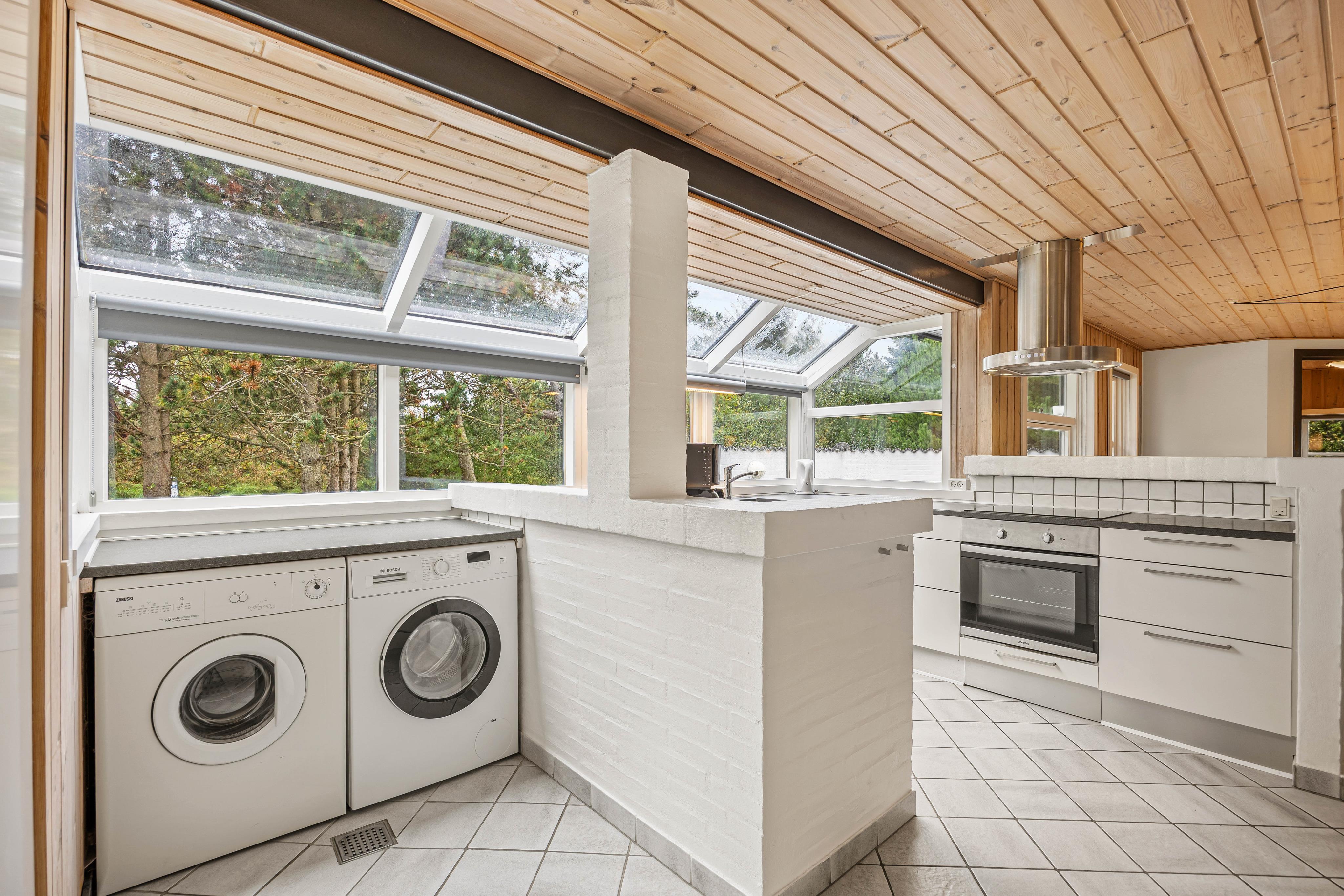 Der er også en vaskemaskine og en tørretumbler, så I ikke behøver at bekymre jer om noget med tøjvasken under jeres ferie. Et særligt plus bliver dog det udendørs spabad, der sammen med den udendørs sauna og udendørs bruser vil kunne give jer mange, afslappende timer udendørs. Oplev blandt andet Blåvands smukke nattehimmel siddende i spaen efter mørkets frembrud.