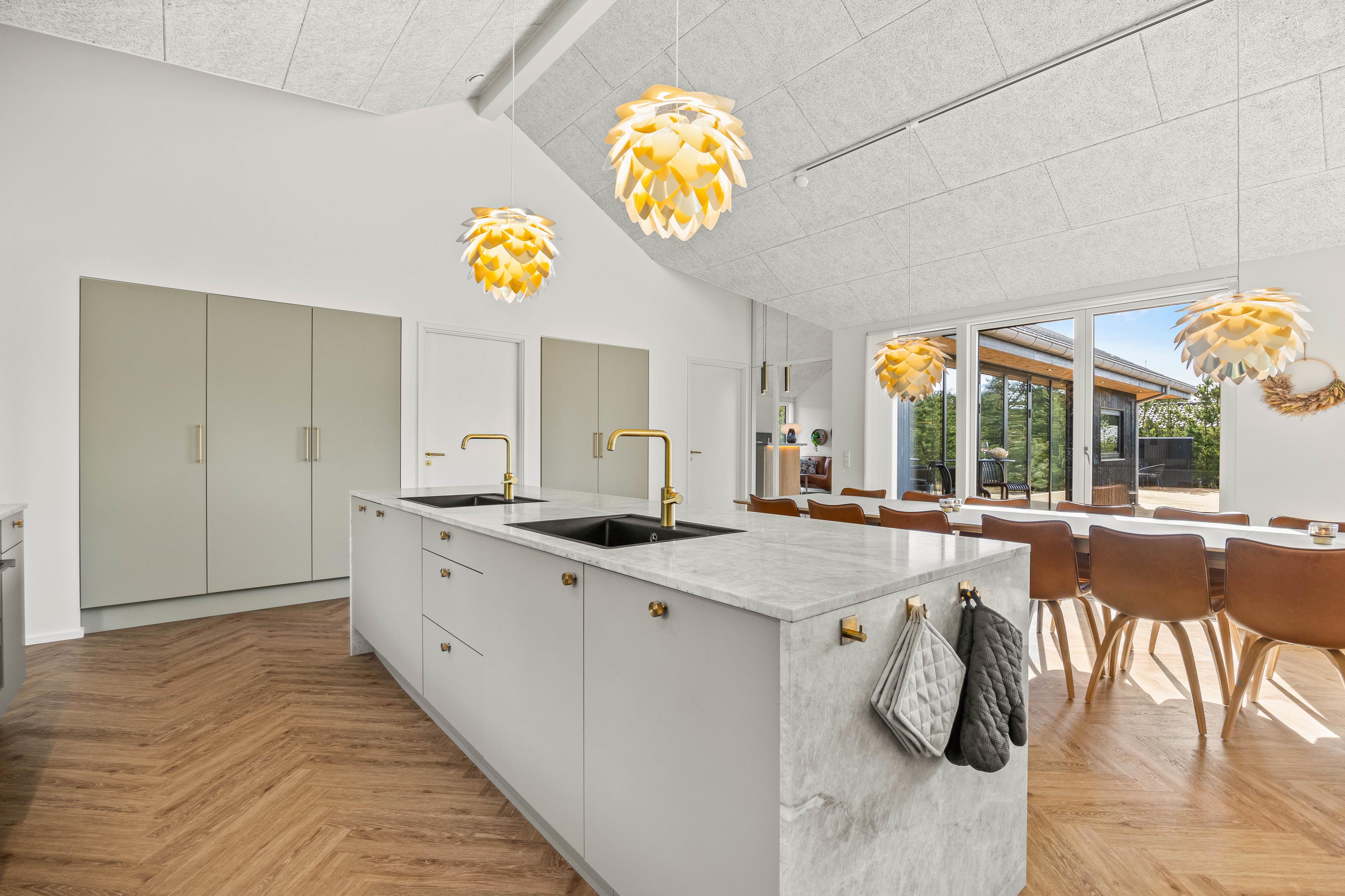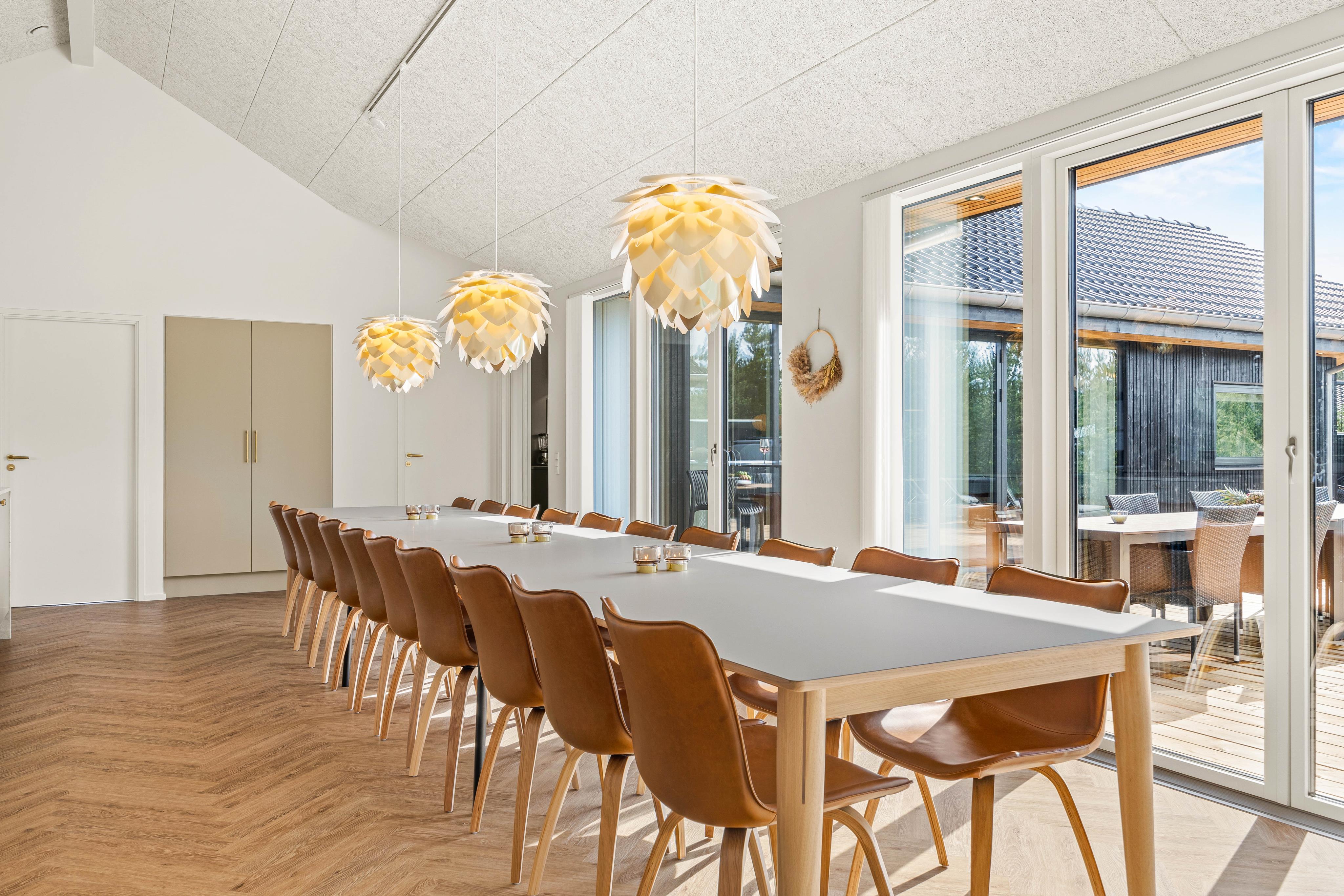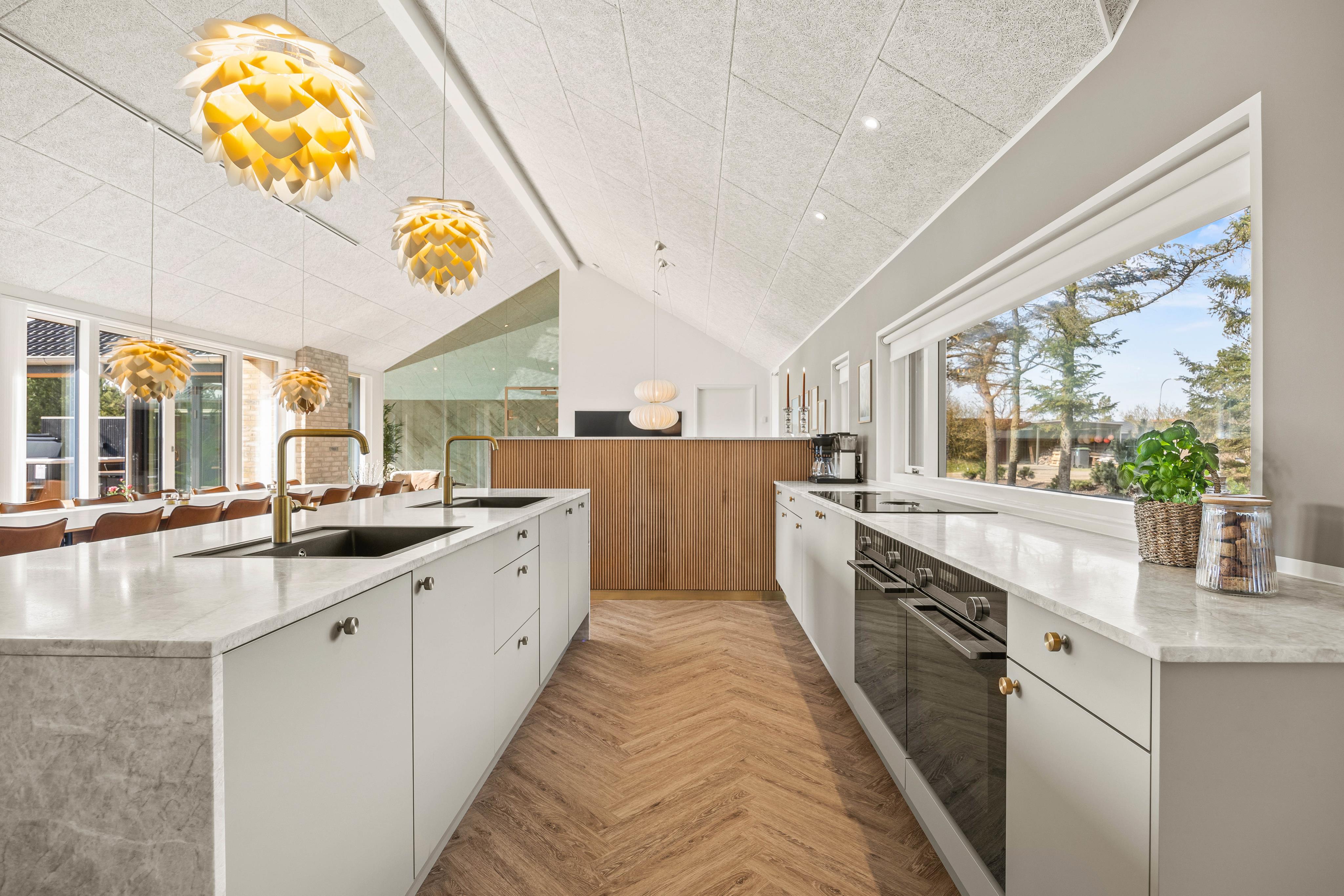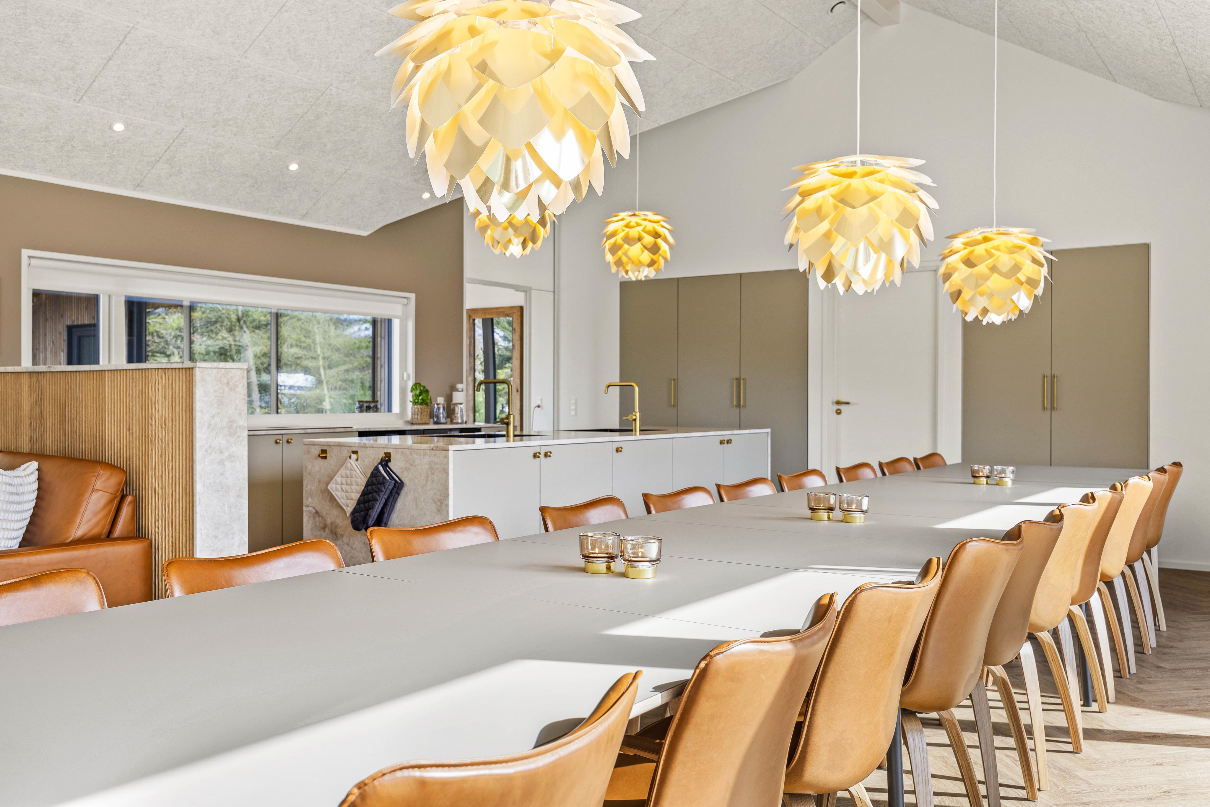 Det veludstyrede køkken med 2 opvaskemaskiner, 2 køleskabe og en separat fryser på 350 liter ligger i åben forbindelse med alrum og stue, så feriekokken kan følge med i aktiviteterne, og når maden er færdig, kan I samles omkring langbordet og hygge jer og udveksle ferieoplevelser, hvorefter sofahjørnet kalder til afslapning. Måske skal I, før dagen slutter, lige have en aften-svømmetur i den flotte udendørs swimmingpool og så have en drink i udebaren - eller hvad med en lille slag pool i aktivitetsrummet? Swimmingpoolen er opvarmet og kan benyttes hele året rundt, så det er bare at hoppe i.