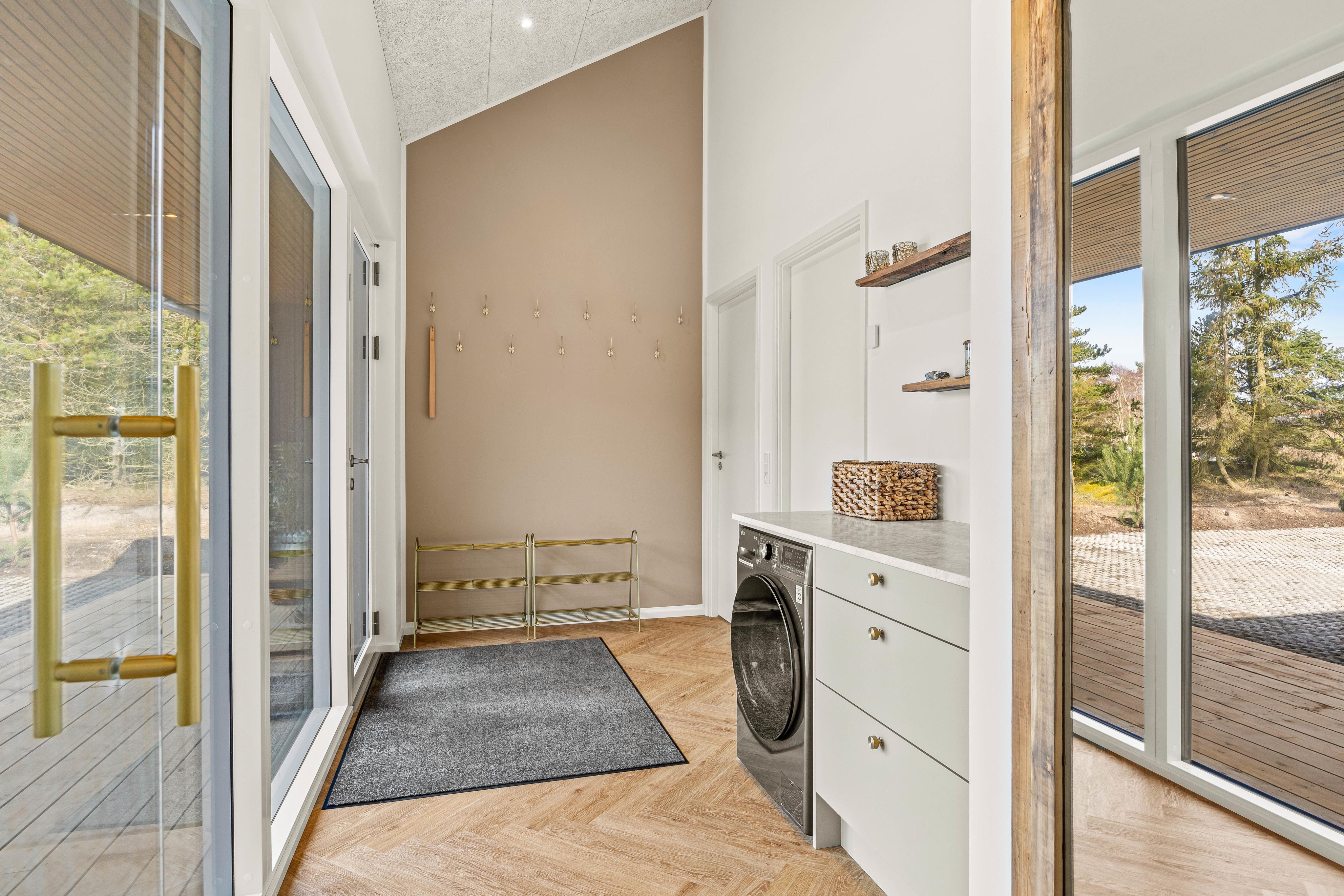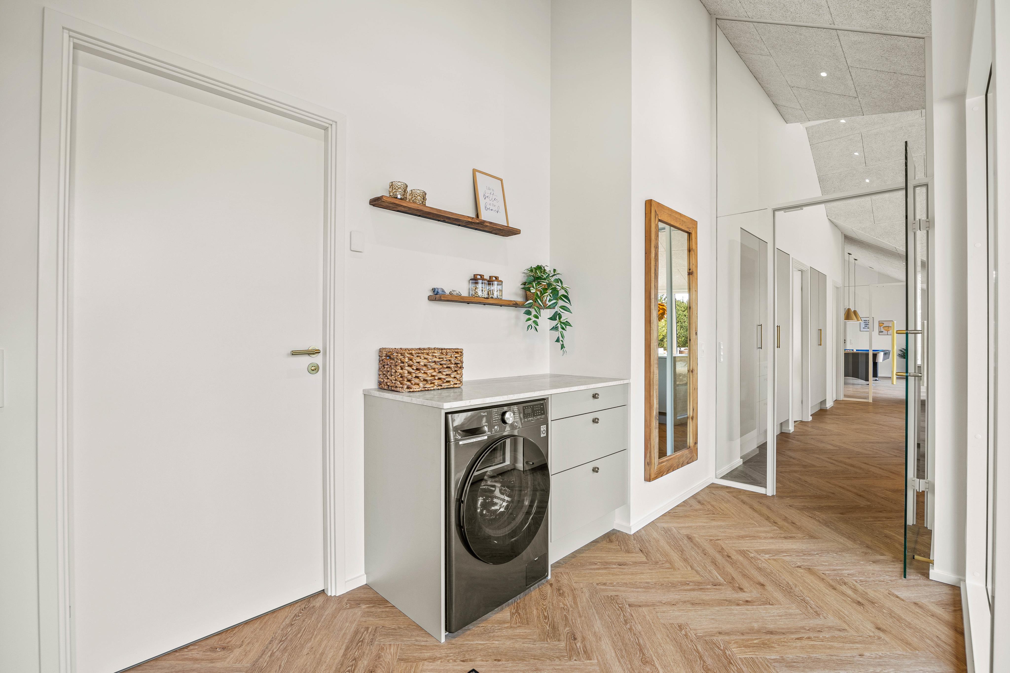 Der er også både vaskemaskine og tørretumbler i huset, så I kan få vasket feriegarderoben undervejs, og sommerhuset har en moderne luft-vand-varmepumpe, der forsyner hele huset med energi på en effektiv og miljøvenlig måde.