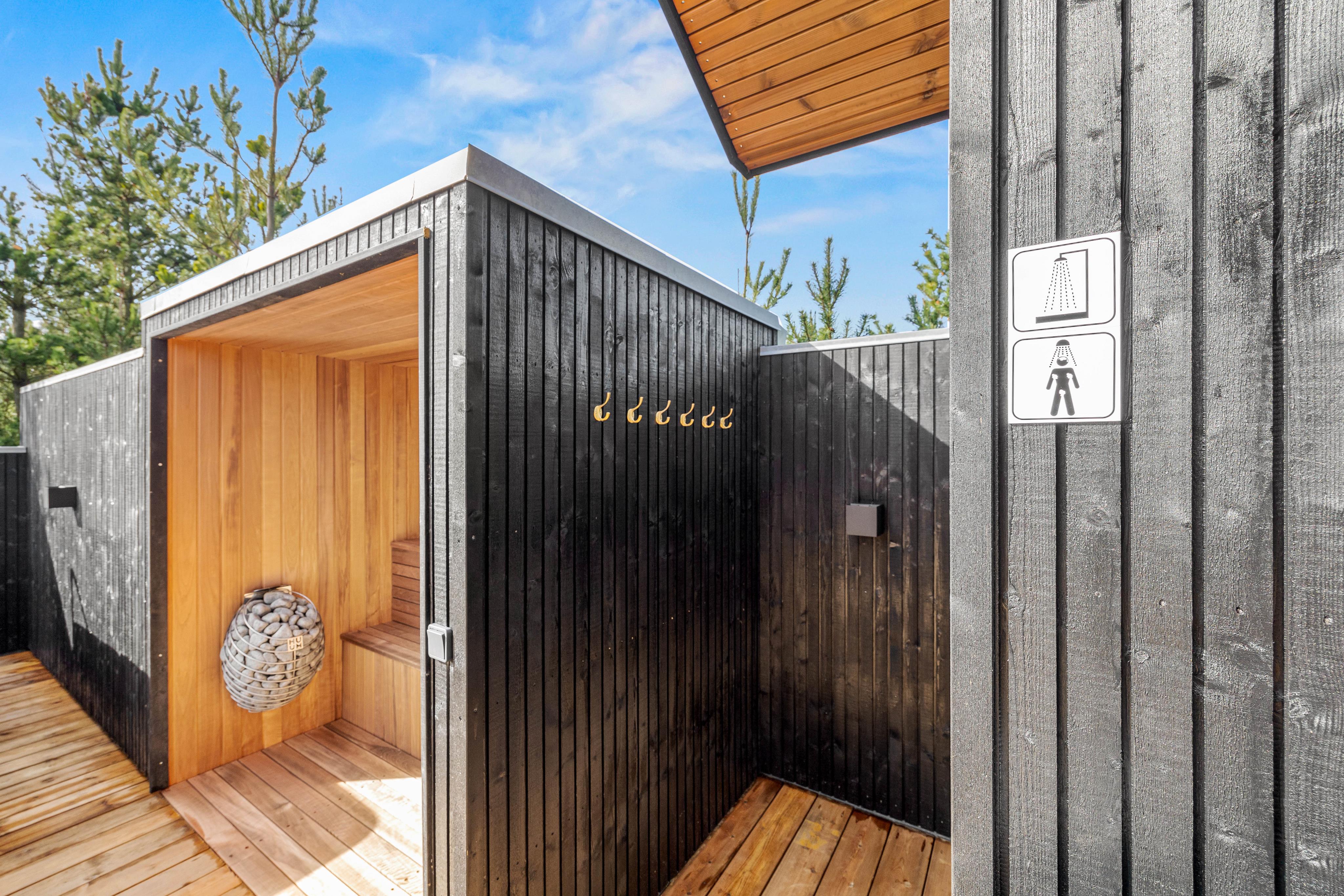 Efter en aktiv dag på stranden, der ligger kun knap 1,5 km væk, indbyder den åbne og overdækkede terrasse til hyggelige stunder og ultimative velværeoplevelser sammen. Svøm et par længder i poolen og få god motion, bliv masseret effektivt igennem af dyserne i det udendørs spabad, tag en forfriskende skylle under udebruseren, som I kan bruge hele året, eller få den indre varme igen i den udendørs sauna efter en god gåtur i den friske, vestjyske vind på Blåvands smukke strande. Det er optimal pleje af krop og sjæl.