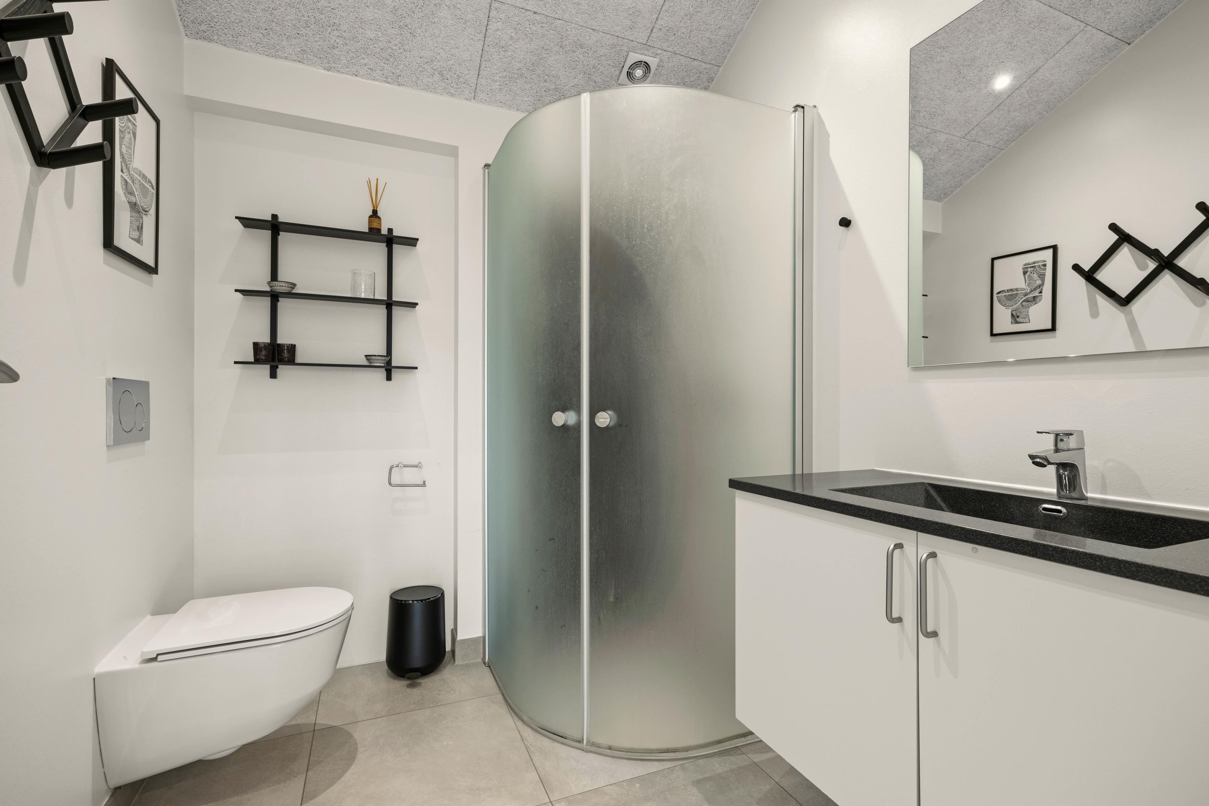 Kronen på dette velvære-værk er et rummeligt inden- og udendørsområde med spabad og udendørs bruser, som forkæler jer efter en eventyrlig dag i naturen. Her kan I komme helt ned i gear og få blødt kroppen op, mens I glemmer alt om hverdagens trummerum.