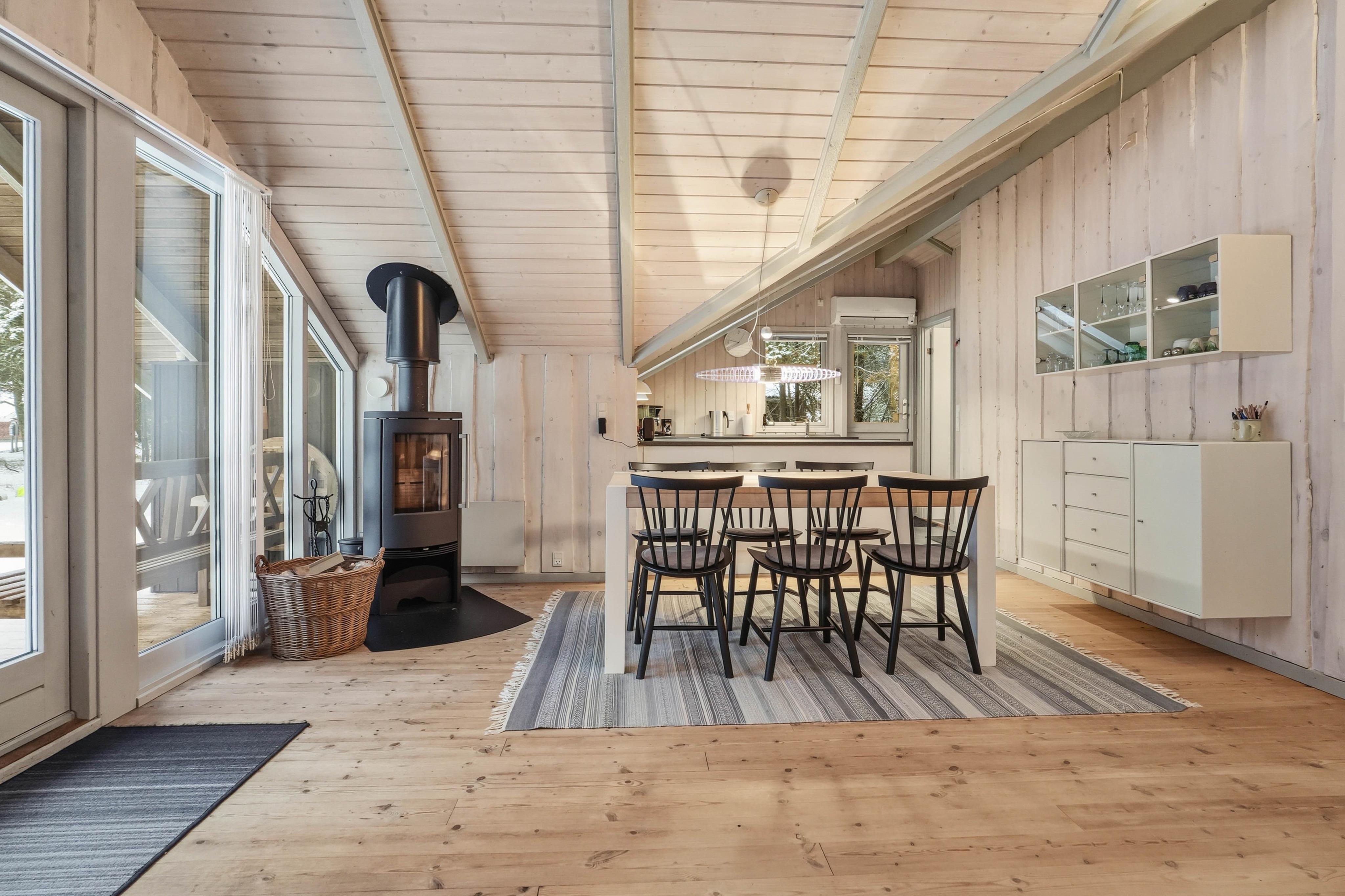Huset blev renoveret i 2025, og indenfor kan I hygge jer i den kombinerede stue og køkken/alrum med en spændende film på fladskærmen, evt. via Chromecasten, eller et spil kort hen over sofabordet, mens I laver god mad til hinanden. Brændeovnen varmer huset op og spreder god stemning på kolde dage, i kombination med den effektive varmepumpe.