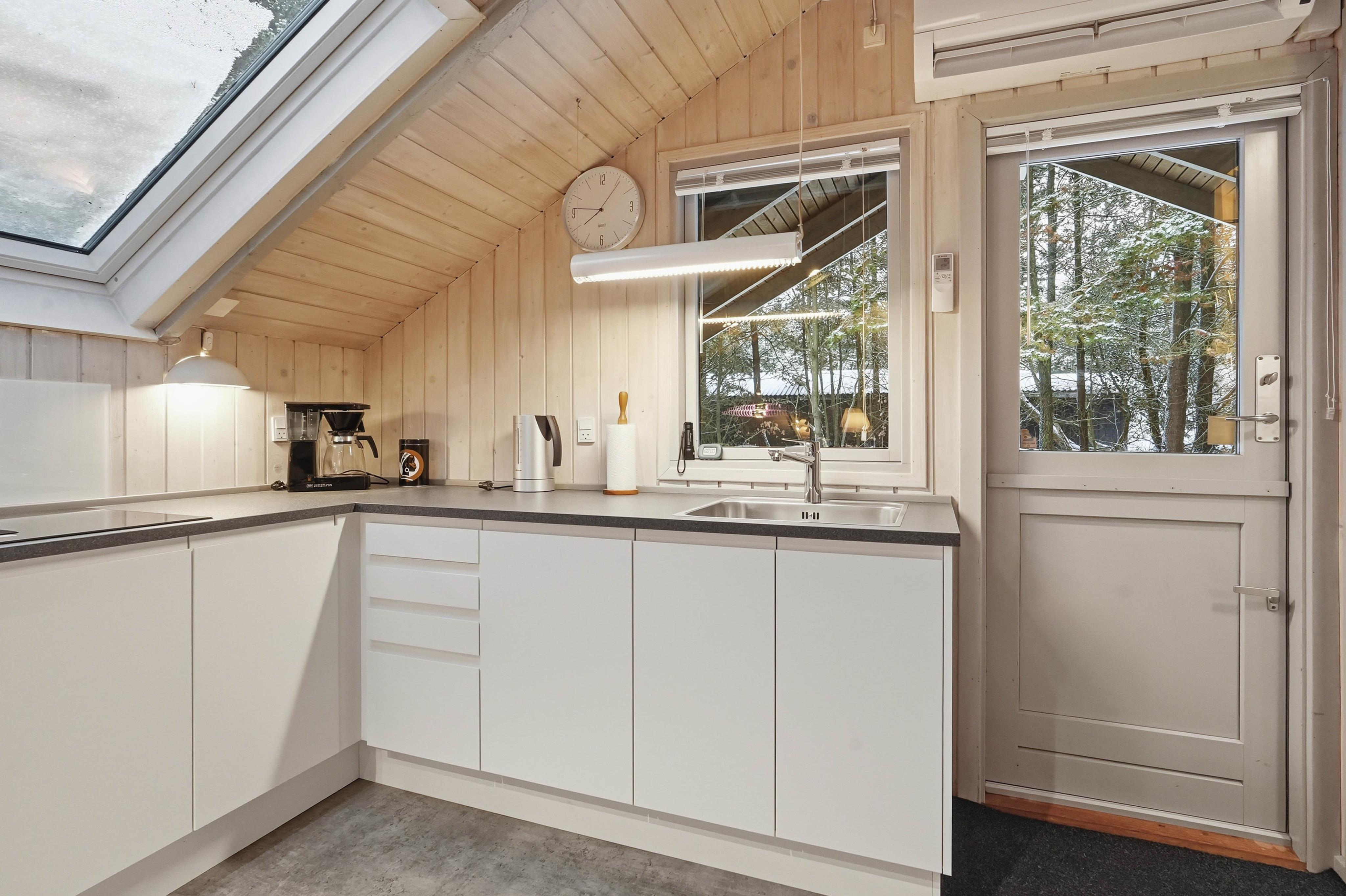 Husets nyrenoverede køkken er udstyret med opvaskemaskine og induktionskomfur, så I kan udleve jeres kokkedrømme, og skulle I få brug for lidt ekstra plads til køling af madvarerne, finder I et ekstra køleskab i skuret. Den integrerede frostboks i husets køleskab rummer ca. 15 liter.