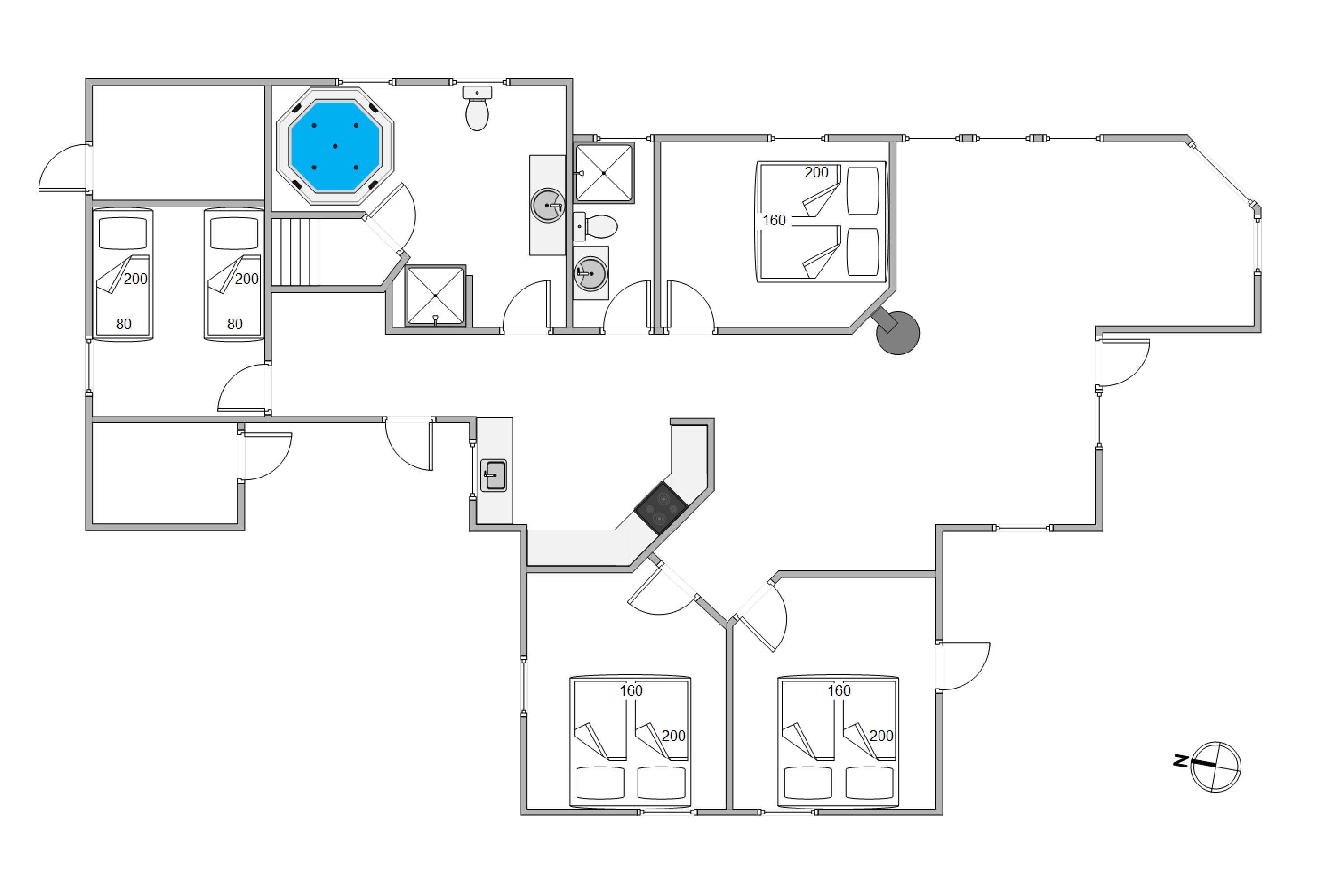 Feriehuset er beliggende på en dejlig stor grund. Det er ideelt for familier med børn. Der er en gynge, et mål og en mulighed for at hoppe. Stuen har et lille fjernsyn og en DVD-afspiller. Der er tilstrækkelige siddepladser til rådighed. I spiseområdet er der et stort bord, hvor hele familien kan sidde. 3 soveværelser er udstyret med dobbeltsenge, og et soveværelse er med 2 enkeltsenge. I dette værelse er der også et fjernsyn. Der er 2 badeværelser, et større med spabad og et lille med WC og håndvask. Begge badeværelser har brusere. Køkkenet er godt udstyret. Huset har opvaskemaskine, samt en vaskemaskine og en tørretumbler i et andet rum. Terrassen er delvist afskærmet. Der er en grill (kul).