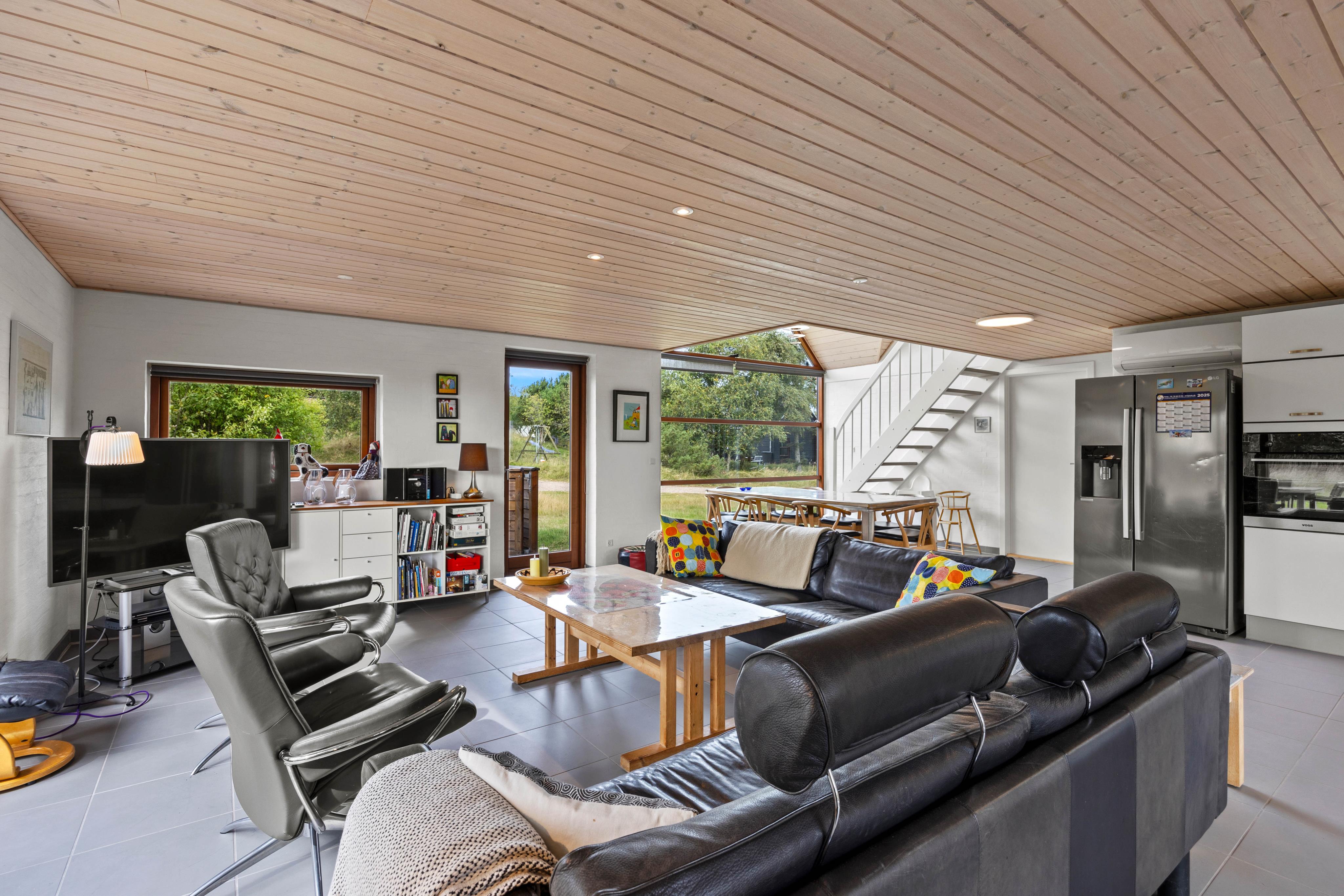 Naturgrunden og terrasserne er et stort aktiv for sommerhuset. Her finder I både læ, sol og små hyggekroge, hvor I kan sidde med en bog, nyde kaffen eller tænde op i grillen. Der er havemøbler, gynge til børnene og god plads til afslapning. I udestuen kan I nyde "udelivet" i læ – selv når vejret ikke helt er med jer.