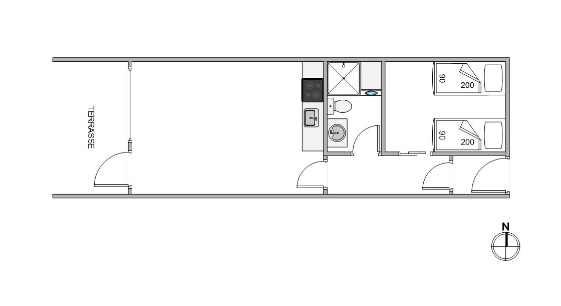 Når I skal slappe af og samle ny energi, kan I søge mod soveværelset, der er indrettet med 2 stk. 90x200 cm enkeltsenge.