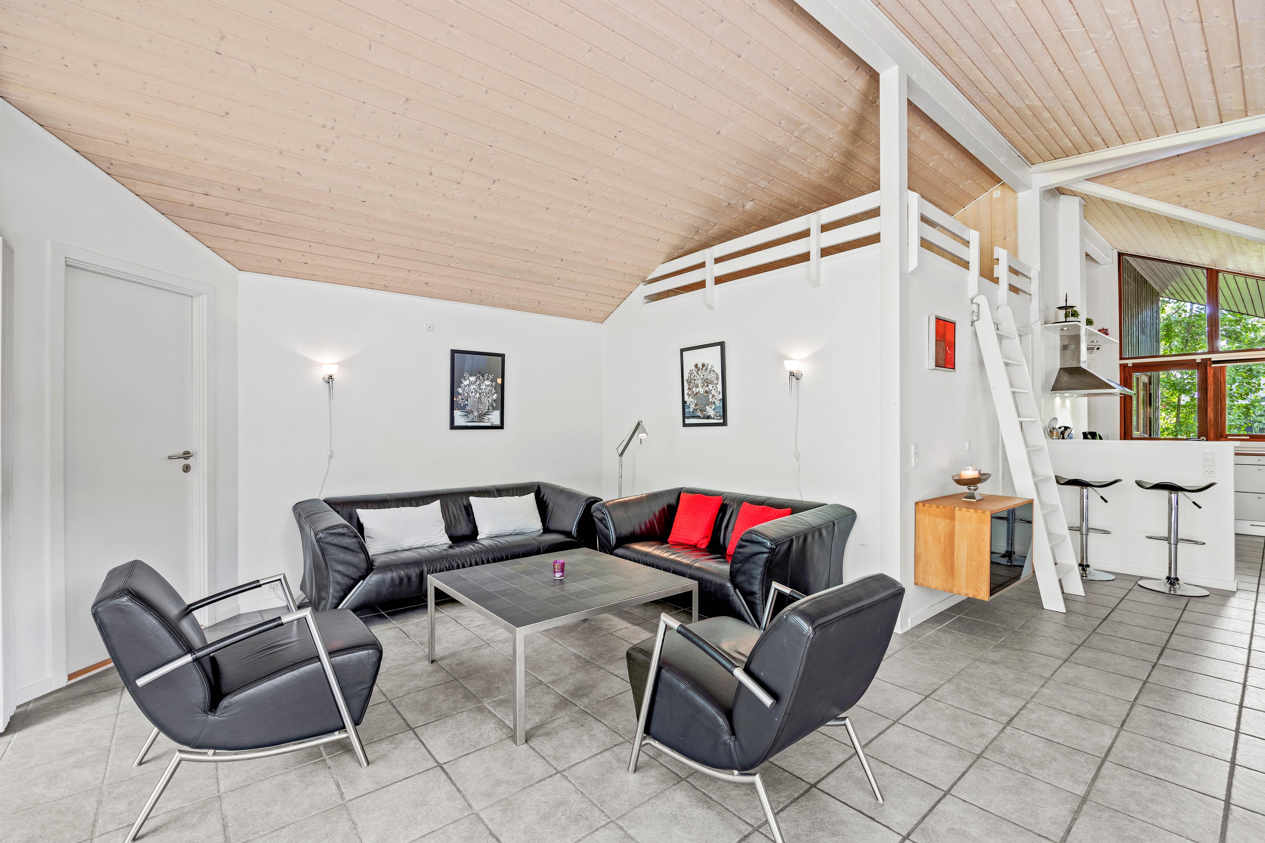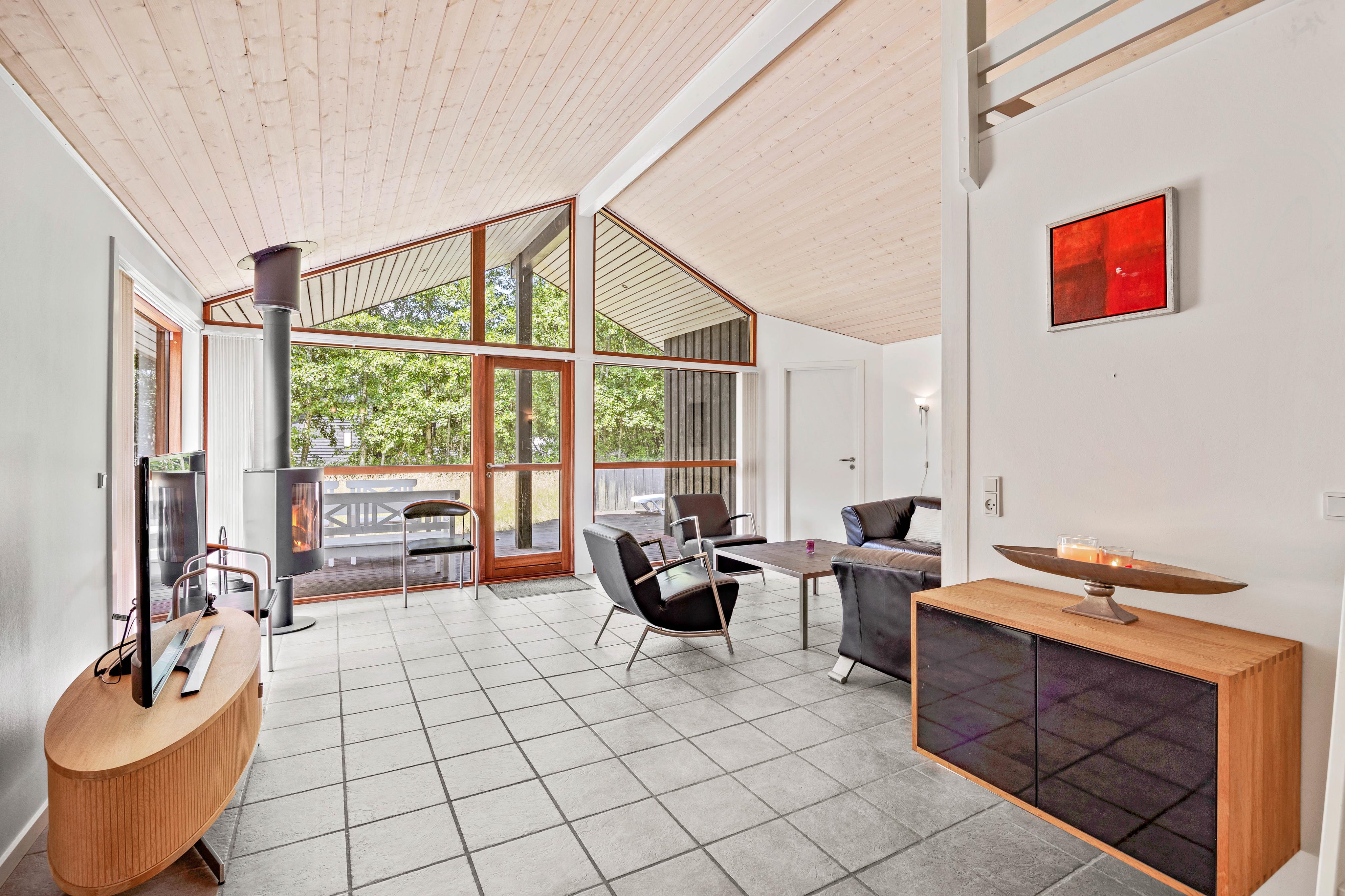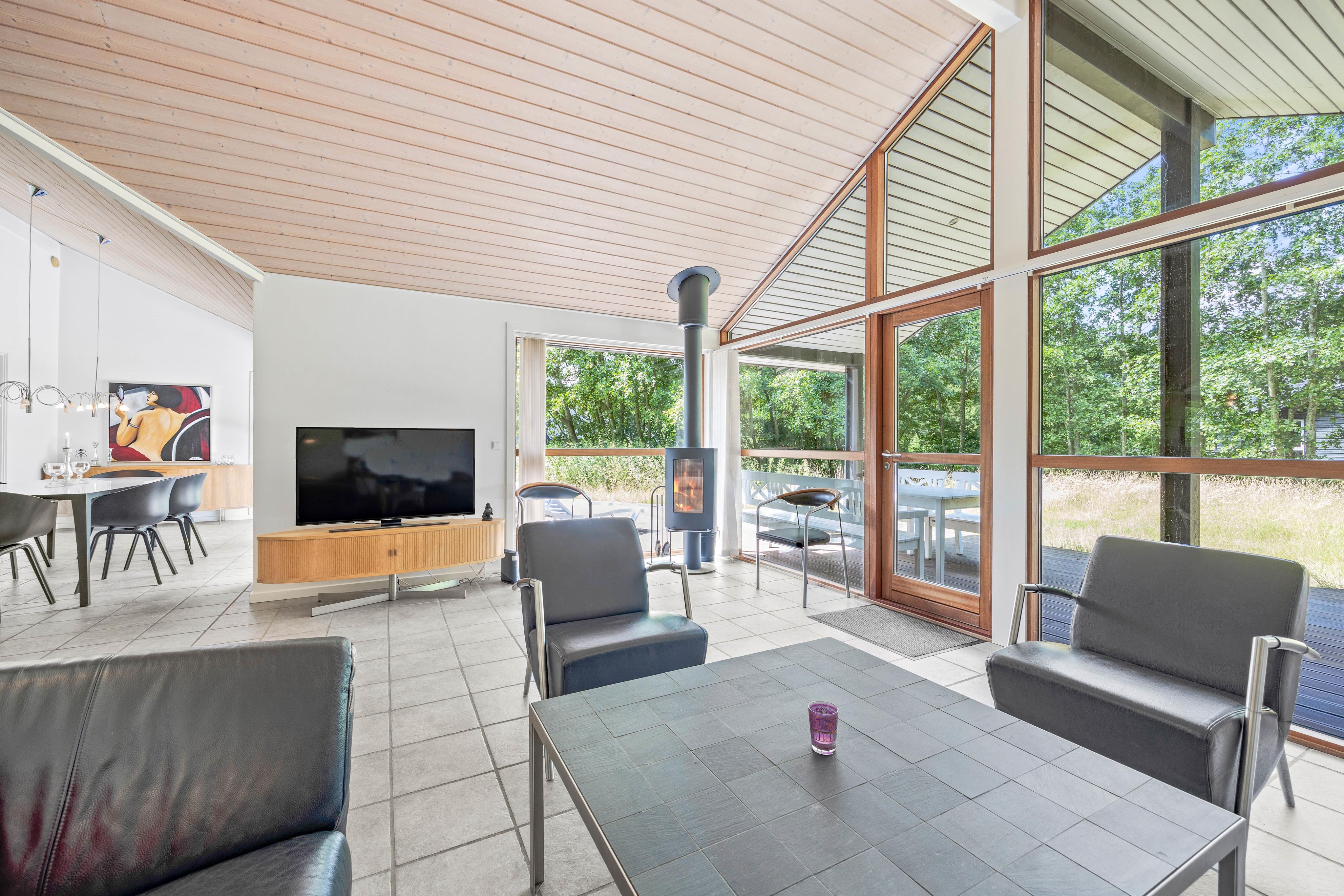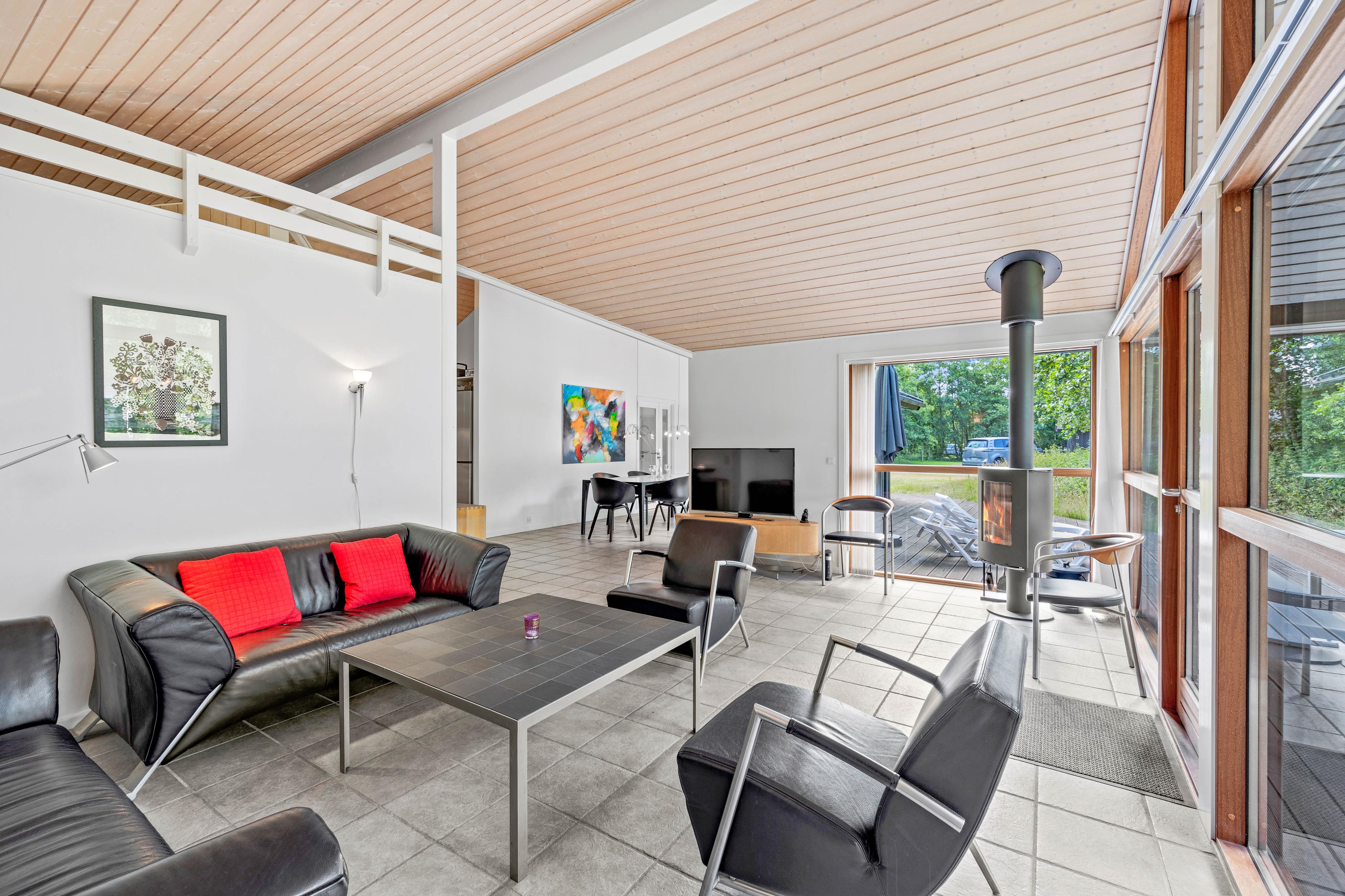 Når I tilbringer tid i alrummet, kan I tænde op i brændeovnen, hvis knitrende flammer og varme fuldender feriestemningen. Ellers har I en varmepumpe til rådighed, der sørger for en god temperatur på energivenlig vis. Her kan I spille spil, se tv eller blot sidde og snakke om jeres oplevelser på Fanø.