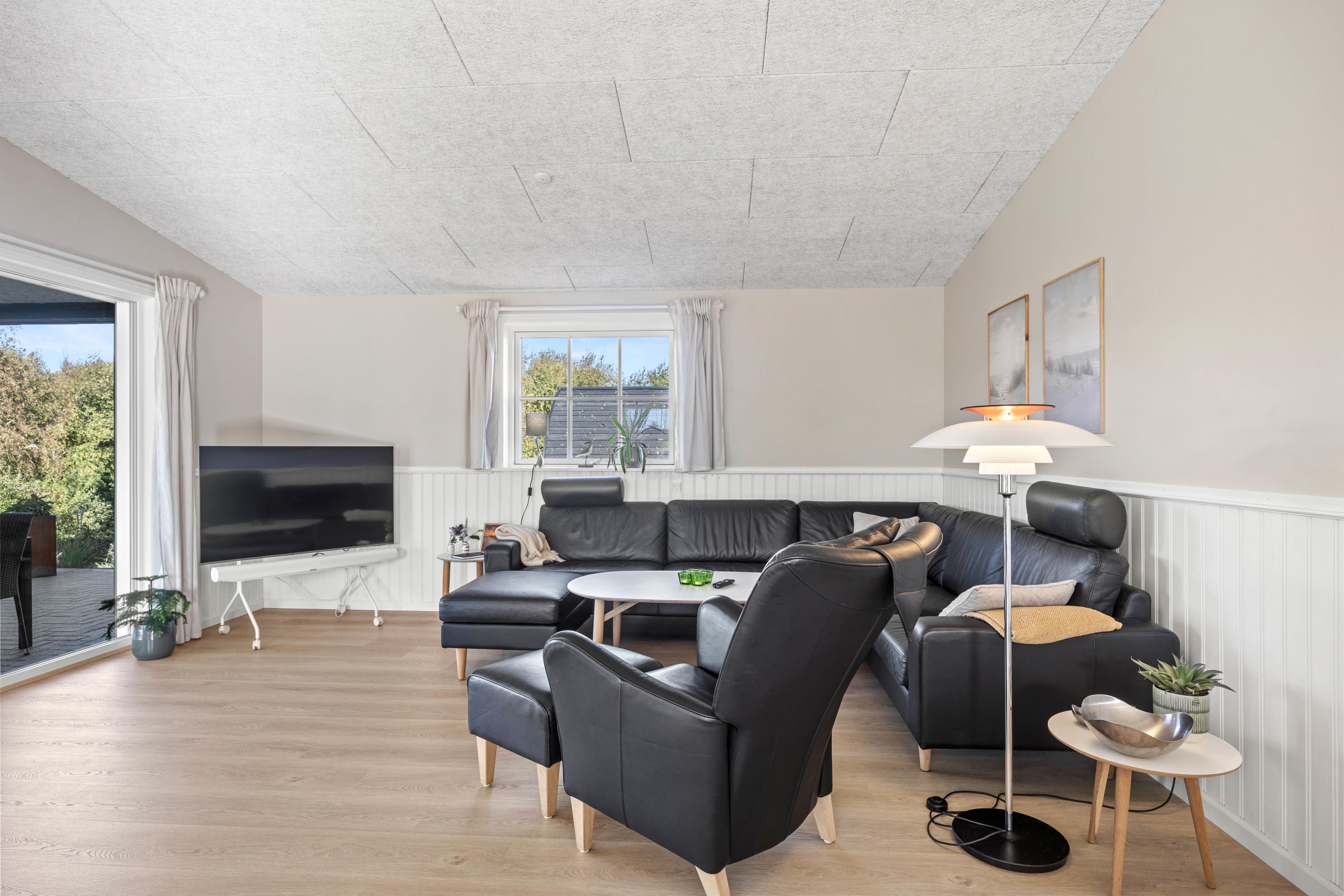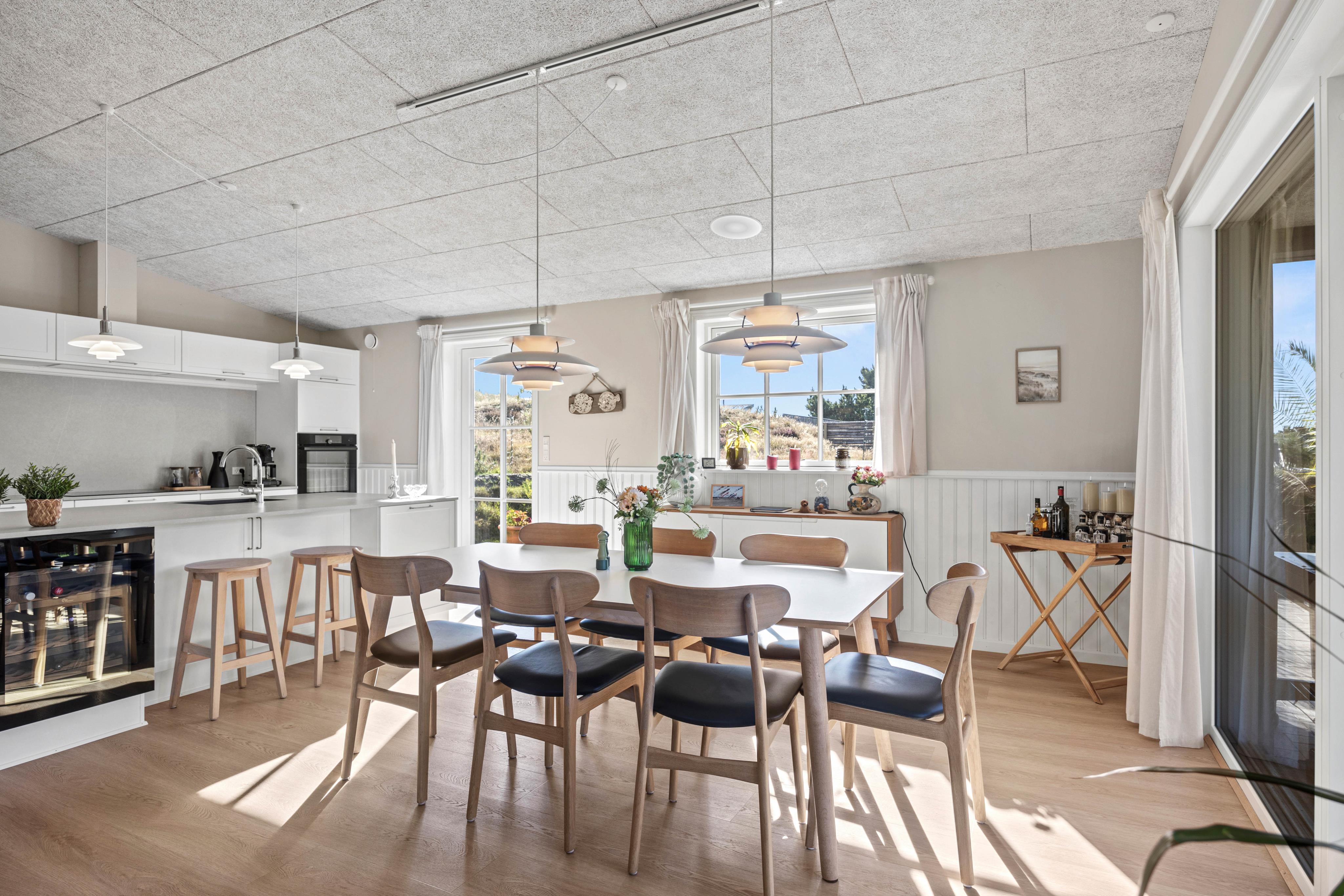Det rummelige og lyst indrettede feriehus er ideelt at holde ferie i for den store familie eller vennegruppen. Her er højt til loftet, og de tre soverum er indrettet med to dobbeltsenge og to køjesenge. Feriehuset er generelt praktisk og lækkert indrettet med både et badeværelse og et gæstetoilet. Begge med varme i gulvet.