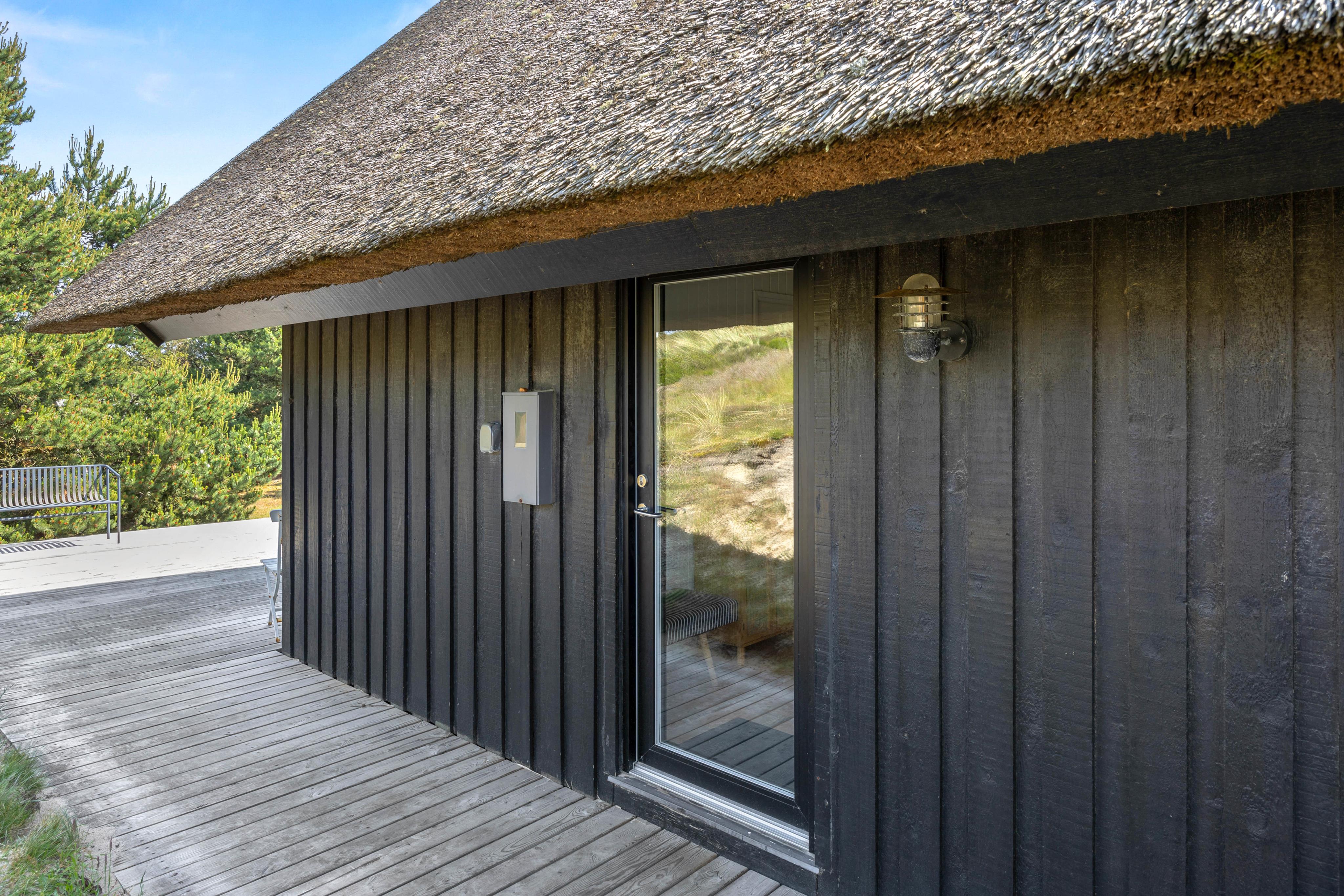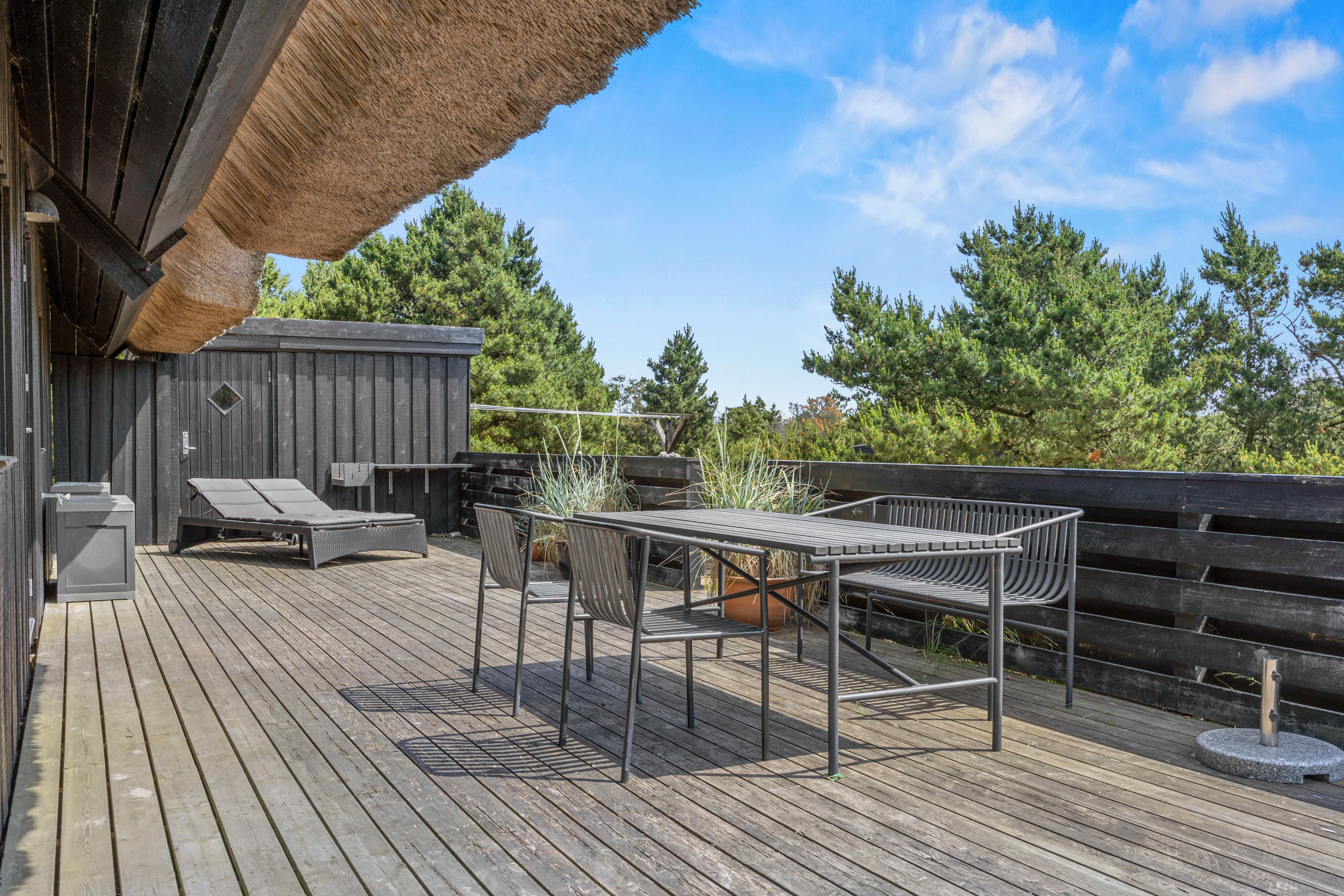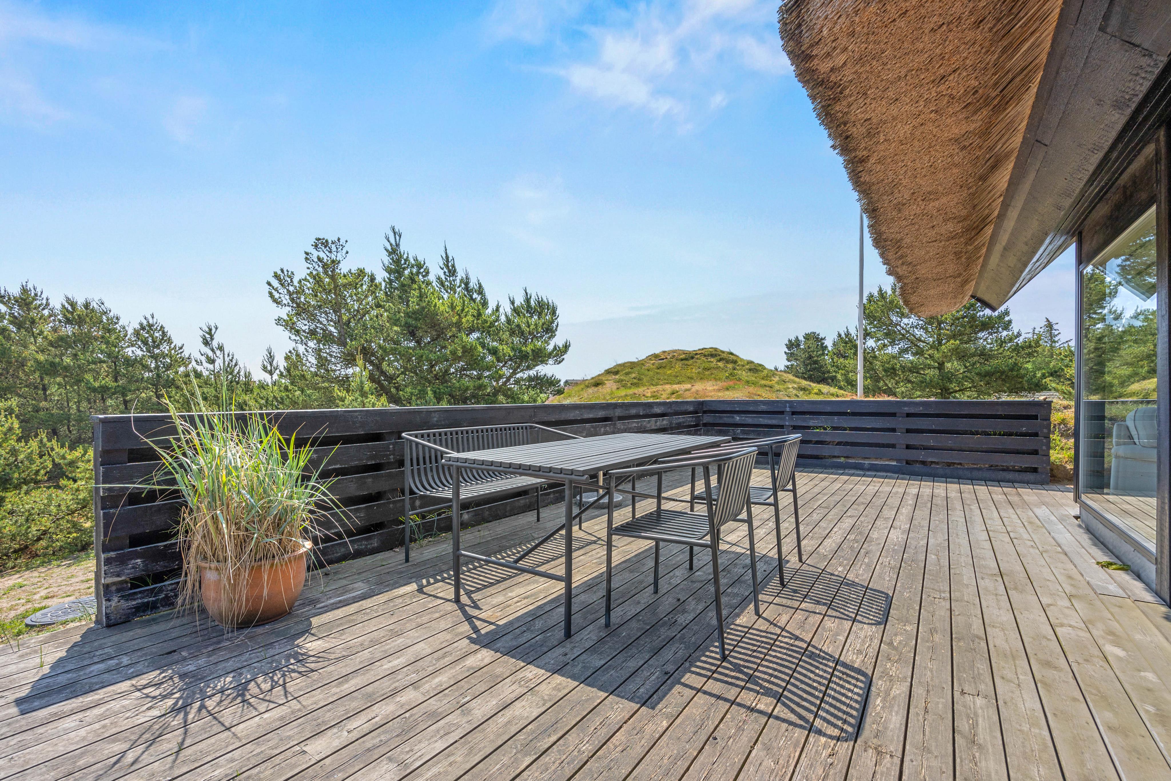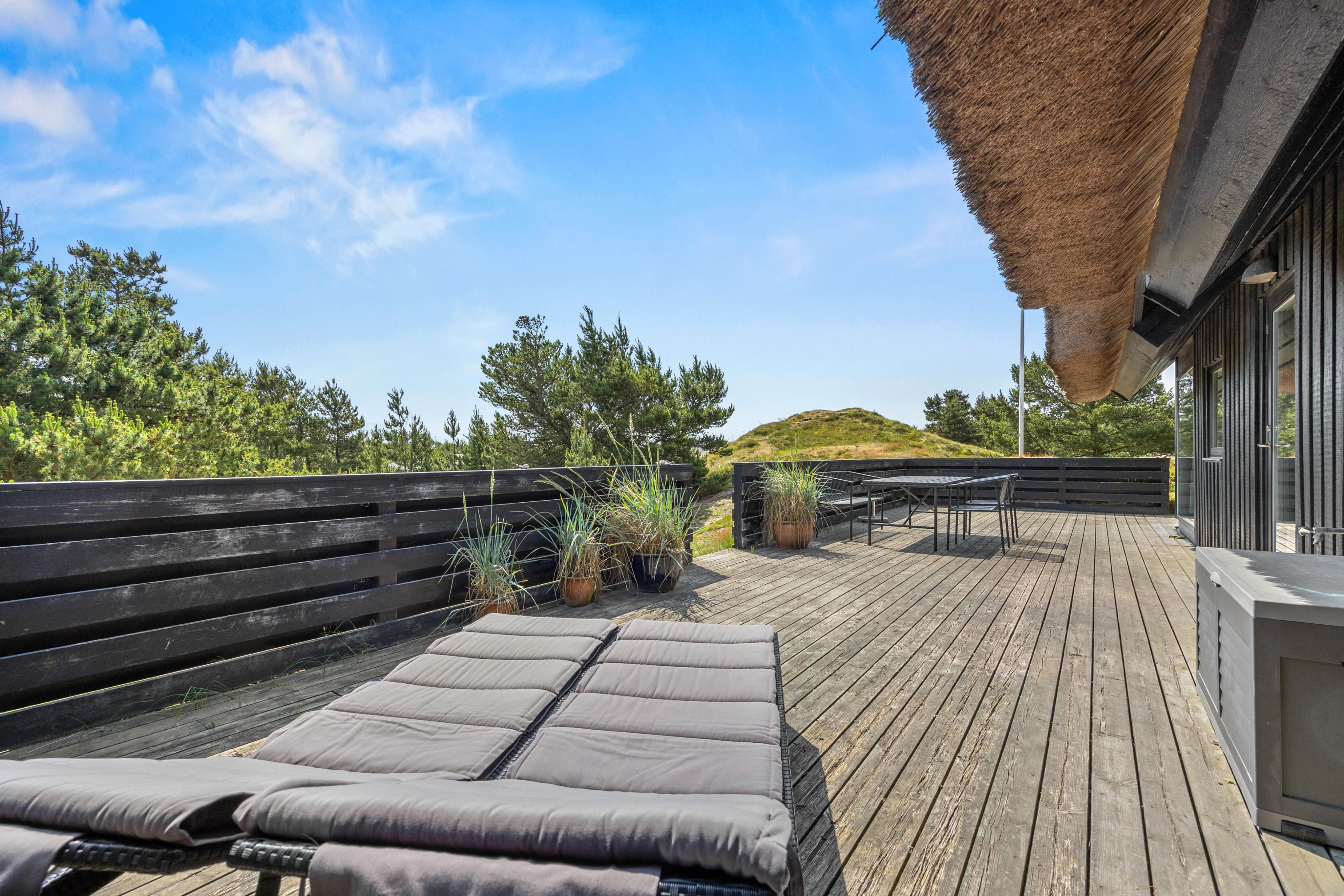 Sommerhuset ligger på en skøn naturgrund, hvor der til børnene både er sandkasse og gynge. Imens børnene leger, kan I nyde solen på den afskærmede terrasse, hvor både havemøbler og liggestole står klar til jer. Bag huset finder I endnu en terrasse. Den store og åbne træterrasse, giver mulighed for afslapning med et glas vin i hånden, samtidig med, at man kan se børnene lege på gyngerne ved siden af. Til aften kan I tænde op i grillen og holde en hyggelig grillmiddag i solen, inden den går ned bag klitterne.