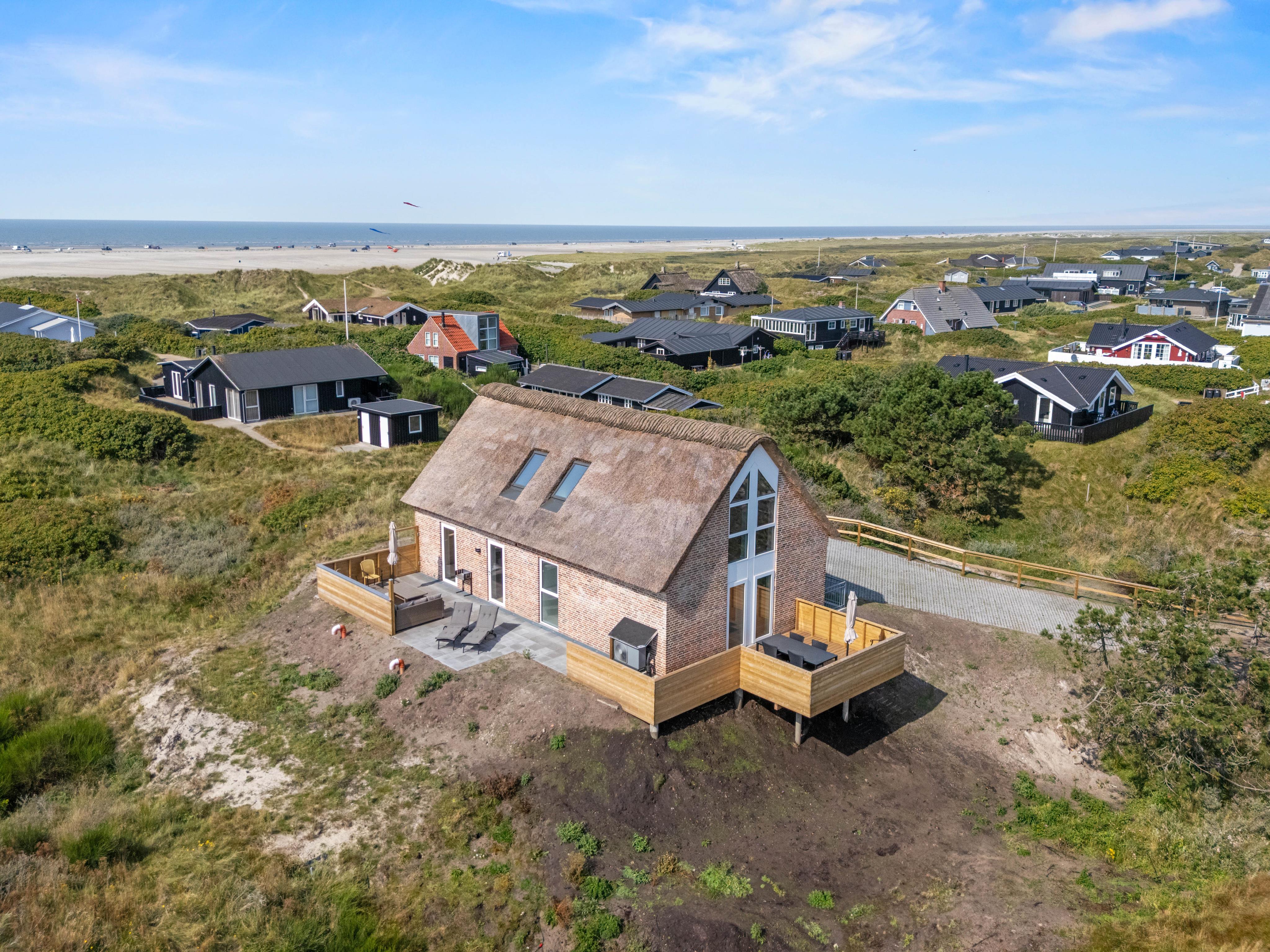 På Krinkelkrog 13 i Rindby på den dejlige ø Fanø finder I dette moderne feriehus, der med 180 kvadratmeter boligareal giver jer masser af plads til afslappende feriedage. Her er der god plads til op til 6 personer fordelt på tre soveværelser med dobbeltsenge, og I kan endda tage 1 hund med på ferien. Feriehuset er bygget i 2025 og lever fuldt op til de nyeste standarder for komfort og energieffektivitet. Som noget særligt har feriehuset en elevator, hvilket gør det handicapvenligt og nemt tilgængeligt for alle personer.
