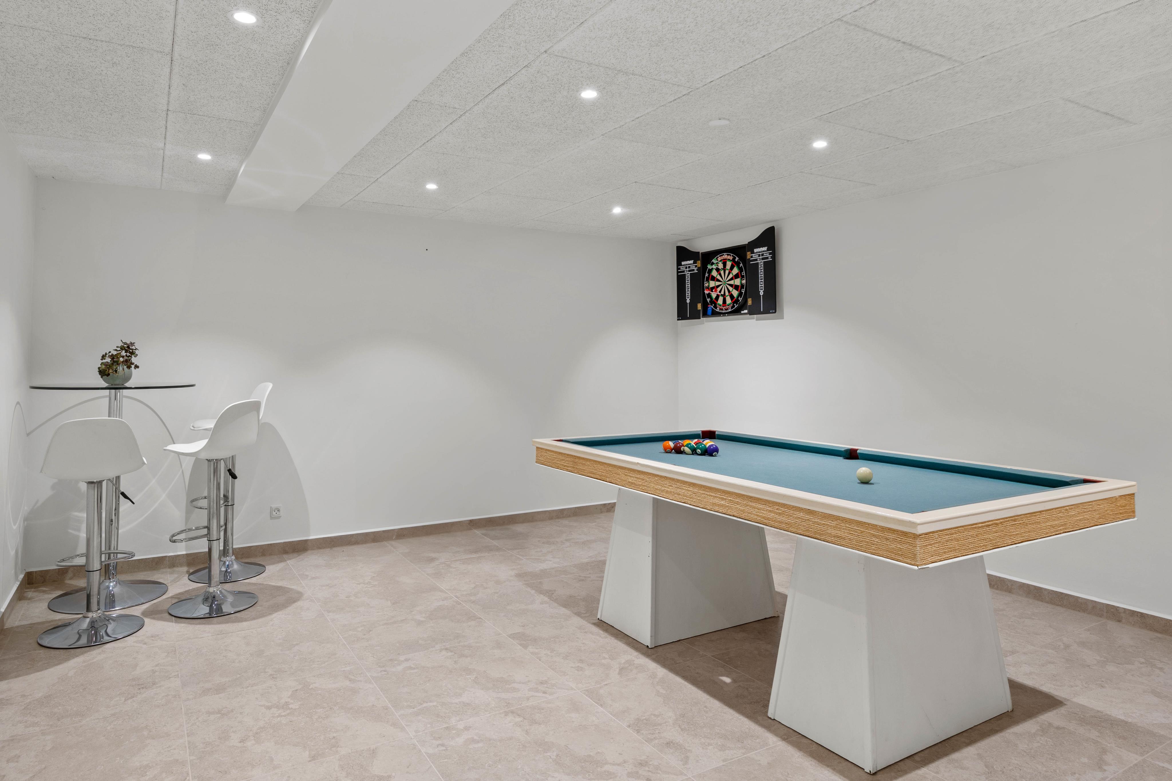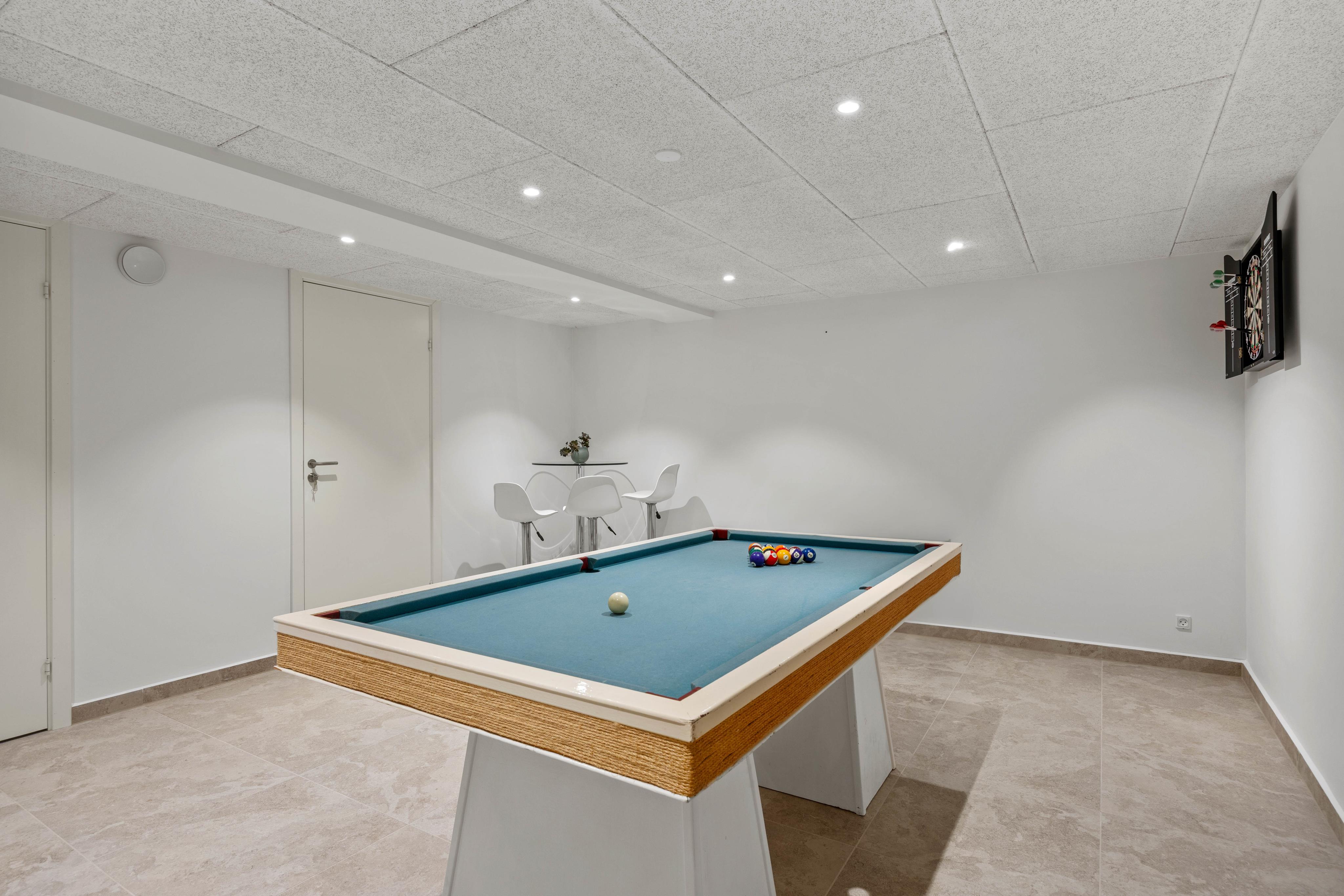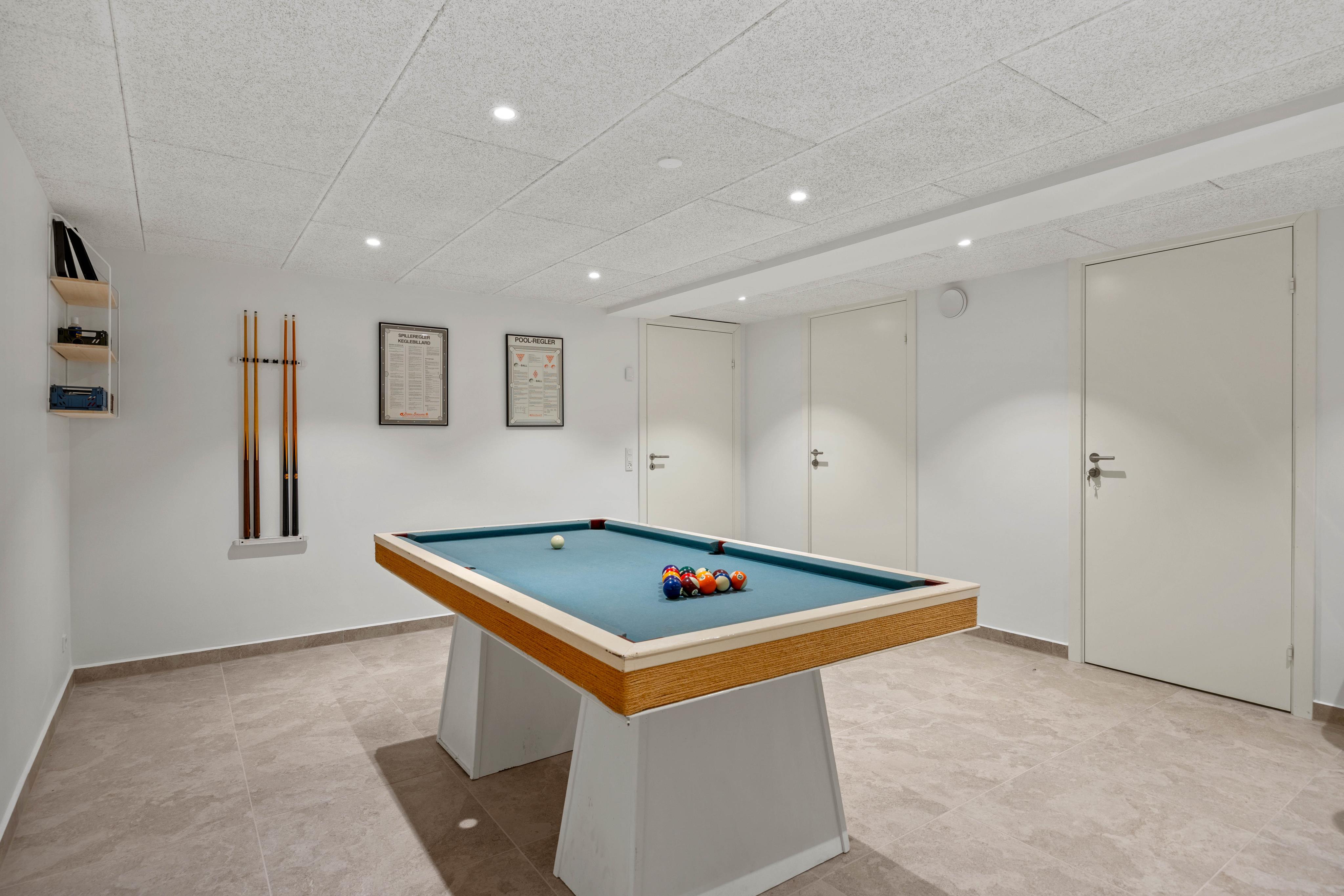 Et særligt højdepunkt er aktivitetsrummet, hvor I kan spille billard og tilbringe mange fornøjelige timer sammen – perfekt til dage, hvor vejret indbyder til indendørs hygge. Derudover står vaskemaskine og tørretumbler til rådighed, hvilket giver jer ekstra komfort, især under længere ophold.