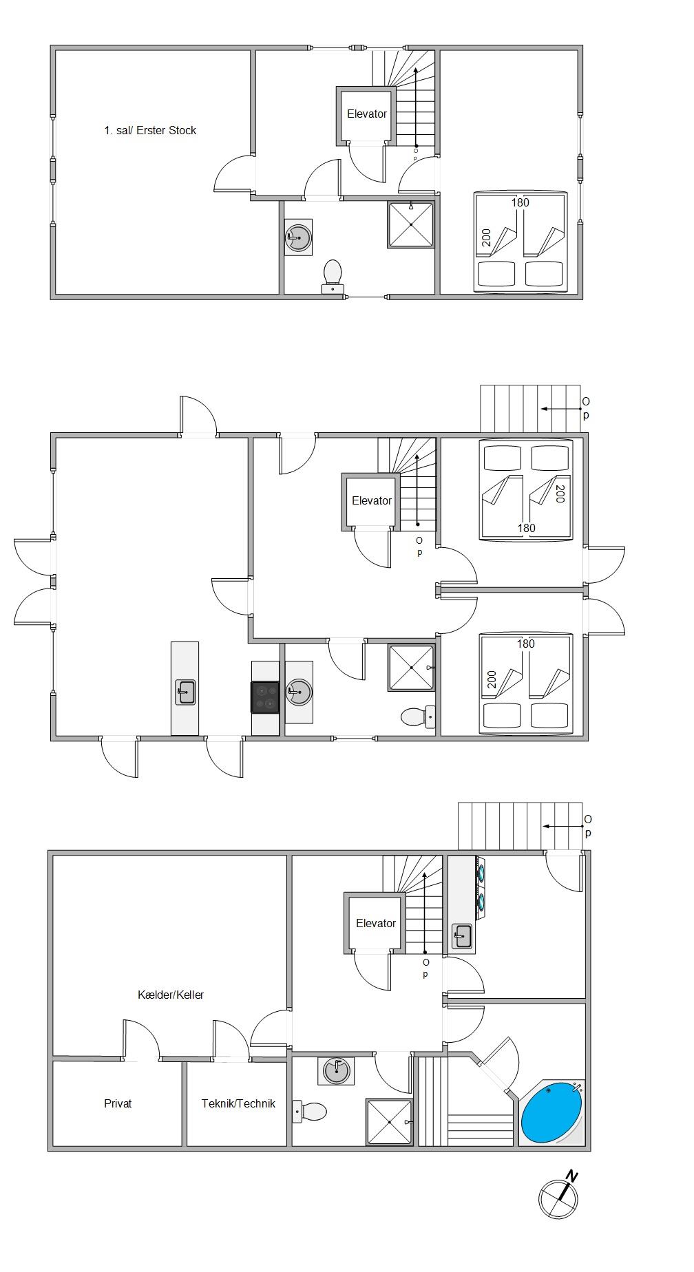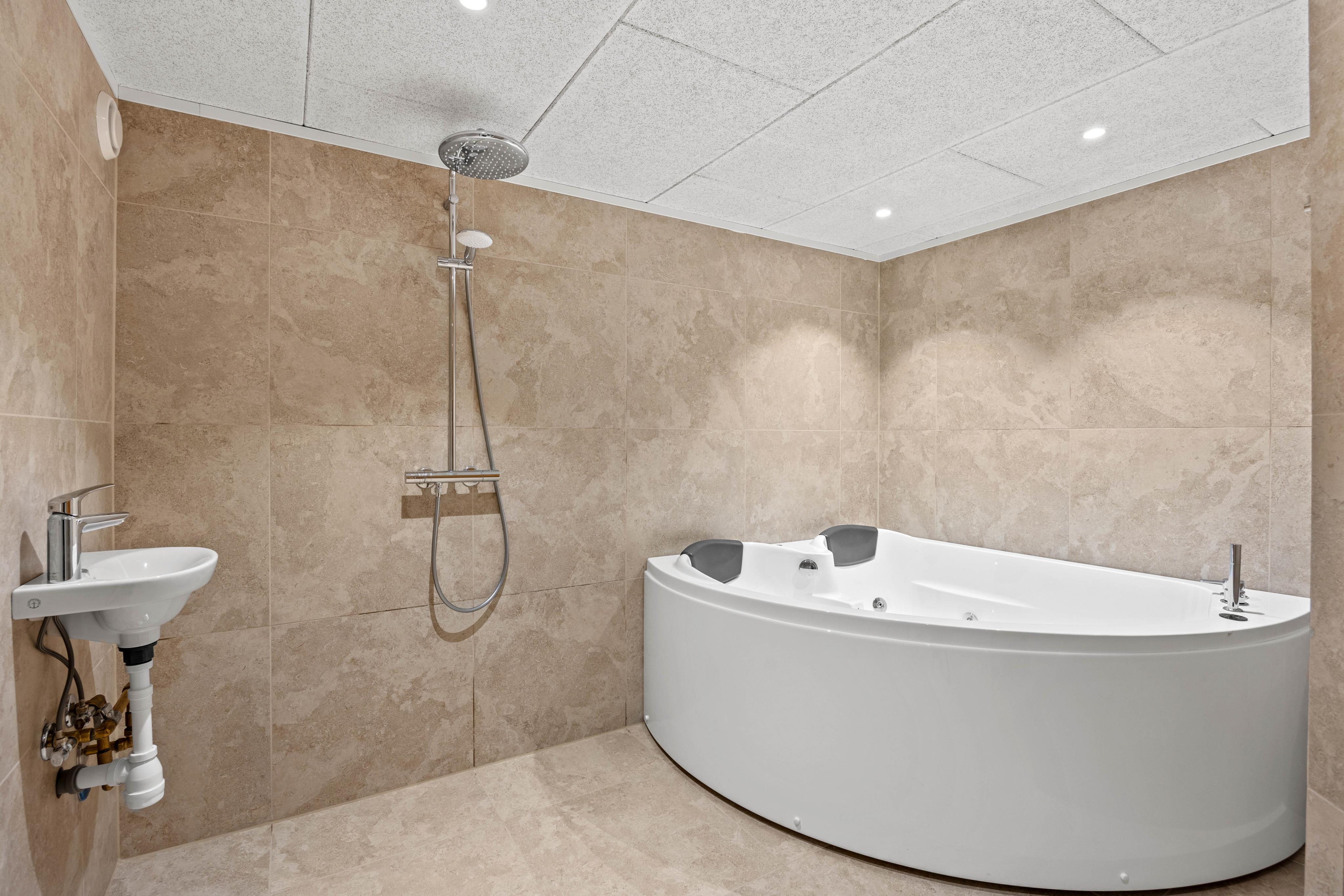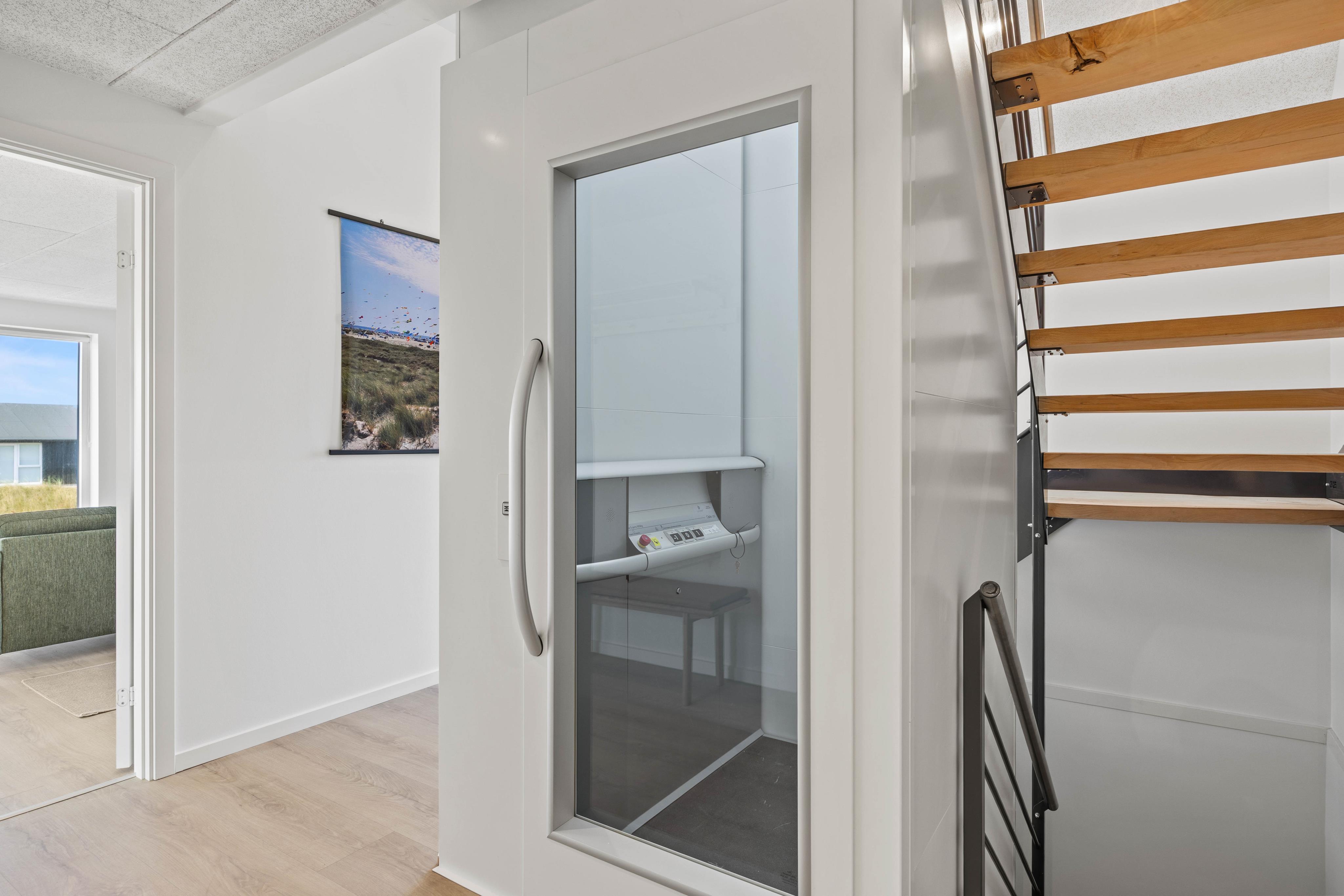 Teknisk er feriehuset også i top: En luft-vand-varmepumpe sørger for gulvvarmen i hele huset. Som nævnt er der elevator i huset, hvilket gør det til en optimal feriebolig for alle.