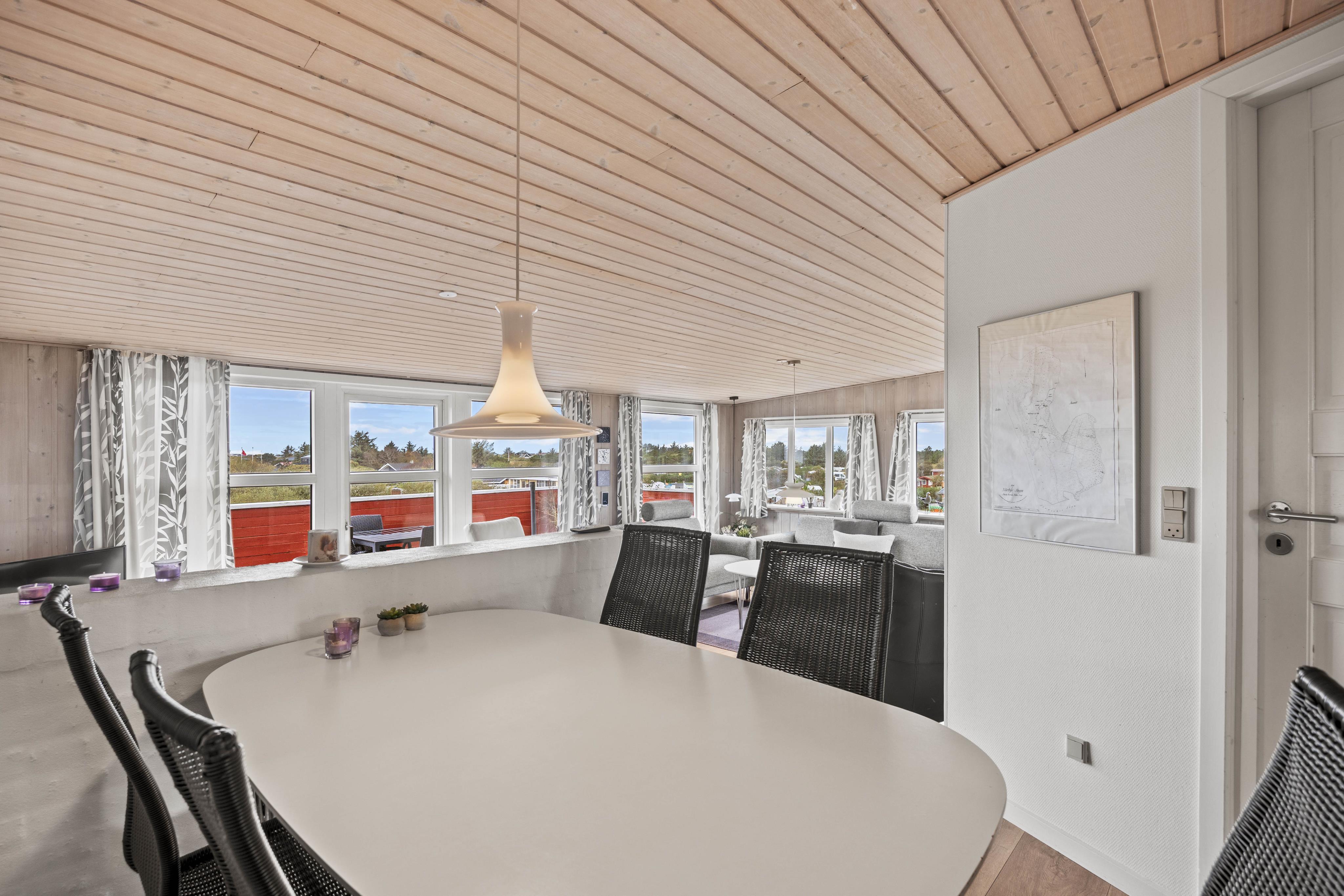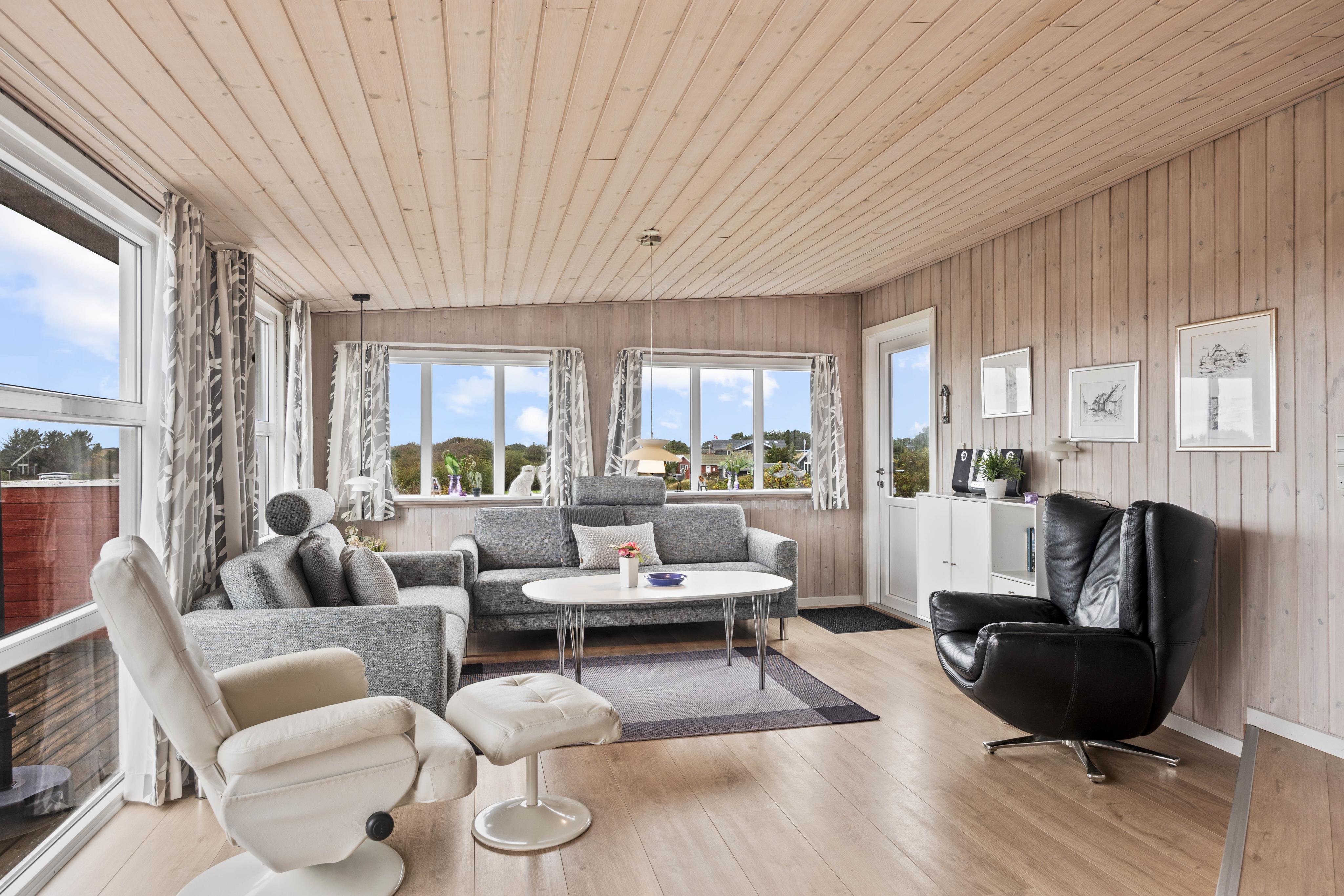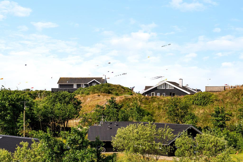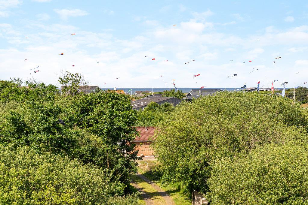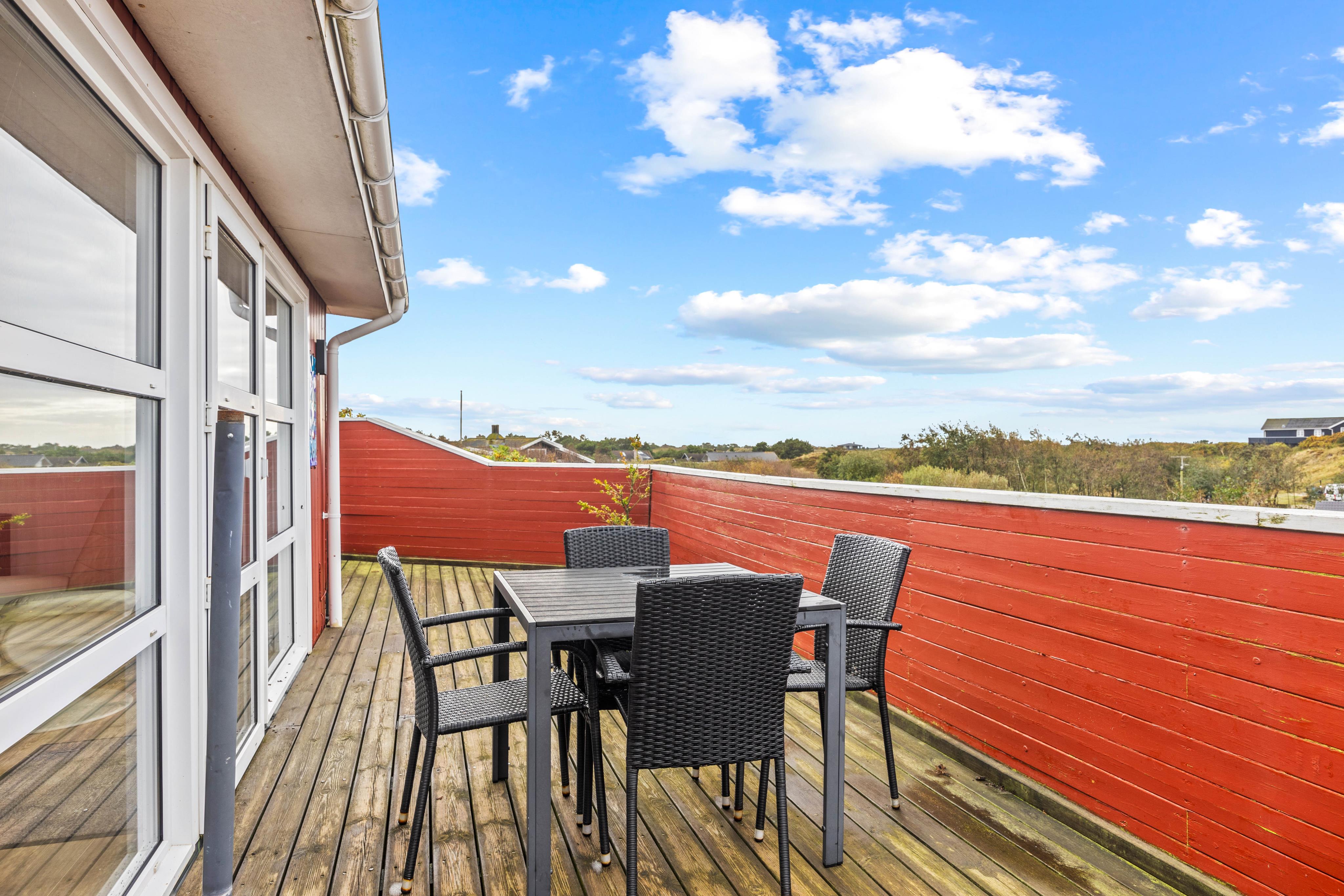 Det åbne- og det lukkede afsnit af terrassen gør, at I kan slappe af i det fri, uanset vejret. Her kan I nyde et måltid omkring grillen med de komfortable havemøbler, mens I nyder panoramaudsigten. Herfra kan I være heldige at se drageflyvning på solrige dage. Området omkring sommerhuset indbyder til lange gåture i den friske luft, hvor der er rig mulighed for at udforske de naturskønne omgivelser. Med kun 500 meter til Vesterhavet, kan I nyde solnedgangen hver eneste aften.