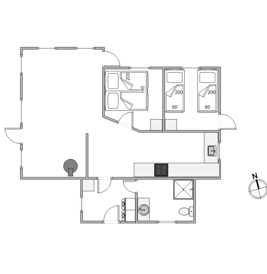 Sommerhuset har plads til 4 personer i 2 hyggelige soveværelser. De komfortable sovepladser er fordelt med 1 dobbeltseng i det ene værelse, og 2 enkeltsenge i det andet-, så I kan indrette jer efter behov.