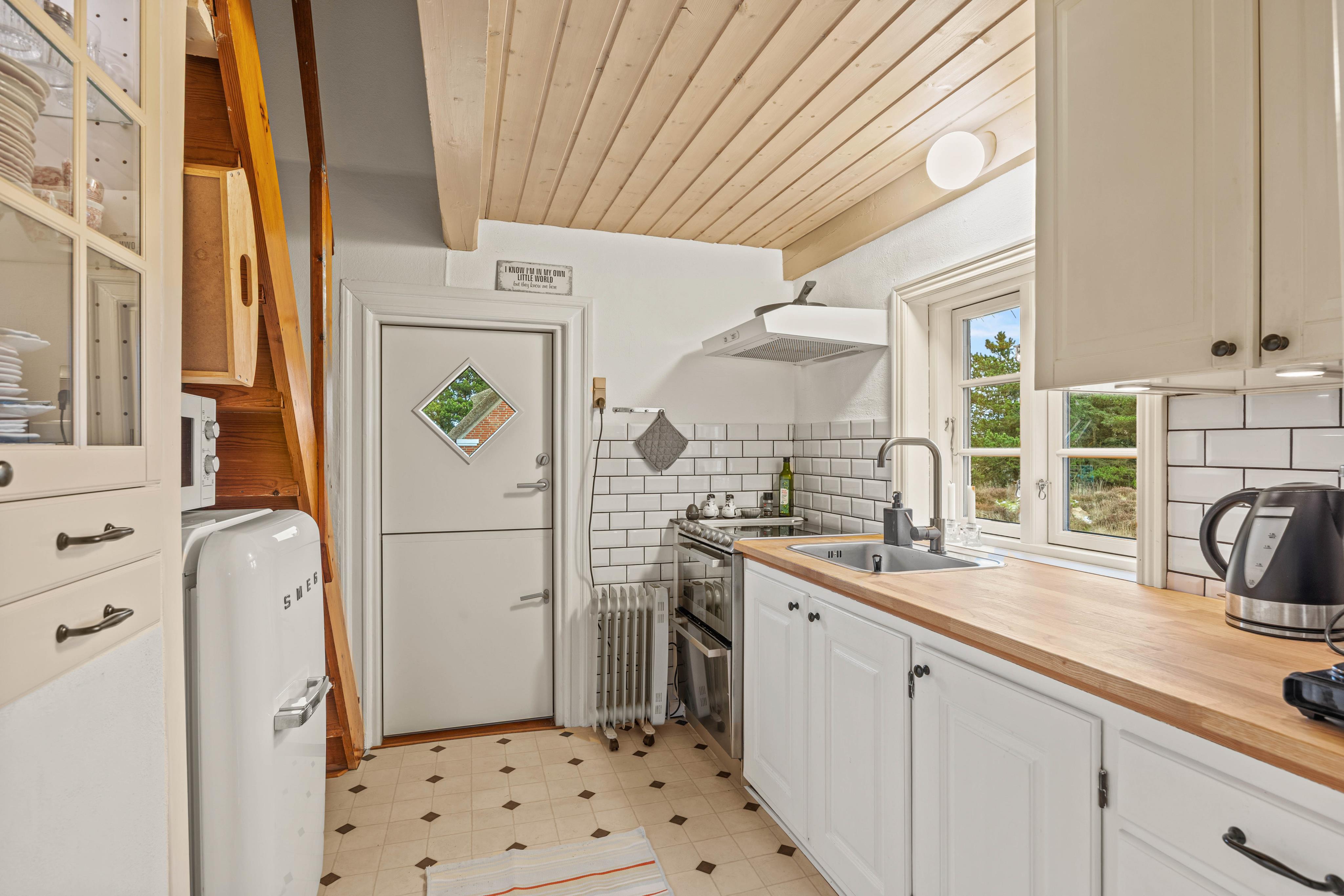 Feriehuset råder over 72m2 husareal tilpasset præcis til at imødekomme behovene for to personer. I det veludstyrede køkken finder I både køleskab, mikroovn og opvaskemaskine, så der er ingen grund til at bekymre sig om dagligdagens gøremål. Vaskemaskinen og tørretumbleren sørger for, at selv de mere praktiske sider af en ferie forbliver nemme og bekvemme. Sommerhuset er desuden udstyret med gratis internet, så I kan være online, når I ønsker det.